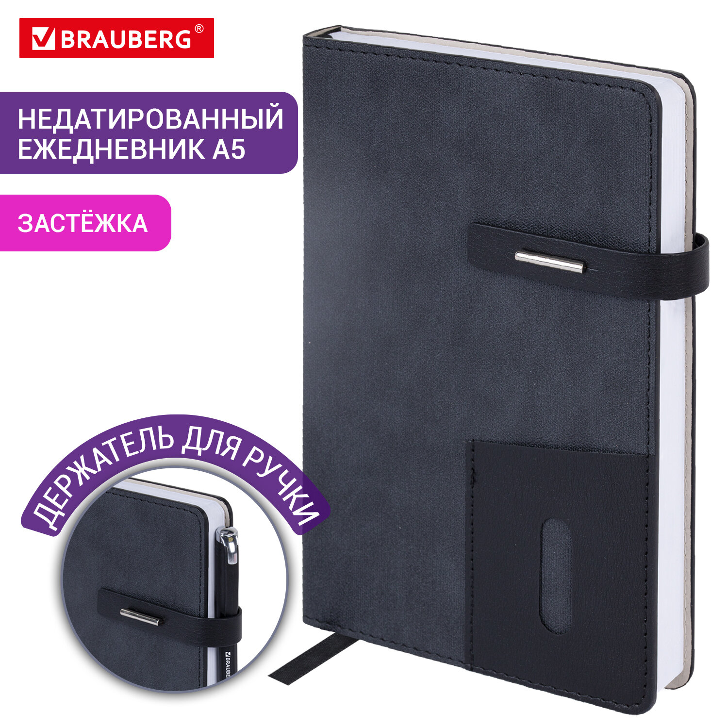 Ежедневник недатированный А5 138х213 мм BRAUBERG "Cowboy", под кожу, застежка 160 л., черный Код товара: 116200 391,13 ₽ Купить Производитель:BRAUBERG Недатированный ежедневник BRAUBERG "Cowboy" выполнен в оригинальном стиле. Подойдет каждому современному человеку для ведения различного рода записей. Внутренний блок включает 160 листов белой бумаги плотностью 70 г/м2. Благодаря стандартному формату А5 (138х213 мм) ежедневник удобно использовать как в офисе, так и на выездных деловых встречах. Твердая обложка, стилизованная под текстурную кожу, подходит для горячего тиснения. Ежедневник снабжен стильной застежкой, благодаря чему он не откроется в сумочке или портфеле, и листы не помнутся. Дополнением является закладка-ляссе, с помощью которой при необходимости можно быстро открыть нужную страницу, а также держатель для ручки, повышающий функциональность. На обложке и внутри ежедневника расположены удобные карманы для хранения бумаг и карточек. Ежедневник содержит обширный справочный материал, а также 7 страниц для записей и заметок. Уголки – закругленные.Производство: КитайТип ежедневника: недатированныйФормат: А5Обложка: под текстурную кожуВид обложки: твердаяКоличество листов: 160 шт.Особенности: закладка-ляссе, перфорация уголков, прострочка по периметру, скругленные углы, справочная информация, фиксатор для ручкиСерия: CowboyТип застежки: ремешок и застёжкаОсновной цвет обложки: черныйДополнительный цвет обложки: нетЦвет среза: нетЦвет внутреннего блока: белыйПлотность внутреннего блока: 70 г/м2Высота строки для записи: 5 ммТип крепления: сшивкаПечать блока: 2 краскиПодходит для блинтового тиснения: даПодходит для тиснения фольгой: даДлина: 213 ммШирина: 138 ммТолщина: 21 ммВес: 475 грРазмер упаковки: 3.1 × 21.2 × 14.9 смОбъём: 0.0011 м3Промежуточная упаковка: 20 штТранспортная упаковка: 20 штШтрих-код: 4606224442594 Файлы Сертификат-1.jpg Сертификат-2.jpg Сертификат-3.jpg Сертификат-4.jpg Сертификат-5.jpg Сертификат-6.jpg Сертификат-7.jpg Сертификат-8.jpg Сертификат-9.jpg Сертификат-10.jpg Сертификат-11.jpg Сертификат-12.jpg Сертификат-13.jpg Сертификат-14.jpg Сертификат-15.jpg Сертификат-16.jpg Сертификат-17.jpg Сертификат-18.jpg Сертификат-19.jpg Сертификат-20.jpg Сертификат-21.jpg Сертификат-22.jpg Сертификат-23.jpg Сертификат-24.jpg Сертификат-25.jpg Сертификат-26.jpg