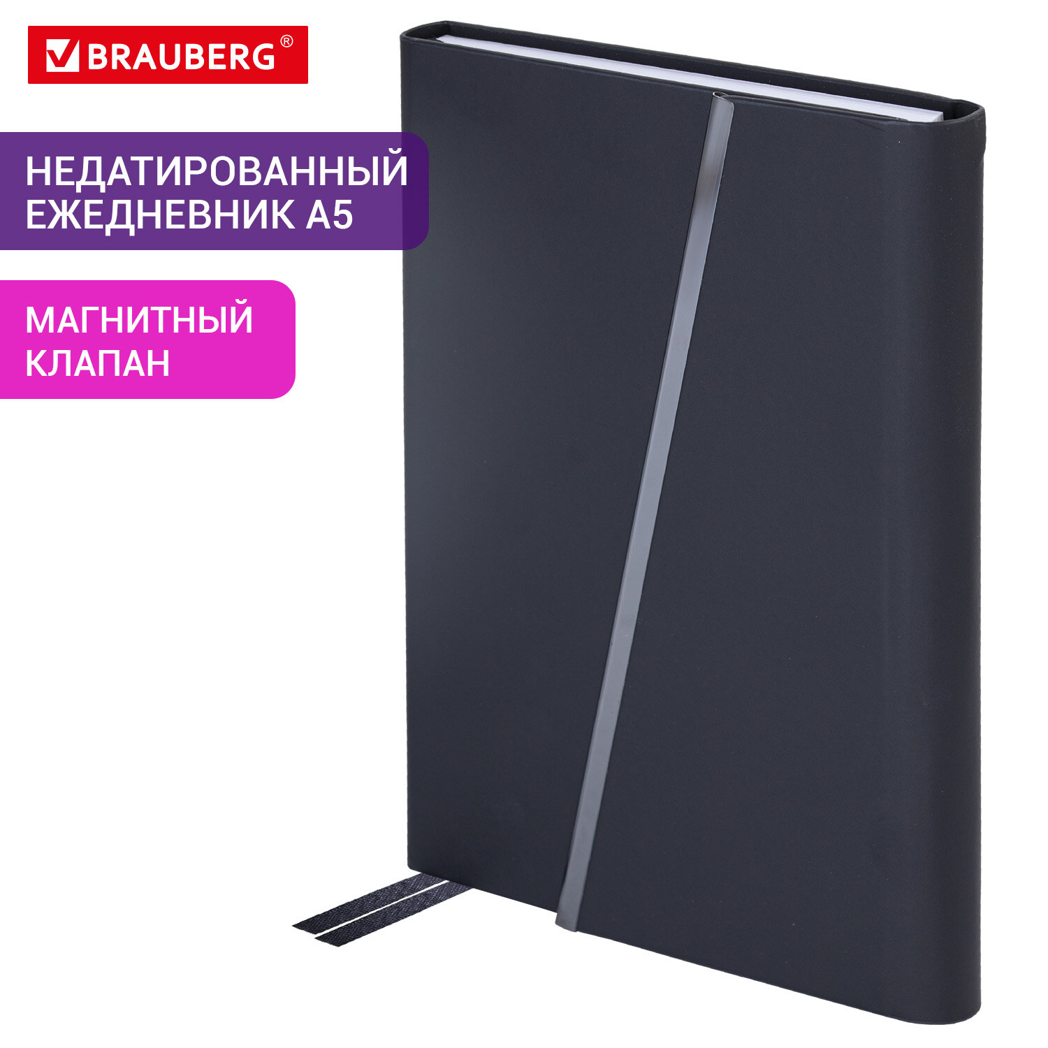 Ежедневник недатированный А5 145х213 мм BRAUBERG "Vogue", под кожу, магнитный клапан, 160 л., черный Код товара: 116223 661,54 ₽ Купить Производитель:BRAUBERG Недатированный ежедневник BRAUBERG "Vogue" выполнен в оригинальном стиле. Подойдет каждому современному человеку для ведения различного рода записей. Внутренний блок включает 160 листов белой бумаги плотностью 70 г/м2. Каждая страничка имеет перфорированный угол. Благодаря стандартному формату А5 (145х213 мм) ежедневник удобно использовать как в офисе, так и на выездных деловых встречах. Твердая обложка стилизована под гладкую кожу и имеет стильный магнитный клапан, благодаря чему он не откроется в сумочке или портфеле, и листы не помнутся. Материал обложки подходит для горячего тиснения. Дополнениями являются две закладки-ляссе, с помощью которых при необходимости можно быстро открыть ежедневник на нужной странице. Справочный материал дополнительно расширяет функциональность ежедневника. В конце внутреннего блока есть 7 страниц для записей и заметок.Производство: КитайТип ежедневника: недатированныйФормат: А5Обложка: под гладкую кожуВид обложки: твердаяКоличество листов: 160 шт.Особенности: закладка-ляссе, перфорация уголков, справочная информацияСерия: VogueДизайн: нетГод: нетТип застежки: магнитный клапанОсновной цвет обложки: черныйДополнительный цвет обложки: нетЦвет среза: нетЦвет внутреннего блока: белыйПлотность внутреннего блока: 70 г/м2Высота строки для записи: 5 ммТип крепления: сшивкаПечать блока: 2 краскиПодходит для блинтового тиснения: даПодходит для тиснения фольгой: даПодходит для тампопечати: даДлина: 213 ммШирина: 145 ммТолщина: 21 ммВес: 502 грРазмер упаковки: 2.6 × 21.7 × 15 смОбъём: 0.0011 м3Промежуточная упаковка: 20 штТранспортная упаковка: 20 штШтрих-код: 4606224442822 Файлы Сертификат-1.jpg Сертификат-2.jpg Сертификат-3.jpg Сертификат-4.jpg Сертификат-5.jpg Сертификат-6.jpg Сертификат-7.jpg Сертификат-8.jpg Сертификат-9.jpg Сертификат-10.jpg Сертификат-11.jpg Сертификат-12.jpg Сертификат-13.jpg Сертификат-14.jpg Сертификат-15.jpg Сертификат-16.jpg Сертификат-17.jpg Сертификат-18.jpg Сертификат-19.jpg Сертификат-20.jpg Сертификат-21.jpg Сертификат-22.jpg Сертификат-23.jpg Сертификат-24.jpg Сертификат-25.jpg Сертификат-26.jpg