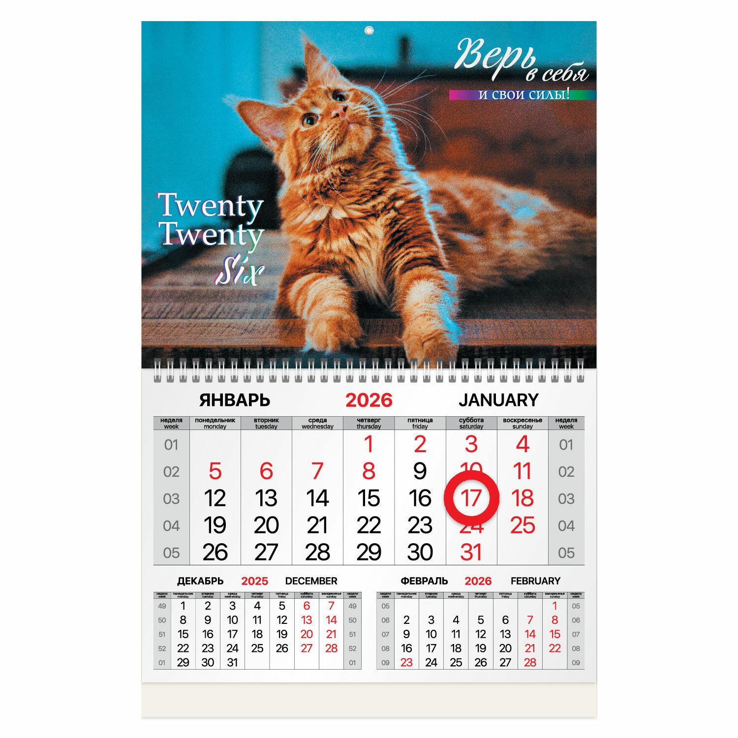 Календарь квартальный 2026 г., 1 блок, 1 гребень, магнитный курсор, мелованная бумага, BRAUBERG, "Котик" Код товара: 116923 361,8 ₽ Купить Производитель:BRAUBERG Квартальный календарь BRAUBERG "Котик" предназначен для делового планирования. Офисный календарь на 2026 год на гребне. Состоит из 1 блока с календарными сетками на три месяца с магнитным курсором. Блок календаря напечатан на мелованной бумаге плотностью 80 г/м2. Подложка изготовлена из мелованного картона плотностью 250 г/м2. Магнитный курсор-бегунок выделяет текущую дату. Вертикальное расположение. Размер – 33,5х50,3 см. Поставляется в индивидуальной упаковке (полибег) с европодвесом и с прокладкой из гофрокартона, что создает дополнительную защиту товара.Производство: КитайТип календаря: квартальный на 1 гребнеГод: 2026Тип скрепления: гребеньРазмер: 33,5х50,3 смВнутренний блок: мелованная бумагаПлотность внутреннего блока: 80 г/м2Подложка: мелованный картонПлотность подложки: 250 г/м2Курсор: даПикколо: даДизайн: КотикКалендарная сетка: с разбивкой на 3 месяцаИндивидуальная упаковка: даВес: 198 грРазмер упаковки: 1 × 34 × 25.9 смОбъём: 0.0007 м3Промежуточная упаковка: 50 штТранспортная упаковка: 50 штШтрих-код: 4606224480459 Файлы Сертификат-1.jpg Сертификат-2.jpg Сертификат-3.jpg Сертификат-4.jpg Сертификат-5.jpg Сертификат-6.jpg Сертификат-7.jpg Сертификат-8.jpg Сертификат-9.jpg Сертификат-10.jpg Сертификат-11.jpg Сертификат-12.jpg Сертификат-13.jpg Сертификат-14.jpg Сертификат-15.jpg Сертификат-16.jpg Сертификат-17.jpg Сертификат-18.jpg Сертификат-19.jpg Сертификат-20.jpg Сертификат-21.jpg Сертификат-22.jpg Сертификат-23.jpg Сертификат-24.jpg Сертификат-25.jpg Сертификат-26.jpg