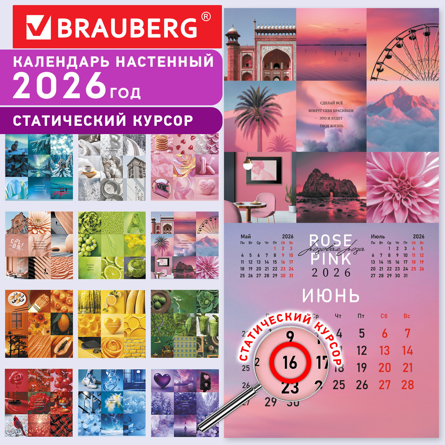 Календарь настенный перекидной 2026 г., BRAUBERG, 12 листов, 28,5х28,5 см, "Color set" Код товара: 116936 131,19 ₽ Купить Производитель:BRAUBERG Настенный перекидной календарь BRAUBERG востребован в офисах, на предприятиях и дома. Сочетает функциональность и эстетическую привлекательность. Яркая, красочная картинка дополнена календарной сеткой на месяц. Содержит 12 листов. Блок календаря напечатан на мелованной бумаге плотностью 130 г/м2. Оригинальная обложка изготовлена из мелованной бумаги плотностью 230 г/м2. Размер – 28,5х28,5 см, в развороте – 28,5х57 см. Дополнен отверстием для удобства крепления. Поставляется в индивидуальной упаковке (полибэг) с европодвесом и прокладкой из гофрокартона, что создает товару дополнительную защиту.Производство: КитайТип календаря: настенный перекиднойГод: 2026Тип скрепления: скрепкаРазмер: 28,5х28,5 смВнутренний блок: мелованная бумагаПлотность внутреннего блока: 130 г/м2Подложка: нетКурсор: даДизайн: Color setКалендарная сетка: с разбивкой на месяцИндивидуальная упаковка: даВес: 203 грРазмер упаковки: 0.5 × 28.9 × 29 смОбъём: 0.0005 м3Промежуточная упаковка: 30 штТранспортная упаковка: 30 штШтрих-код: 4606224480107 Файлы Сертификат-1.jpg Сертификат-2.jpg Сертификат-3.jpg Сертификат-4.jpg Сертификат-5.jpg Сертификат-6.jpg Сертификат-7.jpg Сертификат-8.jpg Сертификат-9.jpg Сертификат-10.jpg Сертификат-11.jpg Сертификат-12.jpg Сертификат-13.jpg Сертификат-14.jpg Сертификат-15.jpg Сертификат-16.jpg Сертификат-17.jpg Сертификат-18.jpg Сертификат-19.jpg Сертификат-20.jpg Сертификат-21.jpg Сертификат-22.jpg Сертификат-23.jpg Сертификат-24.jpg Сертификат-25.jpg Сертификат-26.jpg