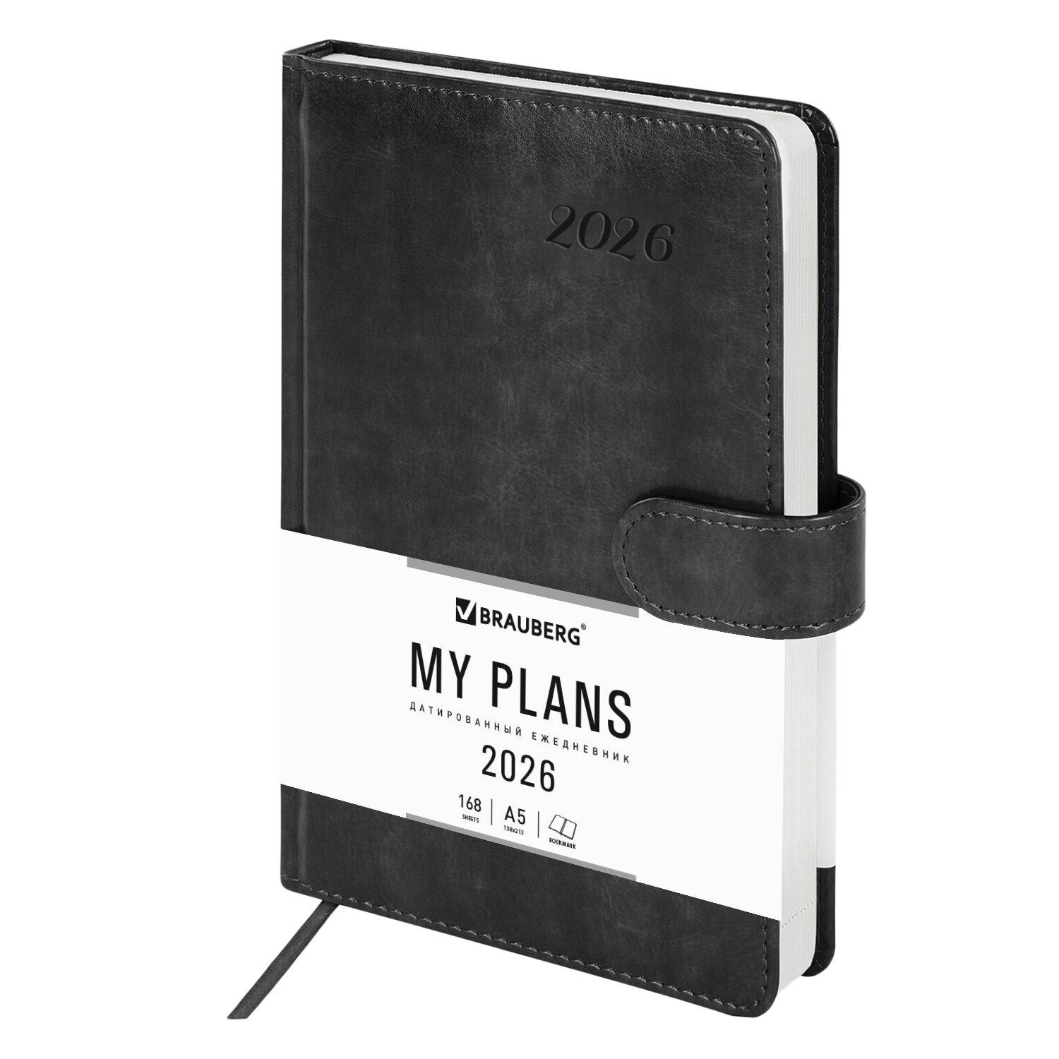 Ежедневник датированный 2026 А5 138x213 мм, BRAUBERG "Legend", под кожу, застежка, серый Код товара: 117068 336,1 ₽ Купить Производитель:BRAUBERG Датированный ежедневник BRAUBERG "Legend" – надежный спутник делового человека, который привык тщательно планировать свое время. Внутренний блок включает 168 листов белой бумаги плотностью 70 г/м2. Каждая страничка имеет перфорированный угол. Благодаря стандартному формату А5 ежедневник удобно использовать как в офисе, так и на выездных деловых встречах. Жесткая книжная обложка прошита по периметру, имеет легкую рельефную фактуру и напоминает натуральную кожу. Материал обложки подходит для горячего тиснения. Обложка фиксируется магнитной застежкой, поэтому ежедневник не откроется в сумке или портфеле и страницы не помнутся. Дополнением является закладка-ляссе, с помощью которой при необходимости можно быстро открыть ежедневник на нужной странице. Ежедневник снабжен обширным справочным материалом. В конце есть 4 страницы для записей и заметок. Датированный ежедневник BRAUBERG "Legend" идеально подойдет для офисных работников и людей, занимающихся бизнесом.Производство: КитайТип ежедневника: датированныйФормат: А5Обложка: под гладкую кожуВид обложки: твердаяКоличество листов: 168 шт.Особенности: закладка-ляссе, перфорация уголков, поролоновая прослойка, прострочка по периметру, скругленные углы, справочная информацияСерия: LegendГод: 2026Тип застежки: магнитная застежкаОсновной цвет обложки: серыйДополнительный цвет обложки: нетЦвет среза: белыйЦвет внутреннего блока: белыйПлотность внутреннего блока: 70 г/м2Высота строки для записи: 4 ммТип крепления: сшивкаПечать блока: 2 краскиПодходит для блинтового тиснения: даПодходит для тиснения фольгой: даПодходит для заливки полимерной смолой: даПодходит для УФ-печати: даПодходит для тампопечати: даДлина: 213 ммШирина: 138 ммТолщина: 20 ммВес: 496 грРазмер упаковки: 2.7 × 21.1 × 14.7 смОбъём: 0.0012 м3Промежуточная упаковка: 20 штТранспортная упаковка: 20 штШтрих-код: 4606224487441 Файлы Сертификат-1.jpg Сертификат-2.jpg Сертификат-3.jpg Сертификат-4.jpg Сертификат-5.jpg Сертификат-6.jpg Сертификат-7.jpg Сертификат-8.jpg Сертификат-9.jpg Сертификат-10.jpg Сертификат-11.jpg Сертификат-12.jpg Сертификат-13.jpg Сертификат-14.jpg Сертификат-15.jpg Сертификат-16.jpg Сертификат-17.jpg Сертификат-18.jpg Сертификат-19.jpg Сертификат-20.jpg Сертификат-21.jpg Сертификат-22.jpg Сертификат-23.jpg Сертификат-24.jpg Сертификат-25.jpg Сертификат-26.jpg