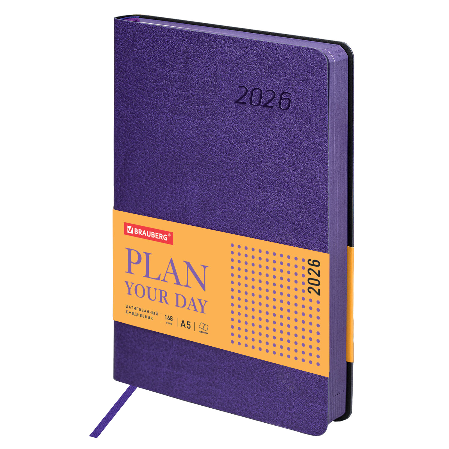 Ежедневник датированный 2026 А5 138x213 мм, BRAUBERG "Stylish", под кожу, гибкий, фиолетовый Код товара: 117100 308,78 ₽ Купить Производитель:BRAUBERG Датированный ежедневник BRAUBERG "Stylish" с мягкой интегральной обложкой под фактурную кожу и прокрасом среза в цвет обложки – стильное и компактное решение для эффективного планирования и создания имиджа пунктуального человека. Внутренний блок включает 168 листов тонированной бумаги плотностью 70 г/м2. Каждая страничка имеет перфорированный угол. Благодаря стандартному формату А5 (138х213 мм) ежедневник удобно использовать как в офисе, так и на выездных деловых встречах. Мягкая (интегральная) обложка стилизована под фактурную кожу яркого фиолетового цвета. Подходит для горячего тиснения. Дополнением является закладка-ляссе, с помощью которой при необходимости можно быстро открыть ежедневник на нужной странице. Ежедневник снабжен справочным материалом. В конце есть 4 страницы для записей и заметок. Датированный ежедневник BRAUBERG "Stylish" идеально подойдет для офисных работников и людей, занимающихся бизнесом.Производство: КитайТип ежедневника: датированныйФормат: А5Обложка: под фактурную кожуВид обложки: интегральнаяКоличество листов: 168 шт.Особенности: закладка-ляссе, перфорация уголков, скругленные углы, справочная информацияСерия: StylishГод: 2026Тип застежки: нетОсновной цвет обложки: фиолетовыйДополнительный цвет обложки: нетЦвет среза: фиолетовыйЦвет внутреннего блока: кремовыйПлотность внутреннего блока: 70 г/м2Высота строки для записи: 4 ммТип крепления: сшивкаПечать блока: 2 краскиПодходит для блинтового тиснения: даПодходит для тиснения фольгой: даДлина: 213 ммШирина: 138 ммТолщина: 18 ммВес: 400 грРазмер упаковки: 1.7 × 21.2 × 14.1 смОбъём: 0.0007 м3Промежуточная упаковка: 20 штТранспортная упаковка: 20 штШтрих-код: 4606224487762 Файлы Сертификат-1.jpg Сертификат-2.jpg Сертификат-3.jpg Сертификат-4.jpg Сертификат-5.jpg Сертификат-6.jpg Сертификат-7.jpg Сертификат-8.jpg Сертификат-9.jpg Сертификат-10.jpg Сертификат-11.jpg Сертификат-12.jpg Сертификат-13.jpg Сертификат-14.jpg Сертификат-15.jpg Сертификат-16.jpg Сертификат-17.jpg Сертификат-18.jpg Сертификат-19.jpg Сертификат-20.jpg Сертификат-21.jpg Сертификат-22.jpg Сертификат-23.jpg Сертификат-24.jpg Сертификат-25.jpg Сертификат-26.jpg