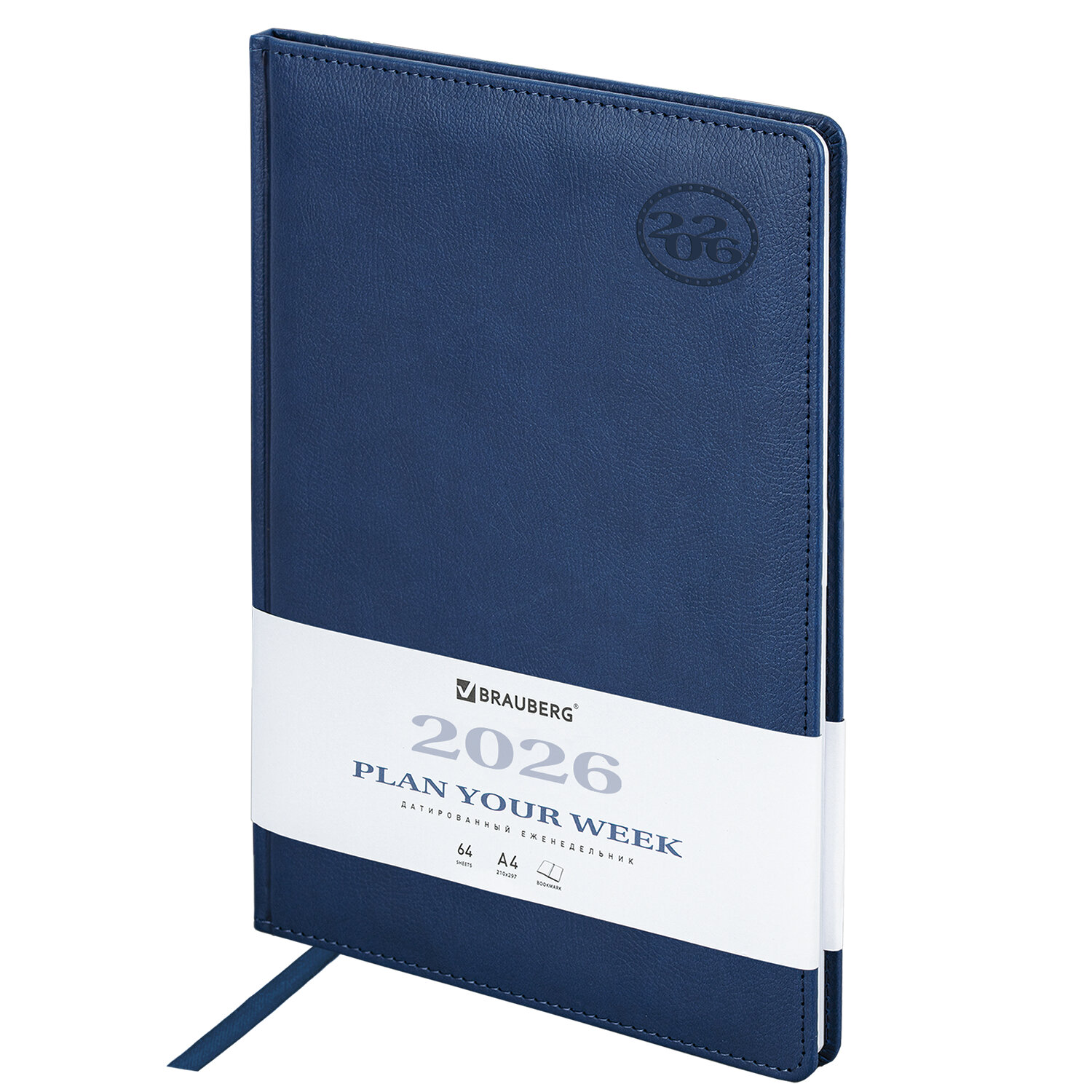 Еженедельник датированный 2026 БОЛЬШОЙ ФОРМАТ 210х297 мм, А4 BRAUBERG "Favorite", под кожу, синий Код товара: 117151 656,59 ₽ Купить Производитель:BRAUBERG Датированный еженедельник BRAUBERG "Favorite" выполнен в классическом стиле. Обложка с прошивкой по периметру имеет ярко выраженную текстуру под кожу, приятную на ощупь. Достойный выбор делового человека! Внутренний блок включает 64 листа белой бумаги плотностью 70 г/м2. Благодаря большому формату А4 (210х297 мм) еженедельник удобно использовать как в офисе, так и на выездных деловых встречах. Твердая обложка синего цвета, стилизованная под фактурную кожу, подходит для горячего тиснения. Дополнением является закладка-ляссе, с помощью которой при необходимости можно быстро открыть еженедельник на нужной странице. Для заметок в еженедельнике есть 7 страниц в конце внутреннего блока. Еженедельник снабжен обширным справочным материалом. Датированный еженедельник BRAUBERG "Favorite" – настоящая классика, проверенная временем. Идеально подойдет для офисных работников и людей, занимающихся бизнесом.Производство: КитайТип еженедельника: датированныйСерия: FavoriteГод: 2026Формат: А4Обложка: под фактурную кожуКоличество листов: 64 шт.Особенности: закладка-ляссе, поролоновая прослойка, прострочка по периметру, скругленные углы, справочная информацияТип застежки: нетОсновной цвет обложки: синийДополнительный цвет обложки: нетЦвет внутреннего блока: белыйПлотность внутренного блока: 70 г/м2Тип крепления: сшивкаПечать блока: 2 краскиПодходит для блинтового тиснения: даПодходит для тиснения фольгой: даПодходит для заливки полимерной смолой: даДлина: 297 ммШирина: 210 ммВес: 540 грРазмер упаковки: 1.5 × 29.6 × 21.4 смОбъём: 0.0013 м3Промежуточная упаковка: 24 штТранспортная упаковка: 24 штШтрих-код: 4606224490700 Файлы Сертификат-1.jpg Сертификат-2.jpg Сертификат-3.jpg Сертификат-4.jpg Сертификат-5.jpg Сертификат-6.jpg Сертификат-7.jpg Сертификат-8.jpg Сертификат-9.jpg Сертификат-10.jpg Сертификат-11.jpg Сертификат-12.jpg Сертификат-13.jpg Сертификат-14.jpg Сертификат-15.jpg Сертификат-16.jpg Сертификат-17.jpg Сертификат-18.jpg Сертификат-19.jpg Сертификат-20.jpg Сертификат-21.jpg Сертификат-22.jpg Сертификат-23.jpg Сертификат-24.jpg Сертификат-25.jpg Сертификат-26.jpg