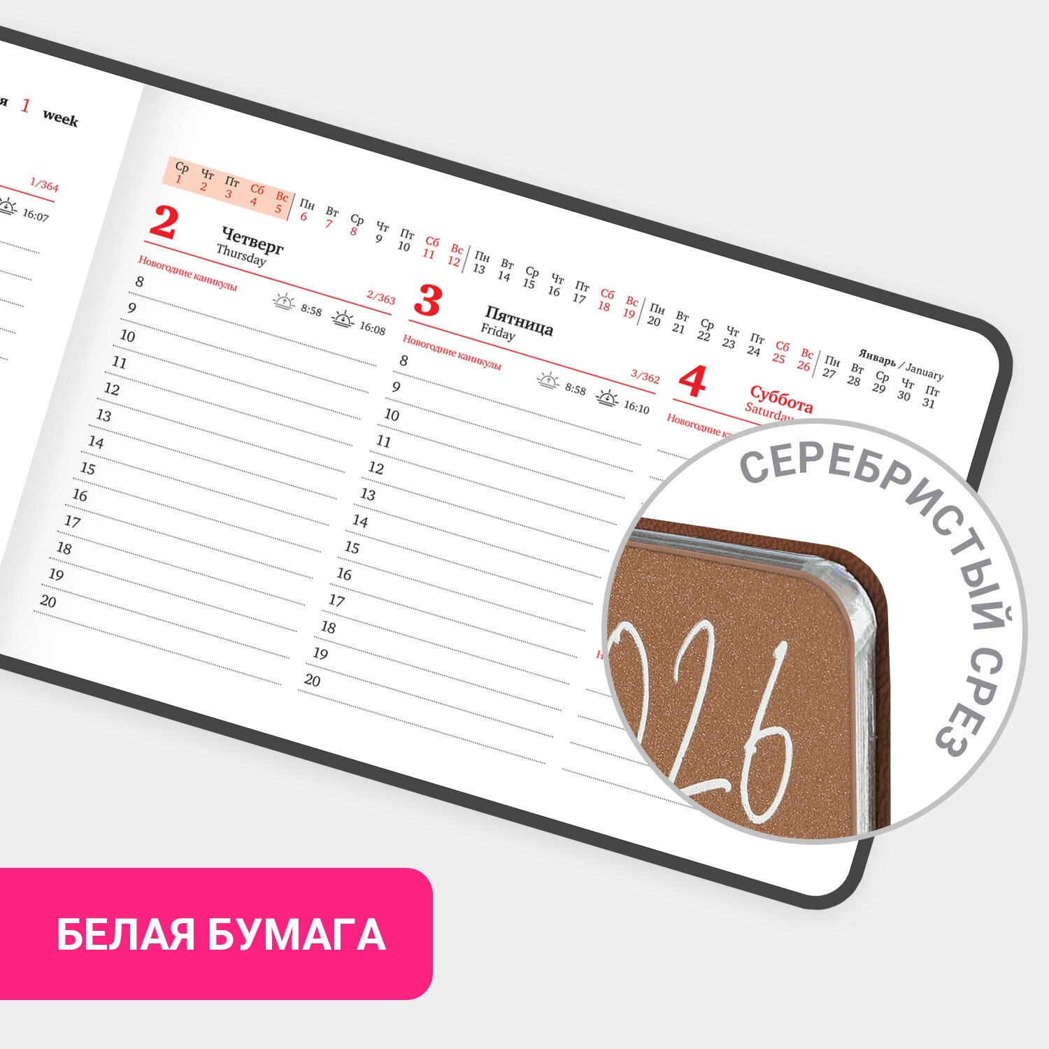 Еженедельник датированный 2026 МАЛЫЙ ФОРМАТ 105х160 мм, А6, BRAUBERG "Blaze", фольга, коричневый Код товара: 117217 151,9 ₽ Купить Производитель:BRAUBERG Датированный еженедельник BRAUBERG "Blaze" выполнен в оригинальном дизайне. Гибкая обложка стилизована под фактурную кожу с блеском. Имеет книжную ориентацию. Внутренний блок включает 64 листа белой бумаги плотностью 70 г/м2. Благодаря малому формату А6 (105х160 мм) еженедельник удобно использовать как в офисе, так и на выездных деловых встречах. Гибкая обложка коричневого цвета, стилизованная под фактурную кожу с блеском, подходит для горячего тиснения. Дополнением является закладка-ляссе, с помощью которой при необходимости можно быстро открыть еженедельник на нужной странице. Для заметок в еженедельнике есть 7 страниц в конце внутреннего блока. Помимо прочего, еженедельник снабжен обширным справочным материалом. Датированный еженедельник BRAUBERG "Blaze" идеально подойдет для офисных работников и людей, занимающихся бизнесом, и ценящих свое драгоценное время.Производство: КитайТип еженедельника: датированныйСерия: BlazeГод: 2026Формат: А6Обложка: под фактурную кожуКоличество листов: 64 шт.Особенности: закладка-ляссе, скругленные углы, справочная информацияТип застежки: нетОсновной цвет обложки: коричневыйДополнительный цвет обложки: нетЦветной срез: даЦвет внутреннего блока: белыйПлотность внутренного блока: 70 г/м2Тип крепления: сшивкаПечать блока: 2 краскиПодходит для блинтового тиснения: даПодходит для тиснения фольгой: даДлина: 160 ммШирина: 105 ммВес: 108 грРазмер упаковки: 1 × 15.9 × 10.5 смОбъём: 0.0002 м3Промежуточная упаковка: 36 штТранспортная упаковка: 36 штШтрих-код: 4606224491363 Файлы Сертификат-1.jpg Сертификат-2.jpg Сертификат-3.jpg Сертификат-4.jpg Сертификат-5.jpg Сертификат-6.jpg Сертификат-7.jpg Сертификат-8.jpg Сертификат-9.jpg Сертификат-10.jpg Сертификат-11.jpg Сертификат-12.jpg Сертификат-13.jpg Сертификат-14.jpg Сертификат-15.jpg Сертификат-16.jpg Сертификат-17.jpg Сертификат-18.jpg Сертификат-19.jpg Сертификат-20.jpg Сертификат-21.jpg Сертификат-22.jpg Сертификат-23.jpg Сертификат-24.jpg Сертификат-25.jpg Сертификат-26.jpg
