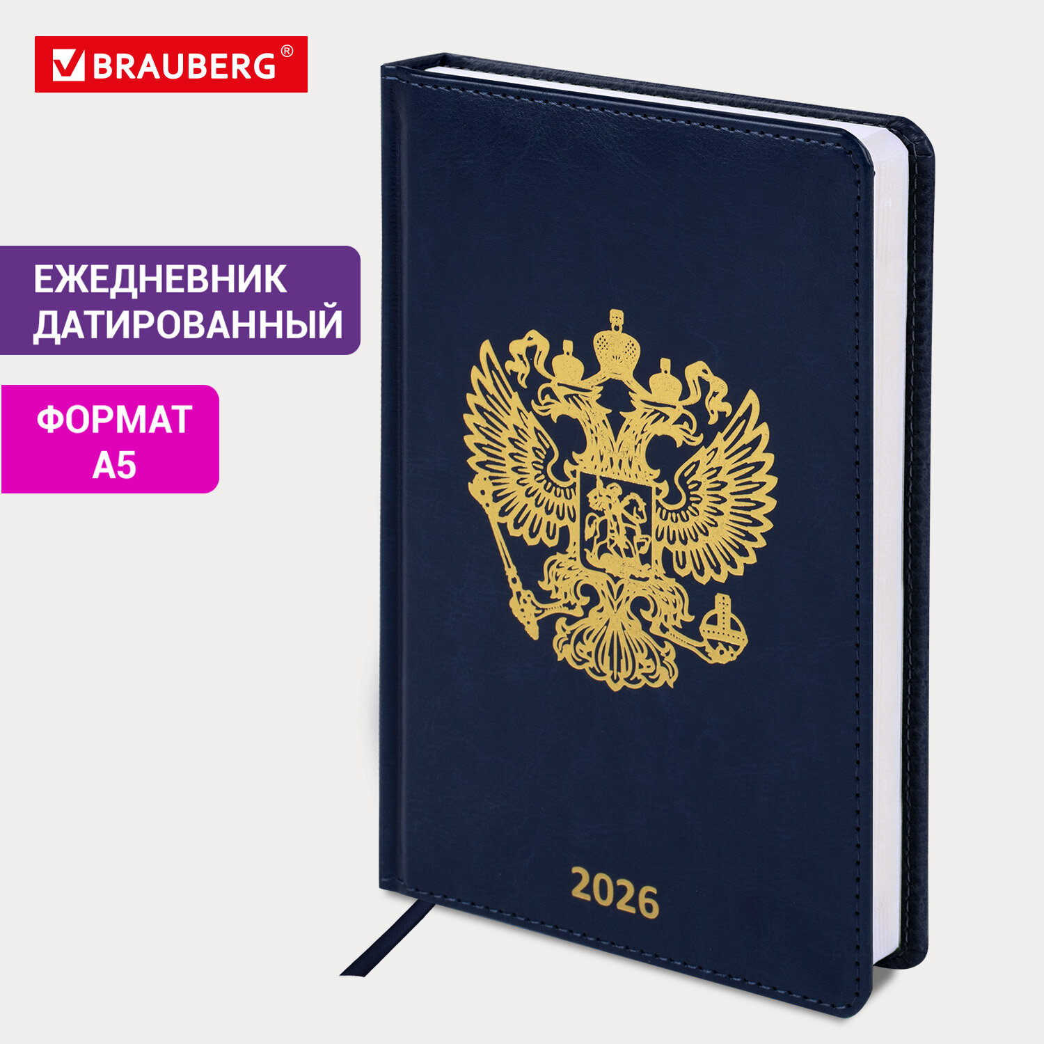 Ежедневник датированный 2026 А5 138х213 мм, BRAUBERG "State", под кожу, синий Код товара: 117416 281,38 ₽ Купить Производитель:BRAUBERG Ежедневник датированный BRAUBERG "State" создан для тех, кому планирование дороже, чем импровизация. Внутренний блок включает 168 листов белой бумаги плотностью 70 г/м2. Каждая страничка имеет перфорированный угол. Благодаря стандартному формату А5 (138х213 мм) датированный ежедневник удобно использовать как в офисе, так и на выездных деловых встречах. Твердая обложка стилизована под гладкую кожу и имеет интересную деталь в виде тиснения фольгой. Подходит для горячего тиснения. Дополнением является закладка-ляссе, с помощью которой при необходимости можно быстро открыть ежедневник на нужной странице. Ежедневник снабжен справочным материалом. В конце есть 4 страницы для записей и заметок.Производство: КитайТип ежедневника: датированныйФормат: А5Обложка: под гладкую кожуВид обложки: твердаяКоличество листов: 168 шт.Особенности: закладка-ляссе, перфорация уголков, прострочка по периметру, скругленные углы, справочная информацияСерия: StateГод: 2026Тип застежки: нетОсновной цвет обложки: синийДополнительный цвет обложки: нетЦвет среза: нетЦвет внутреннего блока: белыйПлотность внутреннего блока: 70 г/м2Высота строки для записи: 4 ммТип крепления: сшивкаПечать блока: 2 краскиПодходит для блинтового тиснения: даПодходит для тиснения фольгой: даДлина: 213 ммШирина: 138 ммТолщина: 20 ммВес: 455 грРазмер упаковки: 2.5 × 21.5 × 14.4 смОбъём: 0.001 м3Промежуточная упаковка: 20 штТранспортная упаковка: 20 штШтрих-код: 4606224489995 Файлы Сертификат-1.jpg Сертификат-2.jpg Сертификат-3.jpg Сертификат-4.jpg Сертификат-5.jpg Сертификат-6.jpg Сертификат-7.jpg Сертификат-8.jpg Сертификат-9.jpg Сертификат-10.jpg Сертификат-11.jpg Сертификат-12.jpg Сертификат-13.jpg Сертификат-14.jpg Сертификат-15.jpg Сертификат-16.jpg Сертификат-17.jpg Сертификат-18.jpg Сертификат-19.jpg Сертификат-20.jpg Сертификат-21.jpg Сертификат-22.jpg Сертификат-23.jpg Сертификат-24.jpg Сертификат-25.jpg Сертификат-26.jpg