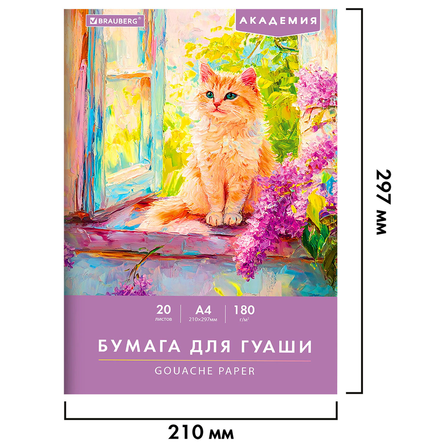 Бумага для гуаши А4 20 л., 180 г/м2, 210х297 мм, в папке, BRAUBERG АКАДЕМИЯ, "Котик" Код товара: 117737 181,81 ₽ Купить Производитель:BRAUBERG Папка для гуаши BRAUBERG АКАДЕМИЯ предназначена для рисования водорастворимыми красками (гуашь, акварель), а также подойдет для рисования карандашами, ручками и фломастерами. Бумага подходит для непрофессионального и детского рисования. Папка для гуаши содержит 20 листов формата А4 (210х297 мм). Белизна 100%. Качественные листы высокой плотности 180 г/м2 устойчивы к истиранию, воздействию влаги, обеспечивают чистую реалистичную передачу цвета. Обложка выполнена из мелованного картона.Производство: РоссияФормат: А4Серия: АКАДЕМИЯПлотность внутреннего блока: 180 г/м2Тип товара: бумага для гуаши в папкеКоличество листов: 20Внутренний блок: рисовальная бумага чистоцеллюлознаяШирина: 210 ммДлина: 297 ммТекстура: мелкое зерноЦвет внутреннего блока: белыйБелизна 100%: даБез кислот: даОбложка: мелованный картонТип скрепления: отсутствуетДизайн обложки: КотикКоличество дизайнов в упаковке: 1 шт.Индивидуальная упаковка: даВес: 268 грРазмер упаковки: 0.7 × 30.2 × 21.7 смОбъём: 0.0005 м3Промежуточная упаковка: 28 штТранспортная упаковка: 28 штШтрих-код: 4606224519326 Сертификат-1.jpg Сертификат-2.jpg Сертификат-3.jpg