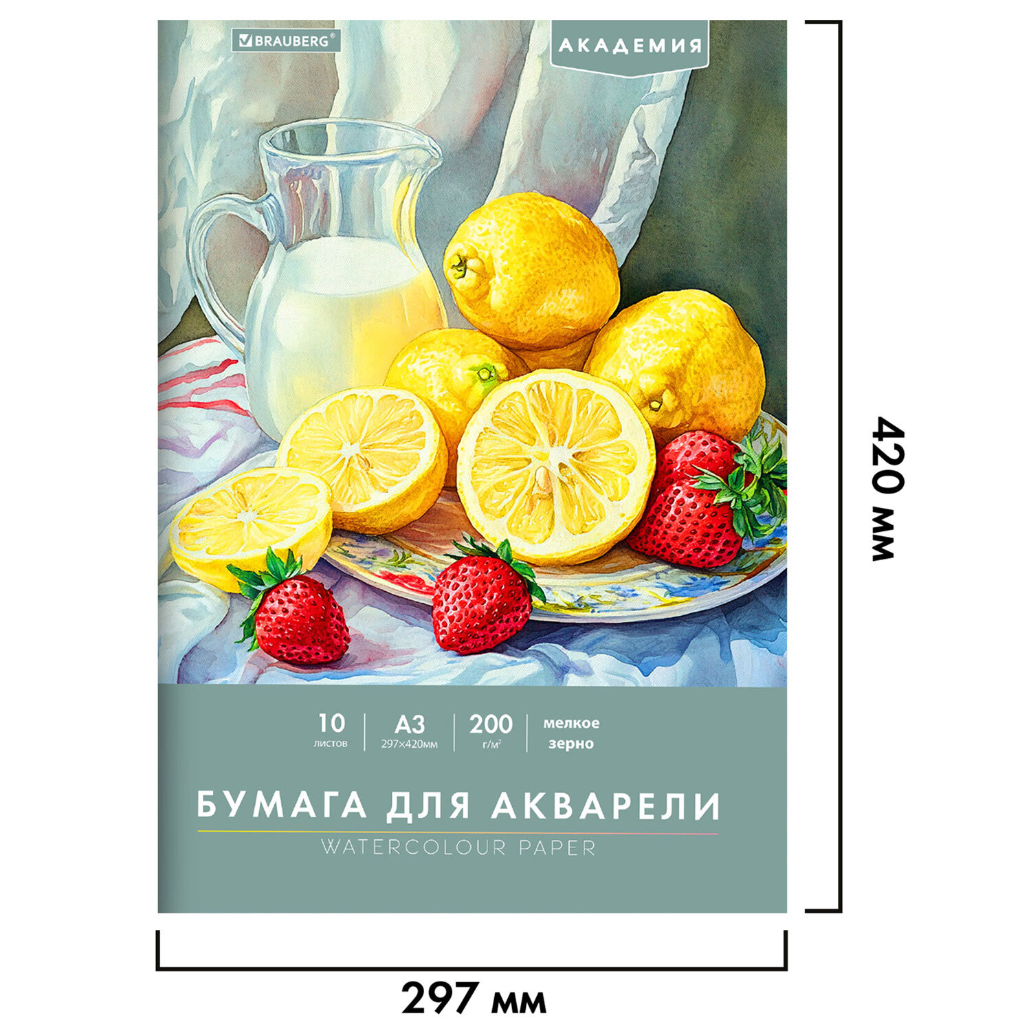 Папка для акварели БОЛЬШАЯ А3, 10 л., 200 г/м2, 297х420 мм, BRAUBERG АКАДЕМИЯ, "Летний натюрморт" Код товара: 117741 208,14 ₽ Купить Производитель:BRAUBERG Папка для акварели BRAUBERG АКАДЕМИЯ предназначена для рисования всеми видами водорастворимых красок, а также подойдет для рисования карандашами, ручками и фломастерами. Бумага подходит для непрофессионального и детского рисования. Папка для акварели содержит 10 листов формата А3 (297х420 мм). Белизна 100%. Качественные листы высокой плотности 200 г/м2 устойчивы к истиранию, воздействию влаги, обеспечивают чистую реалистичную передачу цвета. Обложка выполнена из мелованного картона.Производство: РоссияФормат: А3Серия: АКАДЕМИЯПлотность внутреннего блока: 200 г/м2Тип товара: бумага для акварели в папкеКоличество листов: 10Внутренний блок: рисовальная бумага чистоцеллюлознаяШирина: 297 ммДлина: 420 ммТекстура: мелкое зерноЦвет внутреннего блока: белыйБелизна 100%: даБез кислот: даОбложка: мелованный картонТип скрепления: отсутствуетДизайн обложки: Летний натюрмортКоличество дизайнов в упаковке: 1 шт.Индивидуальная упаковка: даВес: 318 грРазмер упаковки: 0.4 × 42.8 × 30.6 смОбъём: 0.0006 м3Промежуточная упаковка: 30 штТранспортная упаковка: 30 штШтрих-код: 4606224519364 Сертификат-1.jpg Сертификат-2.jpg Сертификат-3.jpg