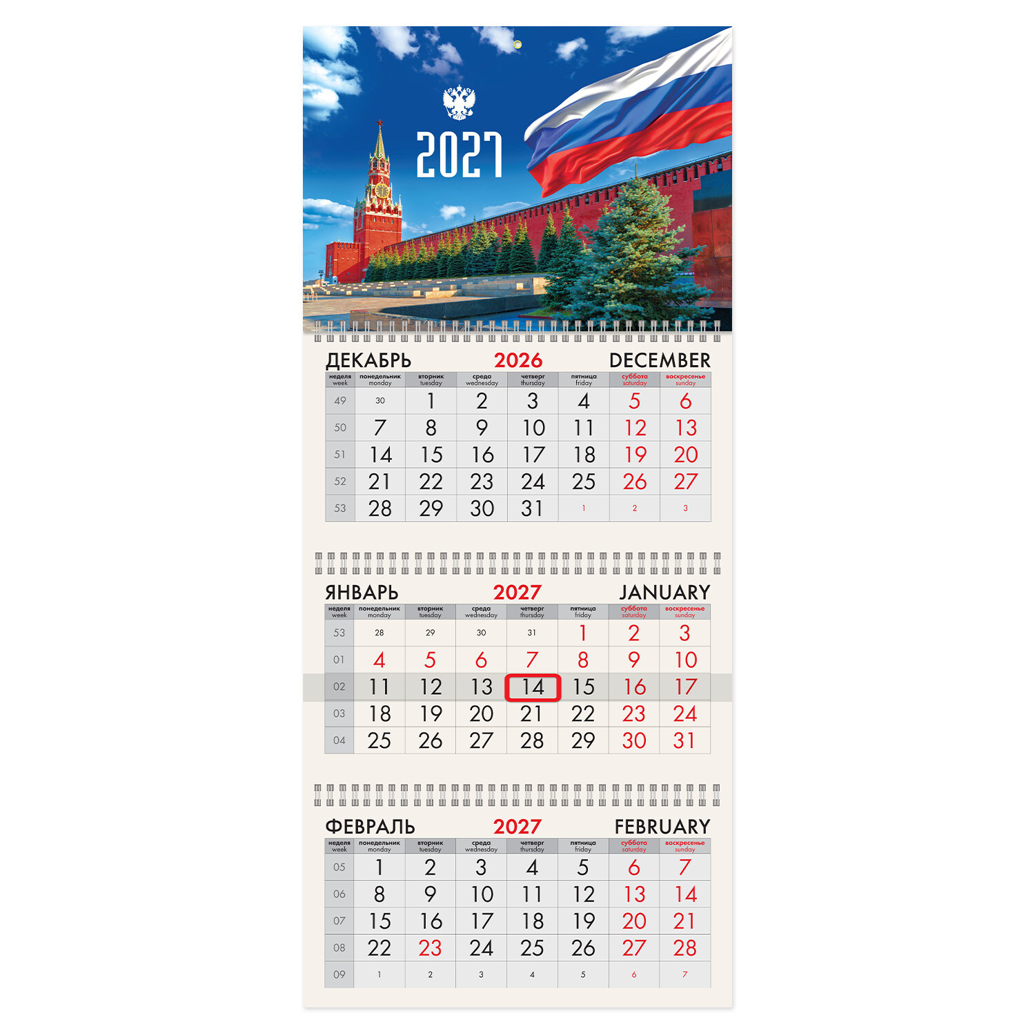 Календарь квартальный 2027г, 3 блока 3 гребня, бегунок, офсет, BRAUBERG, "Моя Россия" Код товара: 118242 298,35 ₽ Купить Производитель:BRAUBERG Квартальный календарь BRAUBERG "Моя Россия" предназначен для делового планирования. Офисный календарь на 2027 год на 3 гребнях. Состоит из 3 блоков с календарными сетками на три месяца – предыдущий, текущий и последующий. Блок календаря напечатан на офсетной бумаге плотностью 65 г/м2. Подложка изготовлена из мелованного картона плотностью 250 г/м2. Курсор-бегунок выделяет текущую дату. Вертикальный формат. Размер – 29,5х68,2 см. Поставляется в индивидуальной упаковке (полибег) с европодвесом и прокладкой из гофрокартона, что обеспечивает дополнительную защиту товара.Производство: РоссияТип календаря: квартальный на 3 гребняхГод: 2027Тип скрепления: гребеньРазмер: 29,5х68,2 смВнутренний блок: офсетная бумагаПлотность внутреннего блока: 65 г/м2Подложка: мелованный картонПлотность подложки: 250 г/м2Курсор: даПикколо: даДизайн: Моя РоссияКалендарная сетка: с разбивкой на 3 месяцаИндивидуальная упаковка: даВес: 250 грРазмер упаковки: 2 × 29.7 × 22.5 смОбъём: 0.0016 м3Промежуточная упаковка: 40 штТранспортная упаковка: 40 штШтрих-код: 4606224527260 Файлы