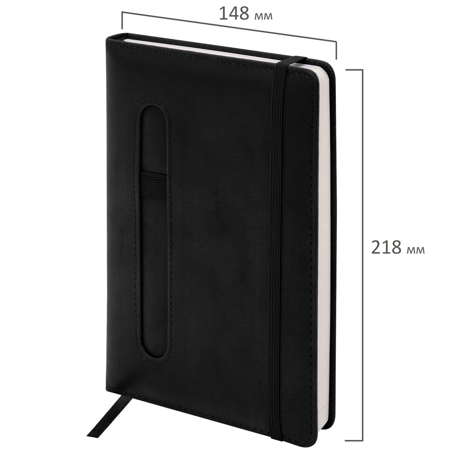 Ежедневник недатированный А5 148x218 мм BRAUBERG "Optimal", под кожу, 160 листов, резинка, держатель для ручки, черный Код товара: 118640 439,21 ₽ Купить Производитель:BRAUBERG Серия "Optimal" создана для тех, кто ценит естественность в дизайне и практичность в использовании. Внутренний блок включает 160 листов тонированной бумаги плотностью 70 г/м2. Каждая страница снабжена перфорированным уголком. Благодаря стандартному формату А5 (148х218 мм) недатированный ежедневник удобно использовать как в офисе, так и на выездных деловых встречах. Твердая обложка стилизована под старинную кожу в рубчик и выполнена в стильном черном цвете. Подходит для горячего тиснения. Модель оснащена резинкой-фиксатором, предотвращающей самопроизвольное открытие в сумке или портфеле. Также предусмотрены закладка-ляссе для быстрого доступа к нужной странице и держатель для ручки. Справочный материал дополнительно расширяет функциональность ежедневника. В конце внутреннего блока есть 4 страницы для записей и заметок.Производство: КитайТип ежедневника: недатированныйФормат: А5Обложка: под старинную кожуВид обложки: твердаяКоличество листов: 160 шт.Особенности: закладка-ляссе, перфорация уголков, поролоновая прослойка, прострочка по периметру, скругленные углы, справочная информация, фиксатор для ручкиСерия: OptimalГод: нетТип застежки: резинка-фиксаторОсновной цвет обложки: черныйДополнительный цвет обложки: нетЦвет среза: нетЦвет внутреннего блока: тонированныйПлотность внутреннего блока: 70 г/м2Высота строки для записи: 4 ммТип крепления: сшивкаПечать блока: 2 краскиПодходит для блинтового тиснения: даПодходит для тиснения фольгой: даПодходит для заливки полимерной смолой: даПодходит для УФ-печати: даДлина: 218 ммШирина: 148 ммТолщина: 20 ммВес: 440 грРазмер упаковки: 2.6 × 14.8 × 21.8 смОбъём: 0.001 м3Промежуточная упаковка: 20 штТранспортная упаковка: 20 штШтрих-код: 4606224538204 Файлы