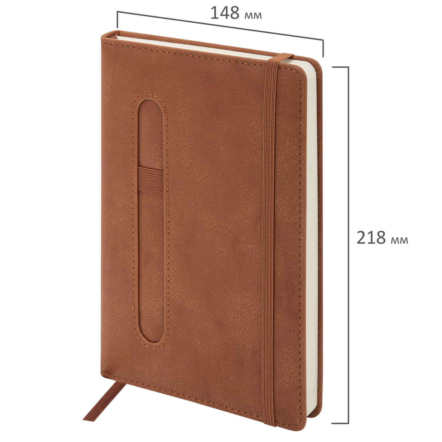 Ежедневник недатированный А5 148x218 мм BRAUBERG "Optimal", под кожу, 160 листов, резинка, держатель для ручки, коричневый Код товара: 118643 439,21 ₽ Купить Производитель:BRAUBERG Серия "Optimal" создана для тех, кто ценит естественность в дизайне и практичность в использовании. Внутренний блок включает 160 листов тонированной бумаги плотностью 70 г/м2. Каждая страница снабжена перфорированным уголком. Благодаря стандартному формату А5 (148х218 мм) недатированный ежедневник удобно использовать как в офисе, так и на выездных деловых встречах. Твердая обложка стилизована под старинную кожу в рубчик и выполнена в стильном коричневом цвете. Подходит для горячего тиснения. Модель оснащена резинкой-фиксатором, предотвращающей самопроизвольное открытие в сумке или портфеле. Также предусмотрены закладка-ляссе для быстрого доступа к нужной странице и держатель для ручки. Справочный материал дополнительно расширяет функциональность ежедневника. В конце внутреннего блока есть 4 страницы для записей и заметок.Производство: КитайТип ежедневника: недатированныйФормат: А5Обложка: под старинную кожуВид обложки: твердаяКоличество листов: 160 шт.Особенности: закладка-ляссе, перфорация уголков, поролоновая прослойка, прострочка по периметру, скругленные углы, справочная информация, фиксатор для ручкиСерия: OptimalГод: нетТип застежки: резинка-фиксаторОсновной цвет обложки: коричневыйДополнительный цвет обложки: нетЦвет среза: нетЦвет внутреннего блока: тонированныйПлотность внутреннего блока: 70 г/м2Высота строки для записи: 4 ммТип крепления: сшивкаПечать блока: 2 краскиПодходит для блинтового тиснения: даПодходит для тиснения фольгой: даПодходит для заливки полимерной смолой: даПодходит для УФ-печати: даДлина: 218 ммШирина: 148 ммТолщина: 20 ммВес: 440 грРазмер упаковки: 2.6 × 14.8 × 21.8 смОбъём: 0.001 м3Промежуточная упаковка: 20 штТранспортная упаковка: 20 штШтрих-код: 4606224538235 Файлы
