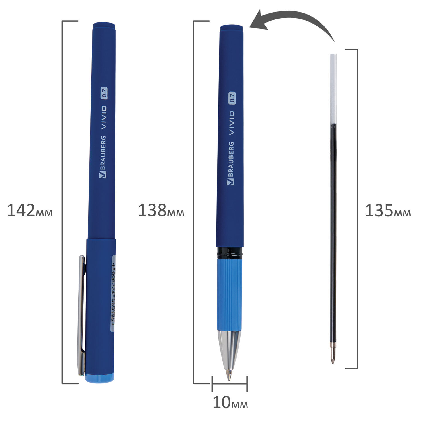 Ручка шариковая с грипом BRAUBERG "VIVID PASTEL", СИНЯЯ, SOFT TOUCH покрытие, узел 0,7 мм, линия письма 0,35 мм Код товара: 144399 57,36 ₽ Купить Производитель:BRAUBERG Ручка шариковая BRAUBERG "VIVID PASTEL" – универсальный инструмент для ведения различных заметок и записей в школе, университете и офисе. Ручка выполнена в стильной композиции оттенков за счет синего корпуса в сочетании с ассорти цветами грипа и колпачка. Мягкое покрытие корпуса SOFT TOUCH и прорезиненный грип в области захвата придают особый комфорт при письме. Стандартный наконечник диаметром 0,7 мм создает линию письма 0,35 мм. Цвет чернил – синий, что идеально подходит для создания записей как для учебы, так и для работы.Производство: КитайЦвет чернил: синийКоличество в комплекте: 1 шт.Толщина линии письма: 0.35 ммДиаметр пишущего узла: 0.7 ммФорма наконечника: стандартныйДлина сменного стержня: 135 ммСерия: VIVIDСтиль: для офиса и учебыЭргономичная зона захвата: резиновый держательЦвет корпуса: ассортиДлина письма: 1000 мДизайн: Vivid pastelФорма корпуса: круглаяПокрытие корпуса: Soft-touchУпаковка: пластиковая тубаСрок годности: 60 месВес: 12 грРазмер упаковки: 1.1 × 14.2 × 1.5 смОбъём: 0.0001 м3Промежуточная упаковка: 24 штТранспортная упаковка: 288 штШтрих-код: 4606224469195 Файлы Сертификат-1.jpg Сертификат-2.jpg Сертификат-3.jpg Сертификат-4.jpg