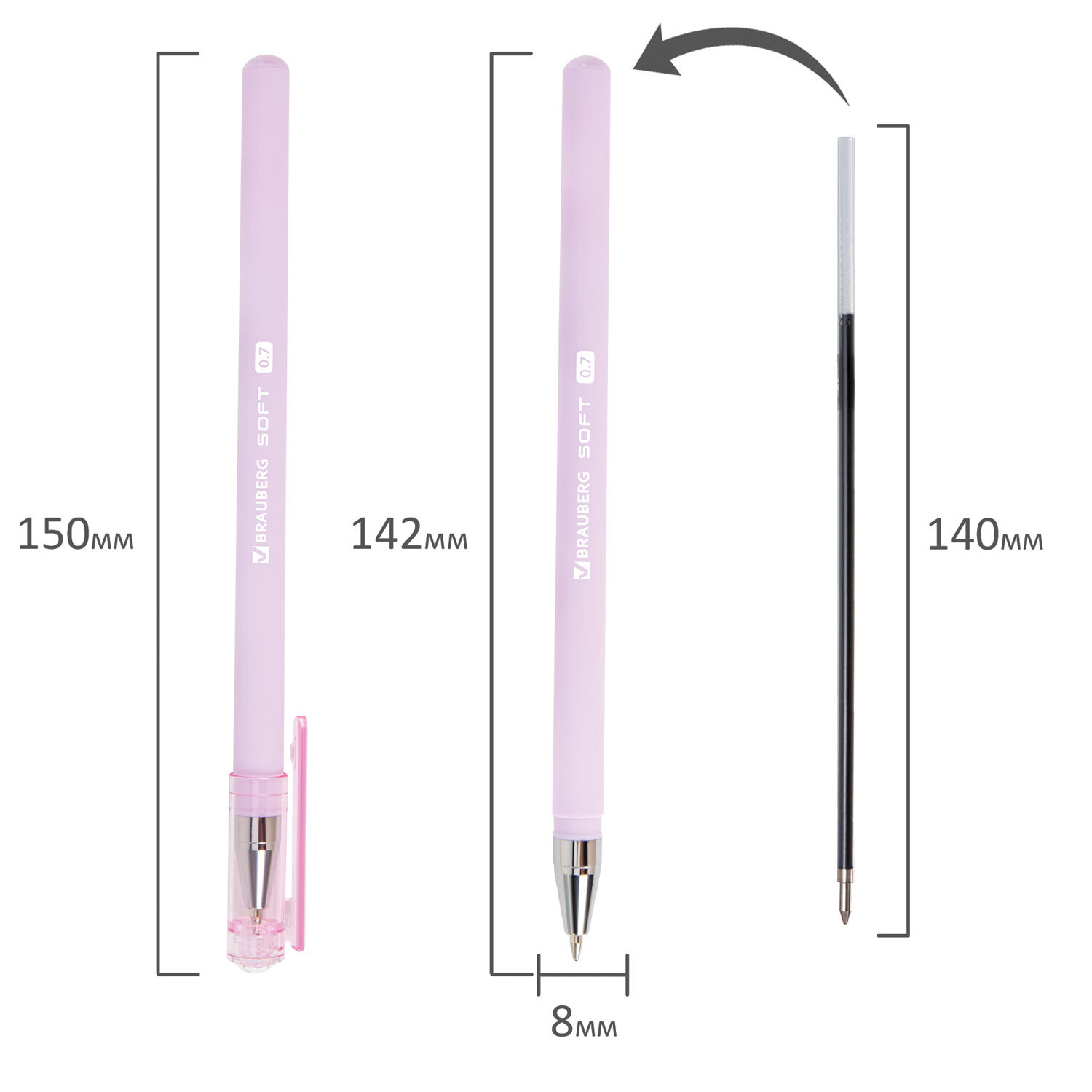 Ручки шариковые BRAUBERG "SOFT PASTEL", НАБОР 4 ШТУКИ, СИНИЕ, SOFT TOUCH покрытие, узел 0,7 мм, линия письма 0,35 мм Код товара: 144400 163,12 ₽ Купить Производитель:BRAUBERG Ручка шариковая BRAUBERG "SOFT PASTEL" нежных пастельных оттенков – незаменимый спутник для ведения записей во время учебы или работы. Набор включает в себя 4 шариковые ручки в нежных пастельных оттенках: небесно-голубой, мятный, розовый и сиреневый. Имеет стандартный наконечник диаметром 0,7 мм, который создает линию письма 0,35 мм. Круглая форма корпуса в сочетании с покрытием SOFT TOUCH обеспечивают комфортный процесс письма. Благодаря синему цвету чернил ручка универсальна для школы, университета и офиса.Производство: КитайЦвет чернил: синийКоличество в комплекте: 4 шт.Толщина линии письма: 0.35 ммДиаметр пишущего узла: 0.7 ммФорма наконечника: стандартныйДлина сменного стержня: 140 ммСерия: Soft PastelСтиль: для офиса и учебыЦвет корпуса: ассортиДлина письма: 1000 мДизайн: SOFT PASTELФорма корпуса: круглаяПокрытие корпуса: Soft-touchУпаковка: картонная коробка с подвесомСрок годности: 60 месВес: 37 грРазмер упаковки: 1.6 × 17.8 × 4.3 смОбъём: 0.0001 м3Промежуточная упаковка: 24 штТранспортная упаковка: 288 штШтрих-код: 4606224469201 Файлы Сертификат-1.jpg Сертификат-2.jpg Сертификат-3.jpg Сертификат-4.jpg