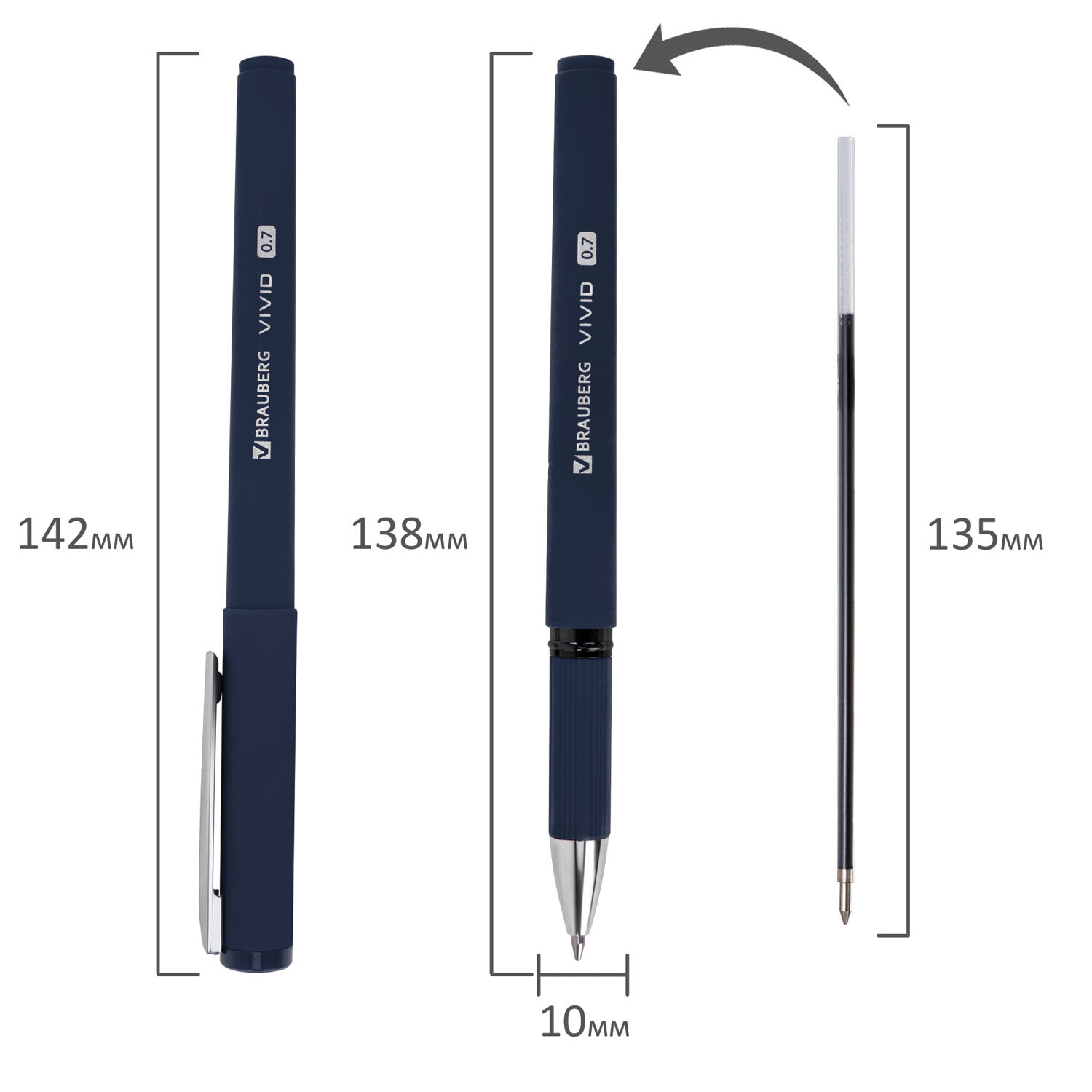 Ручки шариковые с грипом BRAUBERG "VIVID", НАБОР 3 ШТУКИ, СИНИЕ, SOFT TOUCH покрытие, узел 0,7 мм, линия письма 0,35 мм Код товара: 144401 247,6 ₽ Купить Производитель:BRAUBERG Ручка шариковая BRAUBERG "VIVID" – универсальный инструмент для ведения различных заметок и записей в школе, университете и офисе. Набор включает в себя 3 шариковые ручки в стильных темных оттенках: синий, графитовый и бордовый. Мягкое покрытие корпуса SOFT TOUCH и прорезиненный грип в области захвата придают особый комфорт при письме. Стандартный наконечник диаметром 0,7 мм создает линию письма 0,35 мм. Цвет чернил – синий, что идеально подходит для создания записей как для учебы, так и для работы.Производство: КитайЦвет чернил: синийКоличество в комплекте: 3 шт.Толщина линии письма: 0.35 ммДиаметр пишущего узла: 0.7 ммФорма наконечника: стандартныйДлина сменного стержня: 135 ммСерия: VIVIDСтиль: для офиса и учебыЭргономичная зона захвата: резиновый держательЦвет корпуса: ассортиДлина письма: 1000 мДизайн: Vivid dark formФорма корпуса: круглаяПокрытие корпуса: Soft-touchУпаковка: картонная коробка с подвесомСрок годности: 60 месВес: 42 грРазмер упаковки: 1.8 × 16.8 × 3.9 смОбъём: 0.0001 м3Промежуточная упаковка: 12 штТранспортная упаковка: 288 штШтрих-код: 4606224469218 Файлы Сертификат-1.jpg Сертификат-2.jpg Сертификат-3.jpg Сертификат-4.jpg