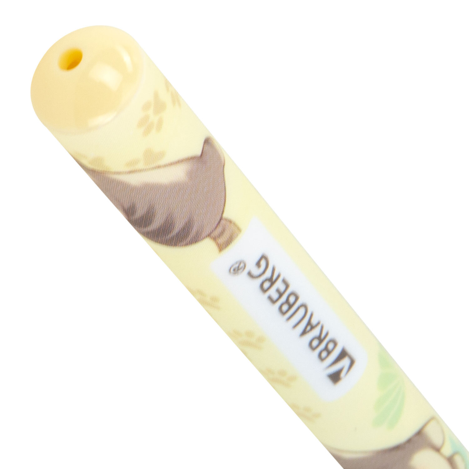 Ручка шариковая с принтом BRAUBERG "МИЛЫЕ КОТЫ", СИНЯЯ, SOFT TOUCH покрытие, узел 0,7 мм, линия письма 0,35 мм Код товара: 144478 39,33 ₽ Купить Производитель:BRAUBERG Ручка шариковая BRAUBERG "МИЛЫЕ КОТЫ" – универсальный помощник для создания различных заметок и записей, идеально подходит для ежедневного использования. Ручка представлена в дизайнах ассорти с милыми котами, которые привлекают внимание своим очаровательным видом. Круглый корпус ручки имеет покрытие SOFT TOUCH, благодаря чему мягко ложится в руке при письме. Стандартный наконечник с диаметром 0,7 мм создает аккуратную линию письма, равную 0,35 мм. Синий цвет чернил делает ручку универсальной как для создания конспектов в школе, так и для ведения записей в офисе.Производство: КитайЦвет чернил: синийКоличество в комплекте: 1 шт.Толщина линии письма: 0.35 ммДиаметр пишущего узла: 0.7 ммФорма наконечника: стандартныйДлина сменного стержня: 140 ммСерия: CUTEСтиль: с рисункомЦвет корпуса: ассортиДлина письма: 1000 мДизайн: Милые котыФорма корпуса: круглаяПокрытие корпуса: Soft-touchУпаковка: пластиковая тубаСрок годности: 60 месВес: 8 грРазмер упаковки: 1 × 14.9 × 1.3 смПромежуточная упаковка: 36 штТранспортная упаковка: 288 штШтрих-код: 4606224482354 Файлы Сертификат-1.jpg Сертификат-2.jpg Сертификат-3.jpg Сертификат-4.jpg