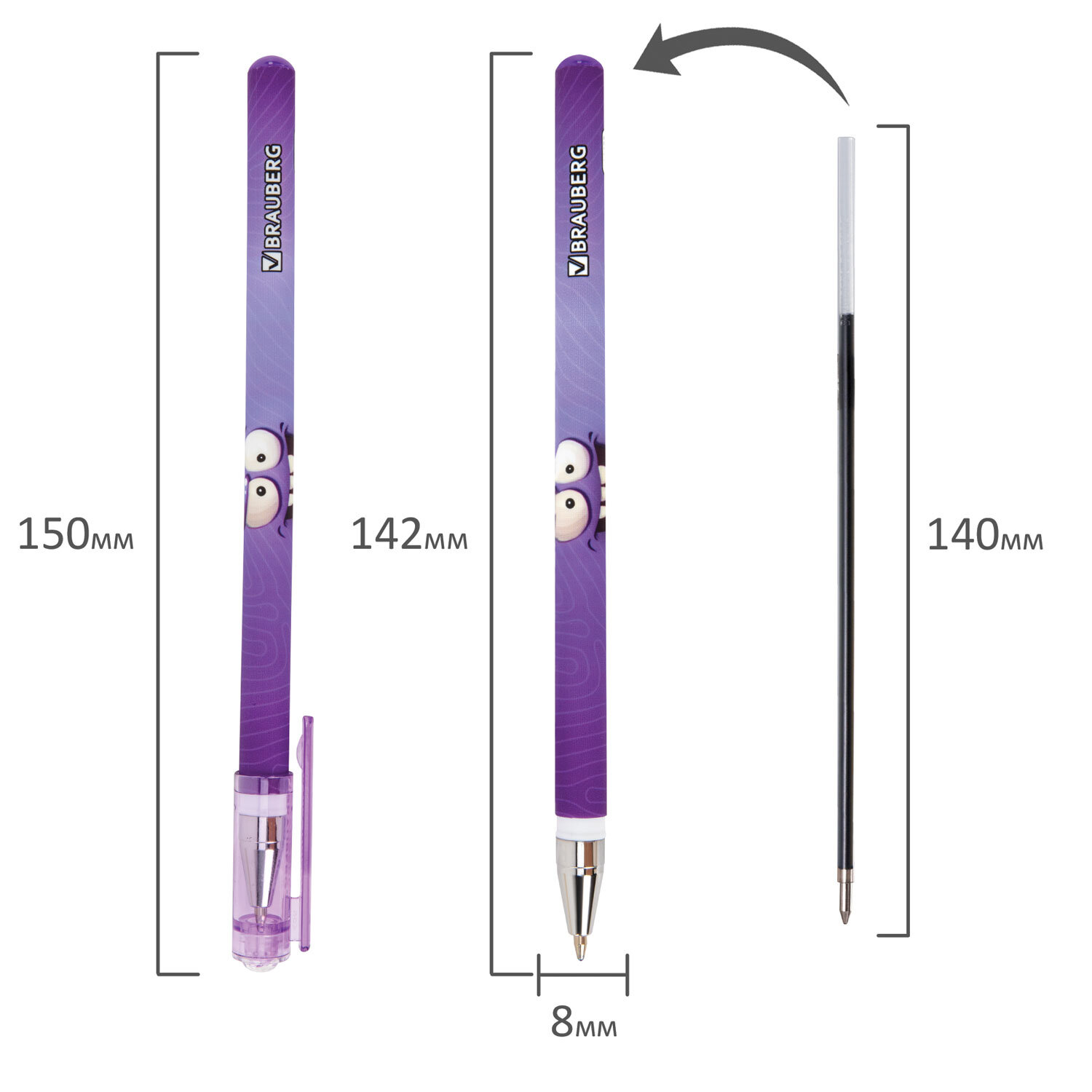 Ручка шариковая с принтом BRAUBERG "МОНСТРИКИ", СИНЯЯ, SOFT TOUCH покрытие, узел 0,7 мм, линия письма 0,35 мм Код товара: 144482 39,33 ₽ Купить Производитель:BRAUBERG Ручка шариковая BRAUBERG "МОНСТРИКИ" – универсальный помощник для создания различных заметок и записей, идеально подходит для ежедневного использования. Ручка представлена в дизайнах ассорти с забавными монстриками, которые привлекают внимание своим необычным видом. Круглый корпус ручки имеет покрытие SOFT TOUCH, благодаря чему мягко ложится в руке при письме. Стандартный наконечник с диаметром 0,7 мм создает аккуратную линию письма, равную 0,35 мм. Синий цвет чернил делает ручку универсальной как для создания конспектов в школе, так и для ведения записей в офисе.Производство: КитайЦвет чернил: синийКоличество в комплекте: 1 шт.Толщина линии письма: 0.35 ммДиаметр пишущего узла: 0.7 ммФорма наконечника: стандартныйДлина сменного стержня: 140 ммСерия: CUTEСтиль: с рисункомЦвет корпуса: ассортиДлина письма: 1000 мДизайн: МонстрикиФорма корпуса: круглаяПокрытие корпуса: Soft-touchУпаковка: пластиковая тубаСрок годности: 60 месВес: 8 грРазмер упаковки: 0.9 × 14.9 × 1.3 смПромежуточная упаковка: 36 штТранспортная упаковка: 288 штШтрих-код: 4606224482392 Файлы Сертификат-1.jpg Сертификат-2.jpg Сертификат-3.jpg Сертификат-4.jpg