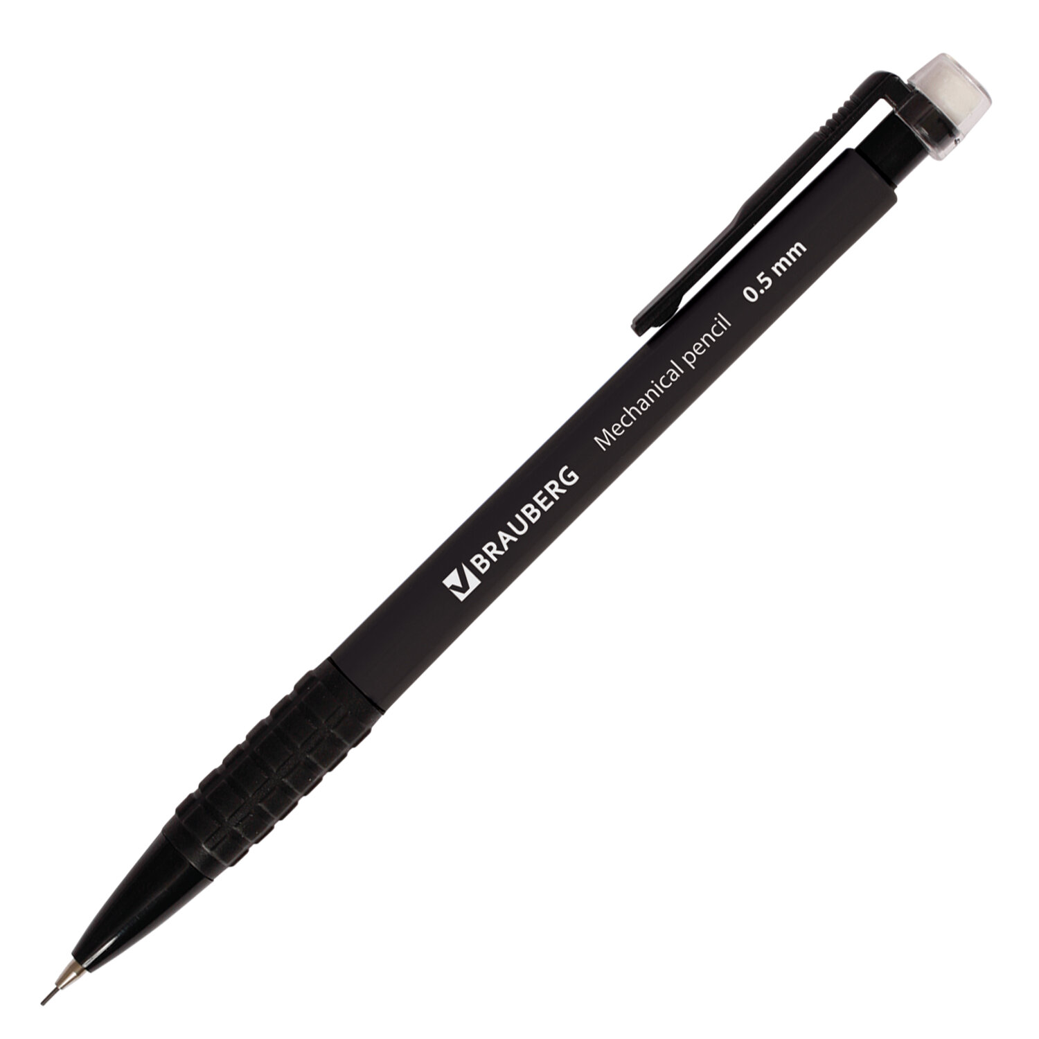 Карандаш механический 0,5 мм, BRAUBERG "Comfort", ластик, резиновый грип, корпус черный Код товара: 180284 56,67 ₽ Купить Производитель:BRAUBERG Механический карандаш BRAUBERG "Comfort" с корпусом черного цвета и удобным резиновым упором, исключающим скольжение пальцев во время письма. Карандаш с нажимным механизмом заправлен грифелем HB, всегда заточен, пишет тонкой ровной линией 0,5 мм, а встроенный ластик с лекгкостью поможет исправить ошибку. Эргономичная прорезиненная зона захвата обеспечивает лучший контроль и создает комфорт письма. Цанга карандаша убирается внутрь корпуса, поэтому даже на дне сумки или пенала такой карандаш не сломается.Производство: КитайТип карандаша: механическийДиаметр грифеля: 0,5 ммНаличие ластика: даТвердость грифеля: НВФорма корпуса: круглаяРезиновый грип: даКоличество в комплекте: 1 шт.Серия: ComfortМатериал корпуса: пластикМатериал клипа: пластикЦвет корпуса: черныйУпаковка: картонная коробкаВес: 9 грРазмер упаковки: 1 × 14.6 × 1.2 смПромежуточная упаковка: 24 штТранспортная упаковка: 1920 штШтрих-код: 4606224005904 Сертификат-1.jpg Сертификат-2.jpg Сертификат-3.jpg