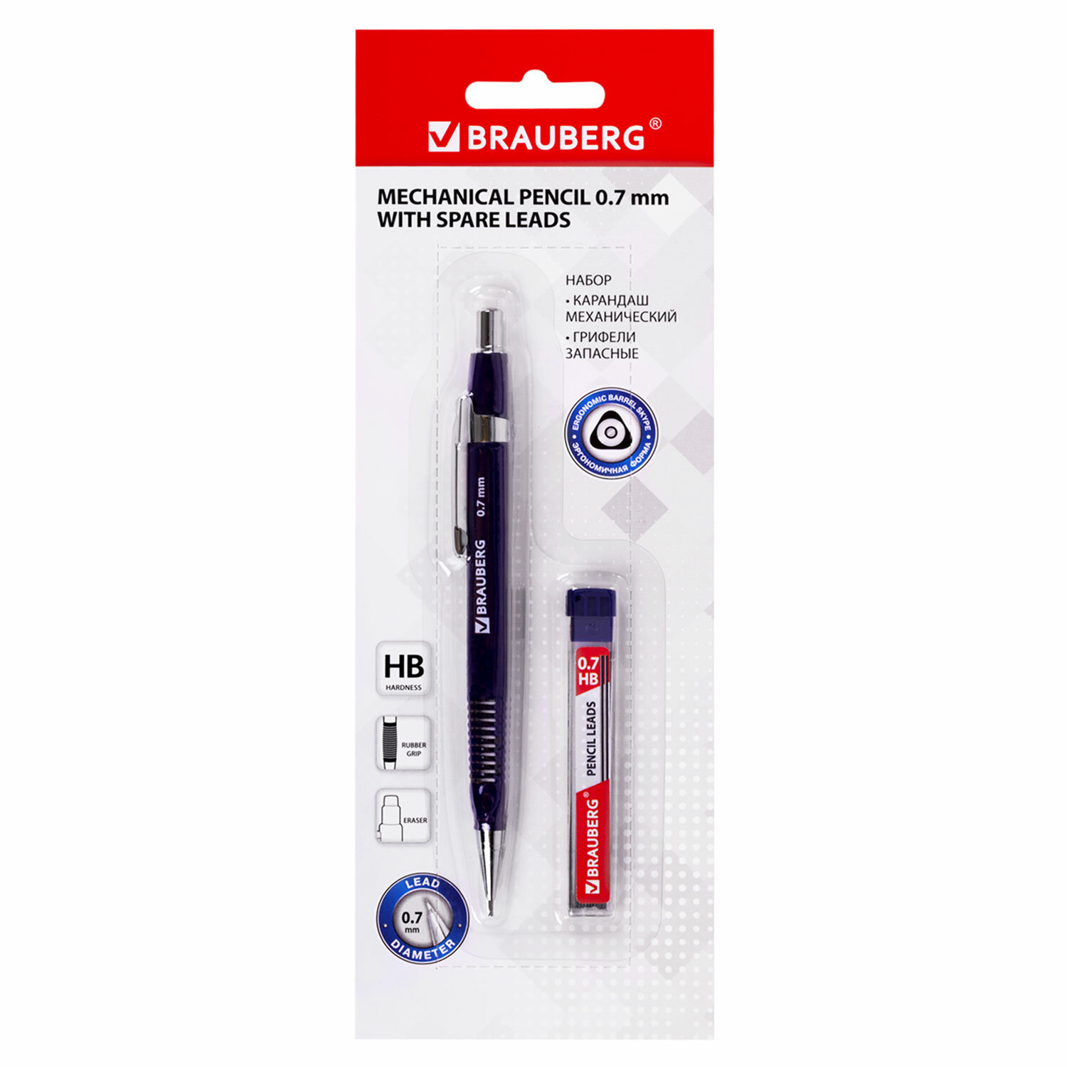 Карандаш механический 0,7 мм, трехгранный корпус + грифели HB 12 штук на блистере, BRAUBERG Код товара: 180494 227,7 ₽ Купить Производитель:BRAUBERG В наборе: механический карандаш c трехгранной эргономичной формой корпуса и антискользящим рифлением в зоне захвата. Имеет металлический клип и ластик. В НАБОР входят 12 запасных грифелей! Внутренний механизм выполнен из металла, что обеспечивает карандашу высокую износостойкость. Карандаш с нажимным механизмом заправлен грифелем HB, всегда заточен и готов к работе, дает ровную линию 0,5 мм, а встроенный ластик поможет быстро и легко исправить ошибку. 12 запасных грифелей не позволят прервать ваше письмо в неподходящий моментПроизводство: КитайТип карандаша: механическийДиаметр грифеля: 0,7 ммНаличие ластика: даТвердость грифеля: НВФорма корпуса: трехграннаяКоличество в комплекте: 1 шт.Серия: нетЗапасные грифели в комплекте: 12 штМатериал корпуса: пластикМатериал клипа: металлЦвет корпуса: синийУпаковка: блистер с европодвесомВес: 33 грРазмер упаковки: 1.1 × 23.9 × 8.6 смОбъём: 0.0003 м3Промежуточная упаковка: 12 штТранспортная упаковка: 144 штШтрих-код: 4606224051352 Сертификат-1.jpg Сертификат-2.jpg Сертификат-3.jpg