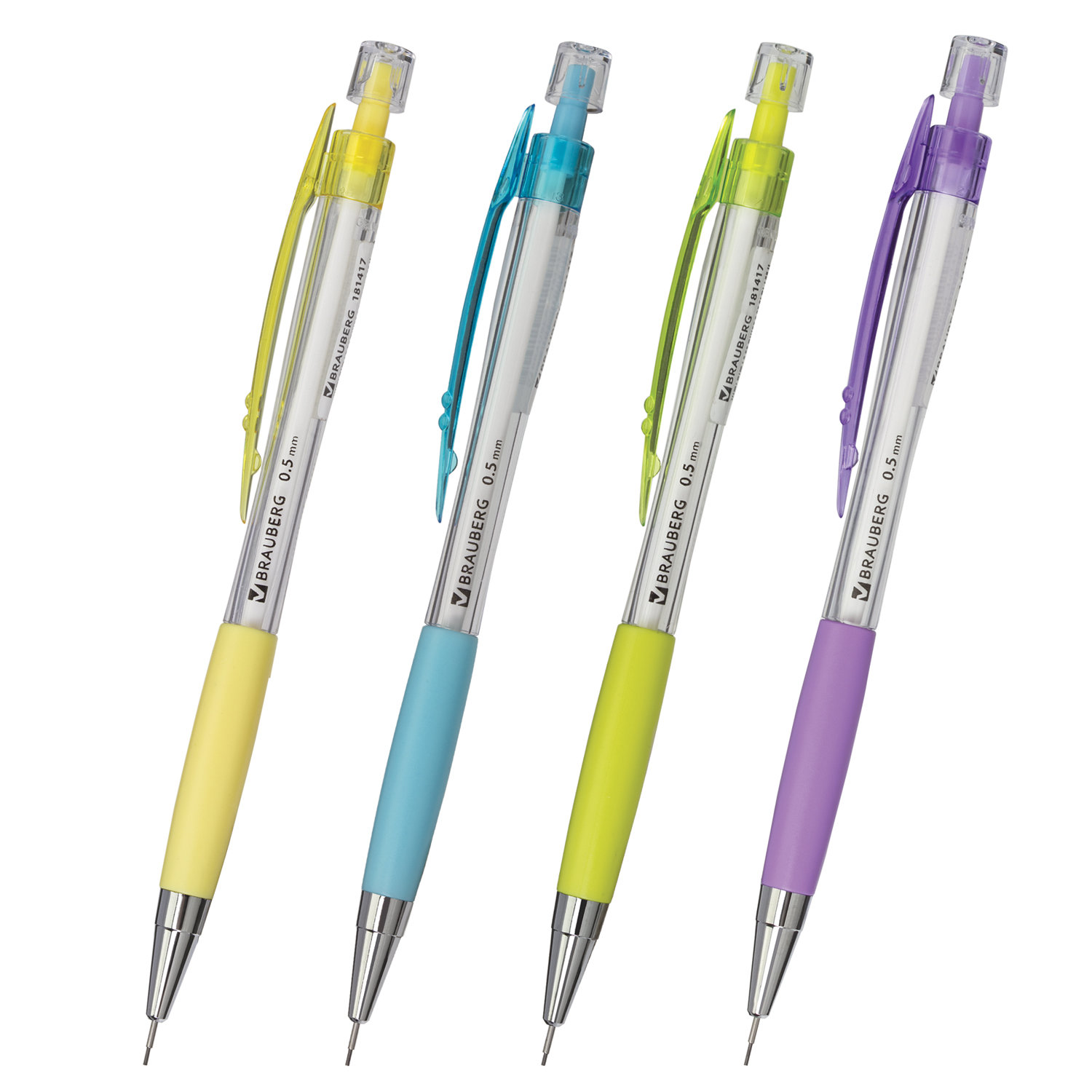 Карандаш механический 0,5 мм, BRAUBERG "Elegant", резиновый грип, корпус ассорти Код товара: 181417 76,93 ₽ Купить Производитель:BRAUBERG Стильный и элегантный механический карандаш BRAUBERG с яркими деталями и хромированным наконечником подчеркнет индивидуальность своего владельца. Карандаш с нажимным механизмом заправлен грифелем HB, всегда заточен и готов к работе, дает ровную линию 0,5 мм. Цанга карандаша убирается внутрь корпуса, поэтому даже на дне сумки или пенала такой карандаш не сломается. Поставляется в нескольких вариантах цвета (без возможности выбора).Производство: КитайТип карандаша: механическийДиаметр грифеля: 0,5 ммТвердость грифеля: НВФорма корпуса: круглаяРезиновый грип: даКоличество в комплекте: 1 шт.Серия: ElegantМатериал корпуса: пластикМатериал клипа: пластикЦвет корпуса: ассортиУпаковка: картонная коробкаВес: 7 грРазмер упаковки: 0.9 × 13.7 × 1.3 смПромежуточная упаковка: 12 штТранспортная упаковка: 1728 штШтрих-код: 4606224211572 Сертификат-1.jpg Сертификат-2.jpg Сертификат-3.jpg
