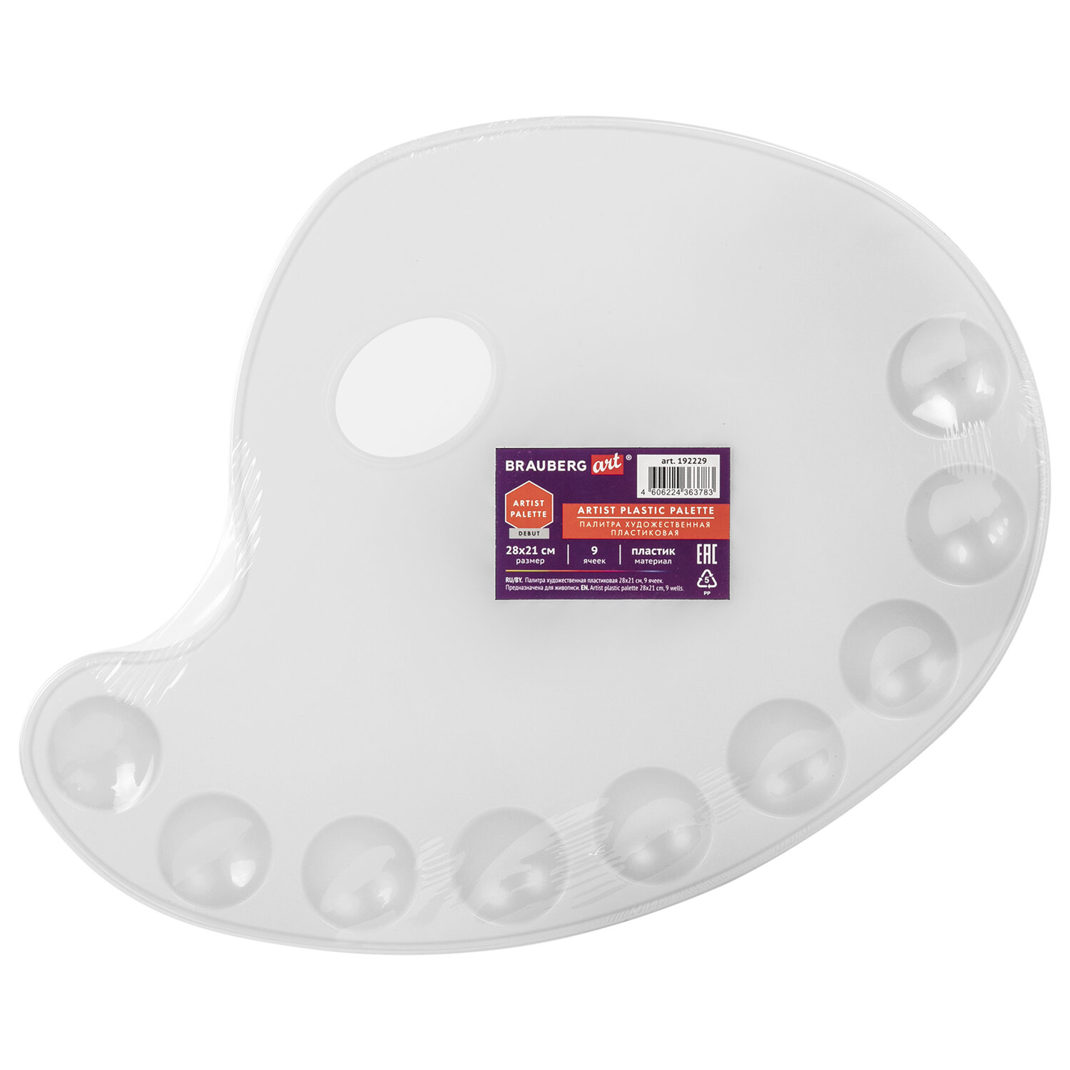 Палитра художественная пластиковая овальная 28х21 см, 9 ячеек, BRAUBERG ART DEBUT Код товара: 192229 160,65 ₽ Купить Производитель:BRAUBERG ART Палитра художественная BRAUBERG ART DEBUT предназначена для живописи. Легкая и компактная пластиковая палитра подходит для работы со всеми типами художественных красок: масляными, акриловыми, темперными, гуашевыми, акварельными. Имеет 9 ячеек для смешивания красок. Палитру овальной формы удобно держать в руке. Размеры – 28х21 см. Художественные палитры пригодятся школьникам, студентам, участникам мастер-классов, ученикам художественных школ, студий и училищ, живописных мастерских, так как у них может быть широкая гамма размеров и видов. Эти палитры используют любители для хобби и профессионалы, которые стремятся достичь такой же славы как Пабло Пикассо (Pablo Picasso), Казимир Малевич, Шагал, Клод Моне (Claude Monet), Рембрандт (Rembrandt), Сальвадор Дали (Salvador Dali), Энди Уорхол (Andy Warhol), Андрей Рублёв, Фрида Кало (Frida Kahlo), Винсент Ван Гог (Vincent van Gogh), Тициан (Tician), Анри Матисс (Henri Matisse), Леонардо да Винчи (Leonardo da Vinci) и другие популярные художники.Производство: КитайШирина: 21 смДлина: 28 смТолщина: 10 ммКоличество в комплекте: 1 шт.Материал: пластикФорма: овальнаяСерия: DEBUTВес: 81 грРазмер упаковки: 0.9 × 27.3 × 21 смОбъём: 0.0005 м3Промежуточная упаковка: 25 штТранспортная упаковка: 100 штШтрих-код: 4606224363783 Сертификат-1.jpg Сертификат-2.jpg Сертификат-3.jpg