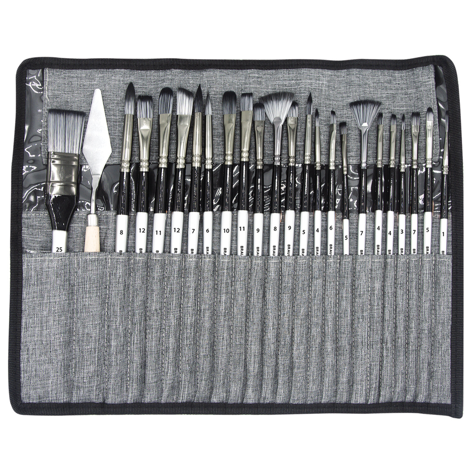 Кисти BRAUBERG ART DEBUT изготовлены с применением синтетики. Отличаются универсальностью в использовании, обусловленной упругостью ворса и прекрасными впитывающими свойствами пучка. Короткая ручка из древесины покрыта лаком, что защищает ее от воздействия красок и влаги. В набор входят 23 кисти различной формы, текстильный пенал-скрутка и мастихин.