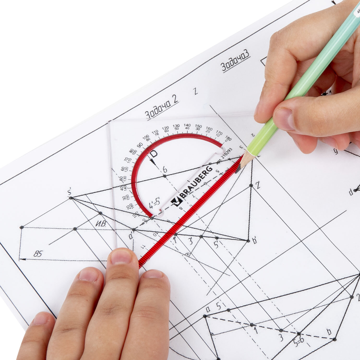 Треугольник пластиковый, угол 45, 13 см, BRAUBERG "Crystal", с транспортиром, прозрачный, с выделенной шкалой Код товара: 210293 63,72 ₽ Купить Производитель:BRAUBERG Прозрачный треугольник BRAUBERG с транспортиром предназначен для чертёжных и измерительных работ. Изготовлен из прочного прозрачного пластика толщиной 2 мм. Длина шкалы - 13 см, угол - 45°, транспортир - 180°. обладает четкой разметкой, что делает его удобным в использовании. Упакован в блистер с европодвесом.Производство: КитайМатериал: пластикДлина шкалы: 13 смУгол: 45 °Тип шкалы: печатнаяВысота: 11 смШирина: 11 смСерия: СrystalТолщина: 2 ммЦвет: красный/прозрачныйУпаковка: пакет с европодвесомВес: 9 грРазмер упаковки: 0.1 × 10.3 × 11.3 смПромежуточная упаковка: 48 штТранспортная упаковка: 1152 штШтрих-код: 4606224046655 Файлы Сертификат-1.jpg Сертификат-2.jpg Сертификат-3.jpg Сертификат-4.jpg