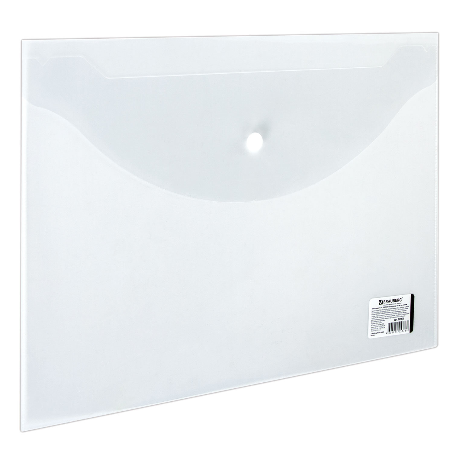 Папка-конверт с кнопкой BRAUBERG, А4, до 100 листов, прозрачная, 0,15 мм Код товара: 221638 40,92 ₽ Купить Производитель:BRAUBERG Папка с кнопкой BRAUBERG - универсальная модель для хранения, транспортировки и защиты документов и мелких предметов от негативных внешних факторов. Станет незаменимым помощником для школьников, студентов, офисных работников и творческих людей. Папка-конверт с гладкой фактурой формата А4 изготовлена из плотного прозрачного пластика толщиной 150 мкм. Закрывается на защелку-кнопку, что делает удобным частое использование и обеспечивает быстрый доступ к ее содержимому. Папка способна вместить до 100 листов стандартной плотности.Производство: РоссияФормат: А4Ориентация: горизонтальнаяВмещает до: 100 листовФактура: гладкаяТип пластика: прозрачныйСерия: StandardДизайн: прозрачныйКоличество в комплекте: 1 шт.Толщина пластика: 150 мкмТип замка: кнопкаЦвет: прозрачныйВысота: 240 ммШирина: 330 ммГлубина: 3 ммМатериал: полипропиленВес: 28 грРазмер упаковки: 0.4 × 32.8 × 24.1 смОбъём: 0.0003 м3Промежуточная упаковка: 15 штТранспортная упаковка: 90 штШтрих-код: 4606224053769 Файлы Сертификат-1.jpg Сертификат-2.jpg Сертификат-3.jpg Сертификат-4.jpg