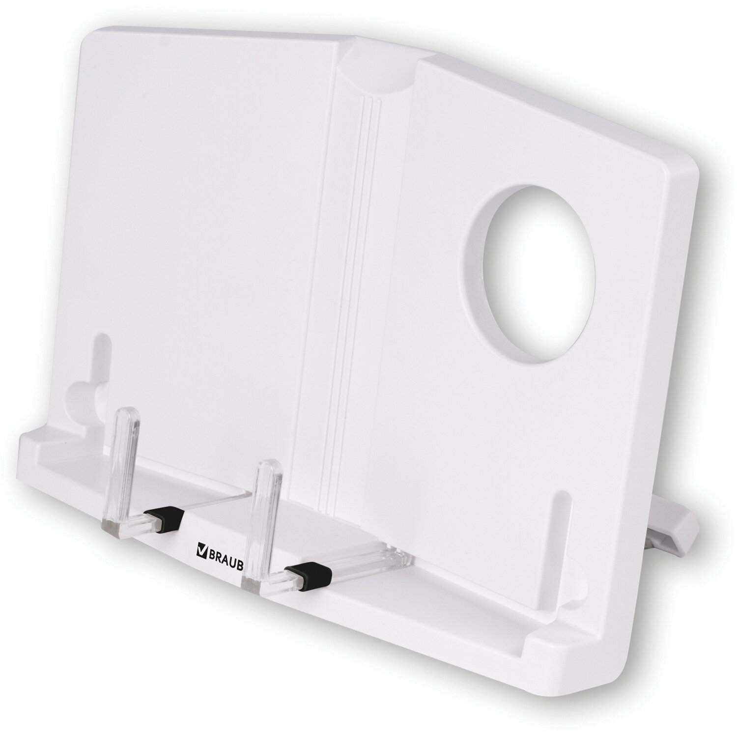 Подставка для книг и учебников BRAUBERG, регулируемый наклон, пластик, белая Код товара: 237445 789,44 ₽ Купить Производитель:BRAUBERG Подставка для книг BRAUBERG идеальна для книг, учебных материалов, презентаций и станет незаменимым помощником дома и в офисе. Лаконичный строгий дизайн прекрасно вписывается в интерьер дома и офиса. Регулируемый наклон позволяет максимально удобно располагать книгу или журнал на рабочем месте индивидуально для каждого читателя. Материал корпуса, основание и держатели страниц выполнены из прочного пластика. Прозрачные пластиковые держатели не закрывают текст и регулируются при разной толщине книг. Антискользящие вставки на ножке и держателях обеспечивают устойчивое расположение на любой поверхности. Благодаря качественным материалам подставка для книг, учебников, журналов прослужит долгое время.Производство: КитайНазначение: для журналов, для книг и учебников, для планшетовРегулируемый угол наклона: даДержатель для страниц: нижнийСерия: Solid+Материал корпуса: пластмассаВысота: 20.5 смШирина: 28.5 смЦвет: белыйУпаковка: картонная коробкаВес: 481 грРазмер упаковки: 7.8 × 28.9 × 20.9 смОбъём: 0.0053 м3Промежуточная упаковка: 24 штТранспортная упаковка: 24 штШтрих-код: 4606224277523 Сертификат-1.jpg Сертификат-2.jpg Сертификат-3.jpg