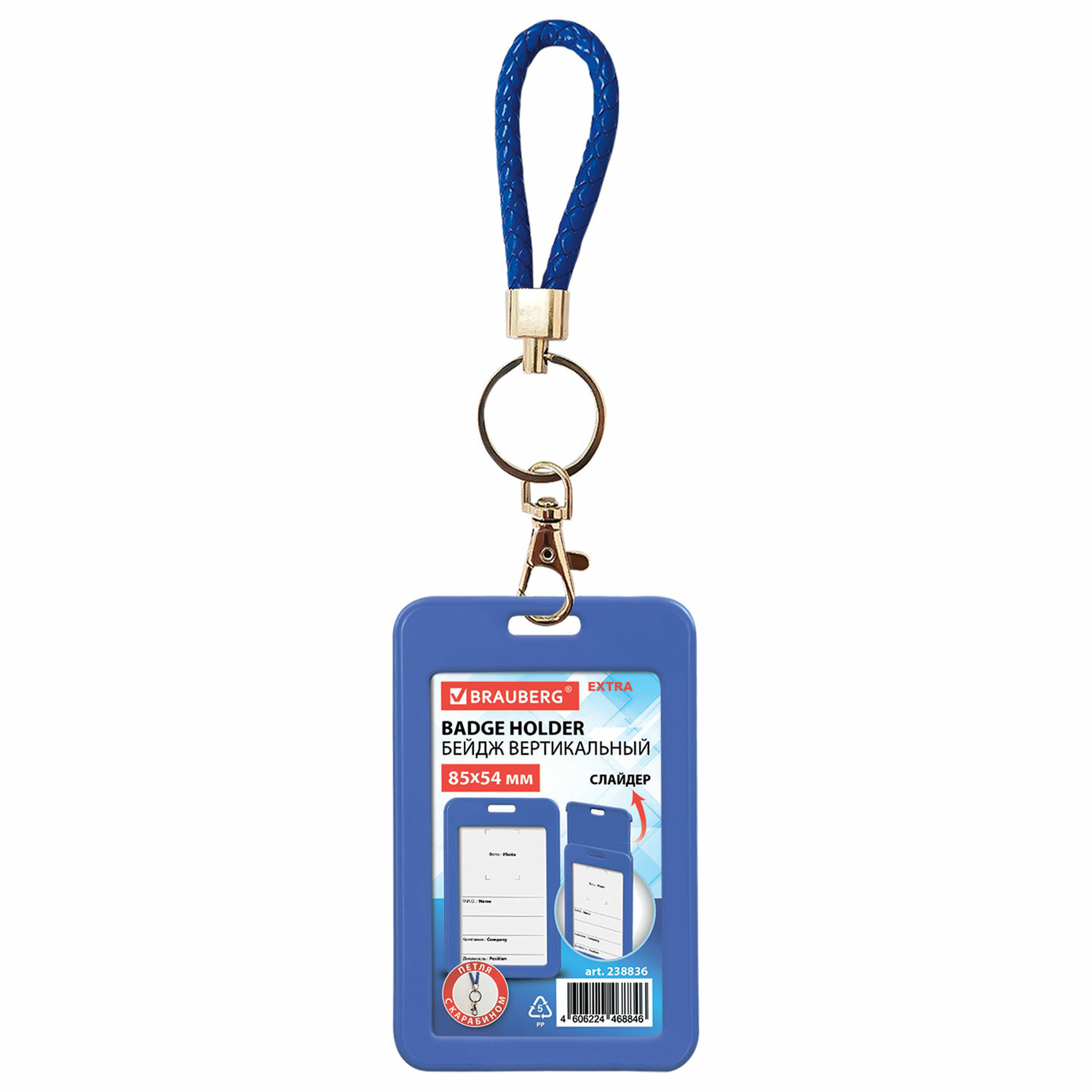 Бейдж вертикальный (85х54 мм), петля с карабином, СЛАЙДЕР, синий, BRAUBERG EXTRA Код товара: 238836 86,81 ₽ Купить Производитель:BRAUBERG Вертикальный бейдж-слайдер с петлей и карабином BRAUBERG для хранения тонких пропусков и карточек сотрудников, ID-карт, проездных и банковских карт. Бейдж-слайдер с петлей на карабине. Изготовлен из жесткого пластика, гарантирующего долгий срок службы бейджа. Защищает от внешних воздействий Вашу карту. Идеально подойдёт для чувствительных к механическим повреждениям магнитных карт и пропусков. Петля с карабином позволяет крепить бейдж в необходимом месте (сумка, рюкзак и т.д.). Размер вкладыша – 85х54 мм. Максимальная толщина пропуска – 1 мм (одна стандартная банковская карта). *Вкладыш бейджа без персонализации, на изображении показан возможный пример использования изделия.Производство: КитайТип бейджа: слайдерТип крепления: петля с карабиномПоложение: вертикальноеКоличество в комплекте: 1 шт.Размер вкладыша (ДхШ): 85х54 ммРазмер бейджа (ДхШ): 110х67 ммСерия: SliderЦвет крепления: синийМатериал корпуса: твердый пластикЦвет корпуса: синийНаличие картонной вставки: даВес: 33 грРазмер упаковки: 1.1 × 10.9 × 8 смОбъём: 0.0002 м3Промежуточная упаковка: 10 штТранспортная упаковка: 240 штШтрих-код: 4606224468846 Файлы Сертификат-1.jpg Сертификат-2.jpg Сертификат-3.jpg Сертификат-4.jpg Сертификат-5.jpg Сертификат-6.jpg Сертификат-7.jpg Сертификат-8.jpg Сертификат-9.jpg Сертификат-10.jpg Сертификат-11.jpg Сертификат-12.jpg Сертификат-13.jpg Сертификат-14.jpg Сертификат-15.jpg Сертификат-16.jpg Сертификат-17.jpg Сертификат-18.jpg Сертификат-19.jpg Сертификат-20.jpg Сертификат-21.jpg Сертификат-22.jpg Сертификат-23.jpg Сертификат-24.jpg Сертификат-25.jpg Сертификат-26.jpg