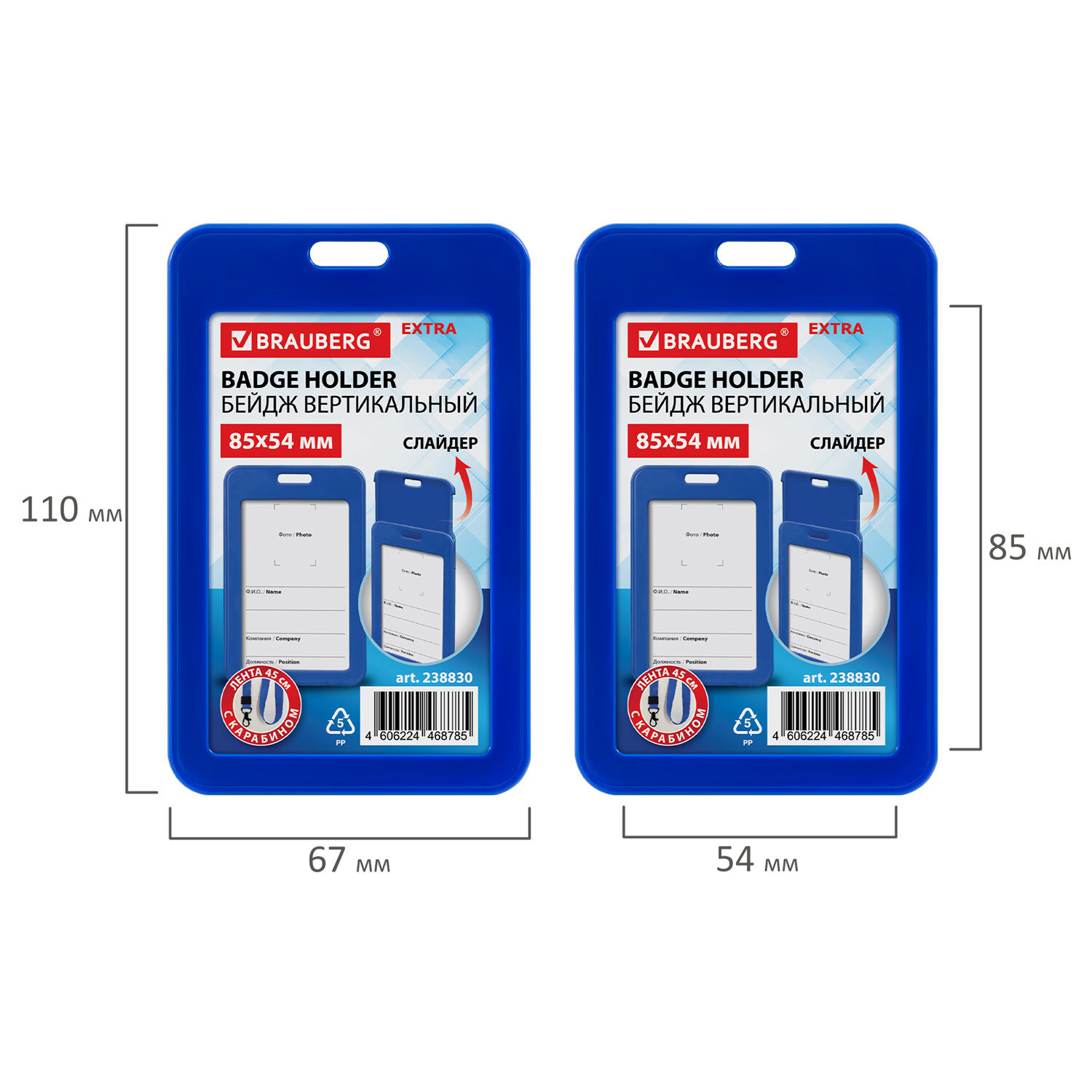 Бейдж вертикальный (85х54 мм), с рулеткой 70 см с клипом, СЛАЙДЕР, синий, BRAUBERG EXTRA Код товара: 238844 120,78 ₽ Купить Производитель:BRAUBERG Вертикальный бейдж с рулеткой BRAUBERG для хранения тонких пропусков, карточек, ID-карт, проездных и банковских карт. Бейдж-слайдер с держателем-рулеткой 70 см. Изготовлен из жесткого пластика, гарантирующего долгий срок службы и защищающего от внешних воздействий Вашу именную карту. Идеально подойдёт для чувствительных к механическим повреждениям магнитных карт и пропусков. Держатель-рулетка оснащен клипсой, благодаря которой его можно с лёгкостью закрепить на поясе или любом другом элементе одежды. Размер вкладыша – 85х54 мм. Максимальная толщина пропуска – 1 мм (одна стандартная банковская карта). *Вкладыш бейджа без персонализации, на изображении показан возможный пример использования изделия.Производство: КитайТип бейджа: слайдерТип крепления: держатель с рулеткойПоложение: вертикальноеКоличество в комплекте: 1 шт.Размер вкладыша (ДхШ): 85х54 ммРазмер бейджа (ДхШ): 110х67 ммСерия: SliderЦвет крепления: синийМатериал корпуса: твердый пластикЦвет корпуса: синийДлина нити в держателе-рулетке: 70 смНаличие картонной вставки: даВес: 35 грРазмер упаковки: 1.9 × 11 × 7 смОбъём: 0.0002 м3Промежуточная упаковка: 10 штТранспортная упаковка: 240 штШтрих-код: 4606224468921 Файлы Сертификат-1.jpg Сертификат-2.jpg Сертификат-3.jpg Сертификат-4.jpg Сертификат-5.jpg Сертификат-6.jpg Сертификат-7.jpg Сертификат-8.jpg Сертификат-9.jpg Сертификат-10.jpg Сертификат-11.jpg Сертификат-12.jpg Сертификат-13.jpg Сертификат-14.jpg Сертификат-15.jpg Сертификат-16.jpg Сертификат-17.jpg Сертификат-18.jpg Сертификат-19.jpg Сертификат-20.jpg Сертификат-21.jpg Сертификат-22.jpg Сертификат-23.jpg Сертификат-24.jpg Сертификат-25.jpg Сертификат-26.jpg