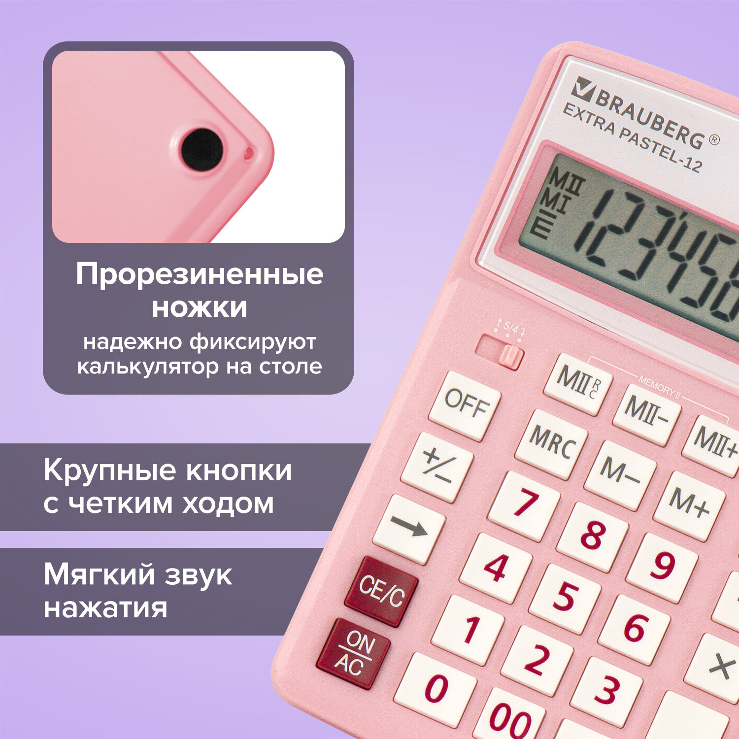 Калькулятор настольный BRAUBERG EXTRA PASTEL-12-PK (206x155 мм), 12 разрядов, двойное питание, РОЗОВЫЙ Код товара: 250487 1 206,35 ₽ Купить Производитель:BRAUBERG Настольный калькулятор BRAUBERG EXTRA PASTEL-12-PK. Большой дисплей с увеличенным углом обзора, устойчивый корпус и клавиатура с цветной дифференциацией для эффективной работы с максимальным комфортом. Калькулятор производит все основные арифметические действия: возведение в степень, вычисления с процентами, извлечение квадратного корня. Незаменим для бухгалтеров благодаря наличию клавиш двойной памяти, «00» и MU для расчетов налогов и торговой наценки. Переключатели округления и положения десятичного знака позволяют производить нужные настройки. Большой двенадцатиразрядный дисплей отображает большие значения с высокой точностью округления. Встроенный аккумулятор и солнечная батарея позволяют калькулятору работать при любом освещении, а клавиша выключения OFF и функция автоматического отключения (через 8-10 минут бездействия) позволяют максимально продлить срок его службы без замены батареи. Размер - 206x155 мм. Гарантия 10 лет.Производство: КитайРазрядность дисплея: 12Серия: ExtraТип размера: полноразмерныйТип применения: для бухгалтеровСтиль: дизайнерскийФункционал: вычисление наценки (MU)Исполнение: настольныйЧисло строк дисплея: 1Материал кнопок: пластикТип питания: 1 батарейка LR44 (LR1154/AG13), солнечный элементЦвет панели: розовыйДлина корпуса: 206 ммШирина корпуса: 155 ммВысота корпуса: 40 ммВес: 349 грРазмер упаковки: 4 × 24.3 × 16 смОбъём: 0.0019 м3Промежуточная упаковка: 20 штТранспортная упаковка: 40 штШтрих-код: 4606224282565 Сертификат-1.jpg Сертификат-2.jpg Сертификат-3.jpg