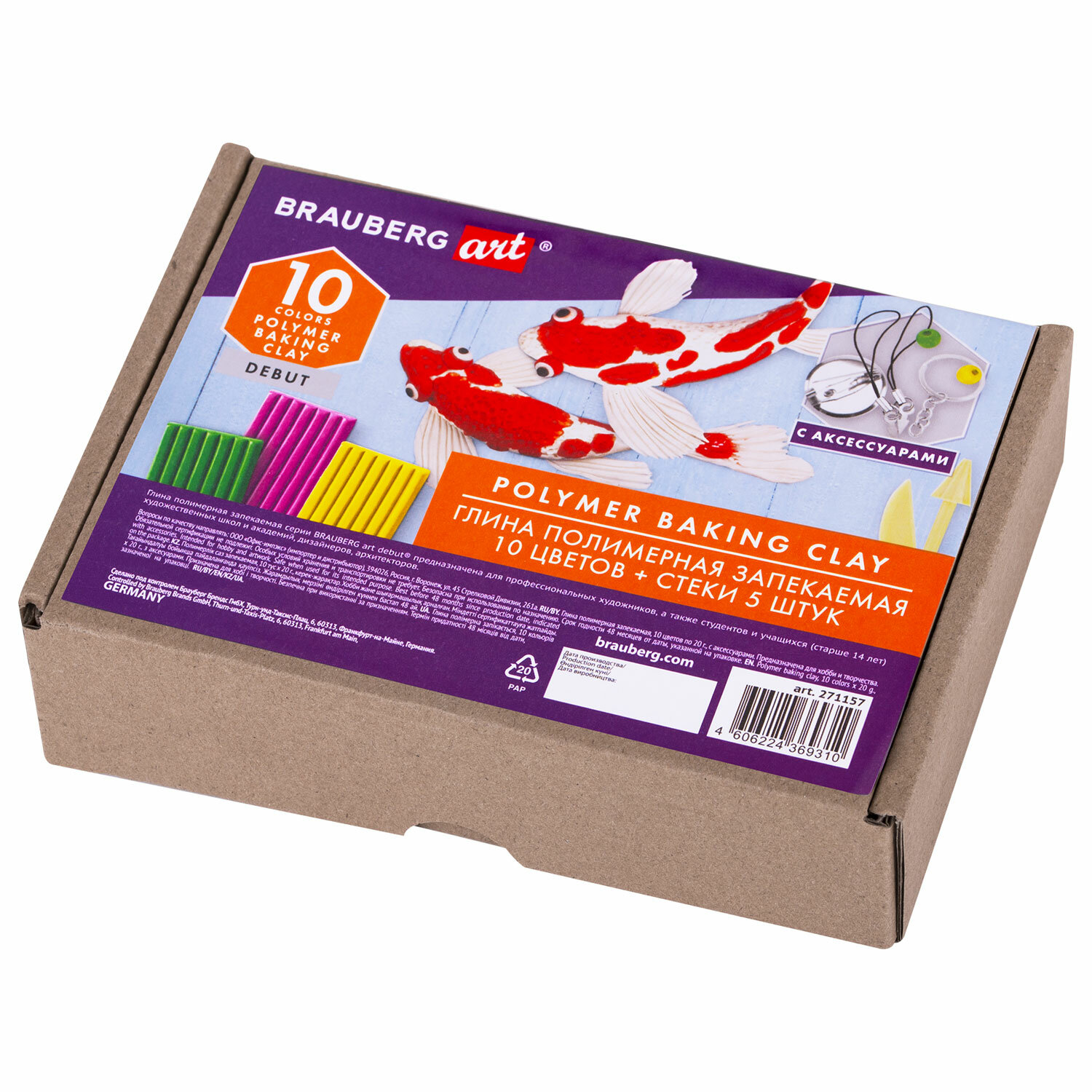 Глина полимерная запекаемая, НАБОР 10 цветов по 20 г, с аксессуарами, в гофрокоробе, BRAUBERG Код товара: 271157 217,26 ₽ Купить Производитель:BRAUBERG ART Глина полимерная запекаемая BRAUBERG ART DEBUT предназначена для лепки и моделирования, создания игрушек, украшений, предметов интерьера, сувениров. Набор включает в себя 10 брусков (по 20 г) полимерной глины разного цвета, 5 пластиковых стеков, комплект аксессуаров для создания поделок и Инструкцию по эксплуатации. Глина ярких и насыщенных цветов, не пачкает и не сушит руки, легко смывается с рук и рабочей поверхности водой или влажными салфетками. Изделия из глины следует запекать в духовке при температуре 130 °С в течение 20-40 минут. Время запекания варьируется в зависимости от толщины изделия и, как правило, составляет 20 минут для толщины заготовки не более 6 мм. После запекания глина становится прочной, не трескается, цвета не тускнеют. Набор упакован в прочную коробку из гофрокартона. Перед использованием следует ознакомиться с инструкцией.Производство: КитайТип товара: глина полимернаяКоличество цветов в наборе: 10 шт. Для запекания: даЦвет: ассортиМасса бруска: 20 гКомплектация: аксессуары, стекиСерия: DEBUTУпаковка: гофрокоробСрок годности: 48 месВес: 294 грРазмер упаковки: 4.2 × 15.7 × 10.8 смОбъём: 0.0009 м3Промежуточная упаковка: 24 штТранспортная упаковка: 24 штШтрих-код: 4606224369310 Файлы Сертификат-1.jpg Сертификат-2.jpg Сертификат-3.jpg Сертификат-4.jpg Сертификат-5.jpg Сертификат-6.jpg Сертификат-7.jpg Сертификат-8.jpg Сертификат-9.jpg Сертификат-10.jpg Сертификат-11.jpg Сертификат-12.jpg Сертификат-13.jpg Сертификат-14.jpg Сертификат-15.jpg Сертификат-16.jpg Сертификат-17.jpg Сертификат-18.jpg Сертификат-19.jpg Сертификат-20.jpg Сертификат-21.jpg Сертификат-22.jpg Сертификат-23.jpg Сертификат-24.jpg Сертификат-25.jpg Сертификат-26.jpg