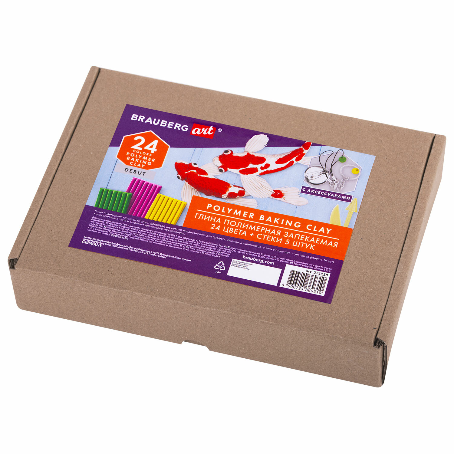 Глина полимерная запекаемая, НАБОР 24 цветов по 20 г, с аксессуарами, в гофрокоробе, BRAUBERG Код товара: 271158 584,72 ₽ Купить Производитель:BRAUBERG ART Глина полимерная запекаемая BRAUBERG ART DEBUT предназначена для лепки и моделирования, создания игрушек, украшений, предметов интерьера, сувениров. Набор включает в себя 24 бруска (по 20 г) полимерной глины разного цвета, 5 пластиковых стеков, комплект аксессуаров для создания поделок и Инструкцию по эксплуатации. Глина ярких и насыщенных цветов, не пачкает и не сушит руки, легко смывается с рук и рабочей поверхности водой или влажными салфетками. Изделия из глины следует запекать в духовке при температуре 130 °С в течение 20-40 минут. Время запекания варьируется в зависимости от толщины изделия и, как правило, составляет 20 минут для толщины заготовки не более 6 мм. После запекания глина становится прочной, не трескается, цвета не тускнеют. Набор упакован в прочную коробку из гофрокартона. Перед использованием следует ознакомиться с инструкцией.Производство: КитайТип товара: глина полимернаяКоличество цветов в наборе: 24 шт. Для запекания: даЦвет: ассортиМасса бруска: 20 гКомплектация: аксессуары, стекиСерия: DEBUTУпаковка: гофрокоробСрок годности: 48 месВес: 611 грРазмер упаковки: 4.1 × 20.1 × 14.2 смОбъём: 0.0017 м3Промежуточная упаковка: 12 штТранспортная упаковка: 12 штШтрих-код: 4606224369327 Файлы Сертификат-1.jpg Сертификат-2.jpg Сертификат-3.jpg Сертификат-4.jpg Сертификат-5.jpg Сертификат-6.jpg Сертификат-7.jpg Сертификат-8.jpg Сертификат-9.jpg Сертификат-10.jpg Сертификат-11.jpg Сертификат-12.jpg Сертификат-13.jpg Сертификат-14.jpg Сертификат-15.jpg Сертификат-16.jpg Сертификат-17.jpg Сертификат-18.jpg Сертификат-19.jpg Сертификат-20.jpg Сертификат-21.jpg Сертификат-22.jpg Сертификат-23.jpg Сертификат-24.jpg Сертификат-25.jpg Сертификат-26.jpg