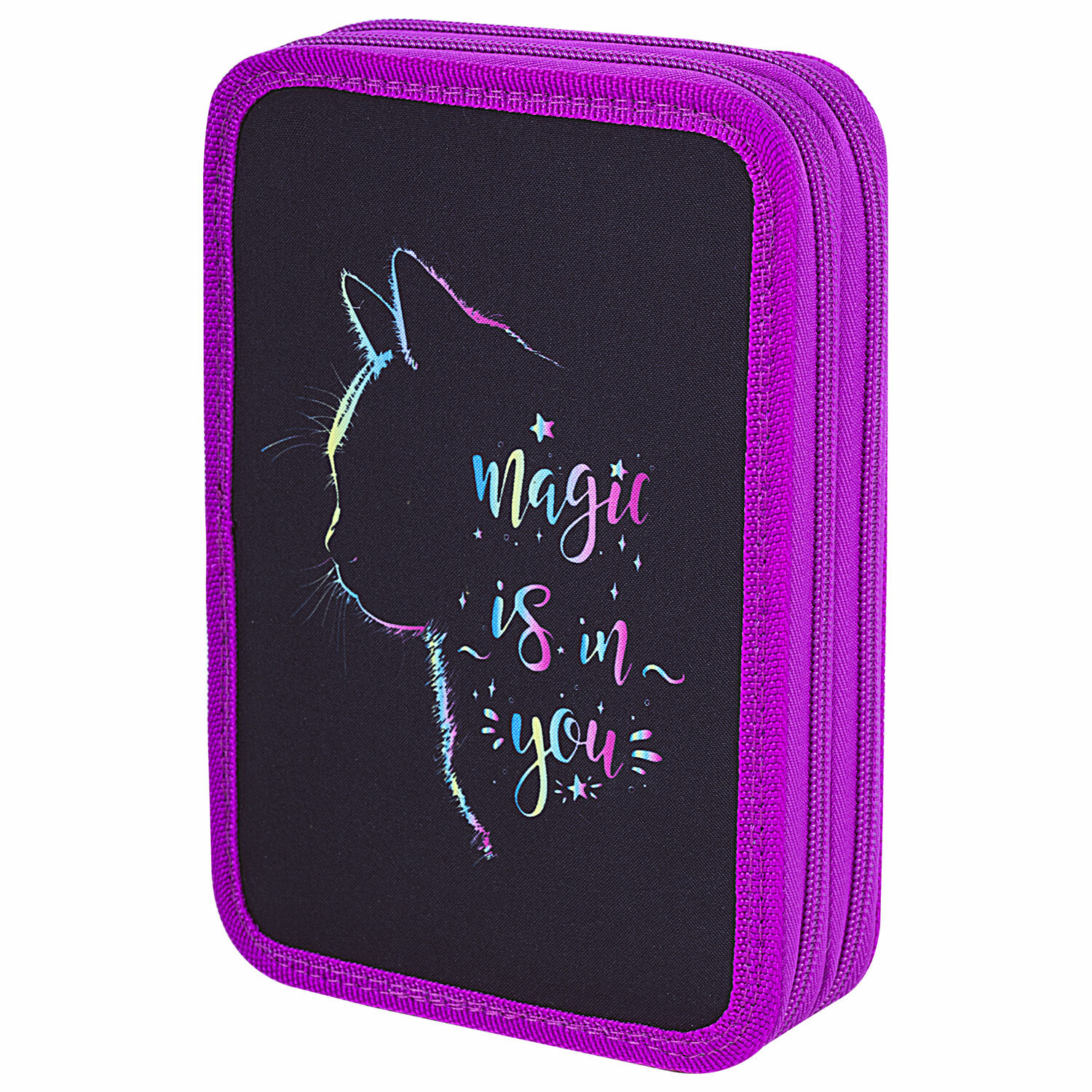 Пенал BRAUBERG, 2 отделения, полиэстер, 21х14 см, "Magic Cat" Код товара: 271542 488,53 ₽ Купить Производитель:BRAUBERG Тканевый пенал BRAUBERG стандартного размера с двумя отделением. Удобная молния с трех сторон с металлическим бегунком, прочные резинки для предметов. Вмещает до 25 предметов. Материал снаружи и внутри – полиэстер с цветной печатью, ярким дизайном. Основа пенала – плотный картон. Такая конструкция отличается износостойкостью и прочностью, поможет защитить канцелярские принадлежности от повреждений. Пенал оснащен 2 основными отделениями. Вмещает до 25 предметов. Пенал имеет стандартный размер 21х14 см, что позволяет легко размещать его в ранце, рюкзаке или сумке. Хорошая наполняемость пенала дает возможность держать все необходимые для уроков канцелярские принадлежности в одном месте. Упакован в ПЭТ-пакет с европодвесом, который сохранит качество и товарный вид изделия при хранении и транспортировке.Производство: КитайТип пенала: двухкамерныйНазначение: для девочекСерия: PREMIUM DOUBLE DECKERДизайн: Magic CatЗастежка: молнияКоличество отделений: 2Материал: полиэстерОсновной цвет: черныйДлина: 21 смШирина: 14 смУпаковка: прозрачный пакет с европодвесомВес: 275 грРазмер упаковки: 21 × 14 × 5 смОбъём: 0.002 м3Промежуточная упаковка: 12 штТранспортная упаковка: 24 штШтрих-код: 4606224393612 Сертификат-1.jpg Сертификат-2.jpg Сертификат-3.jpg