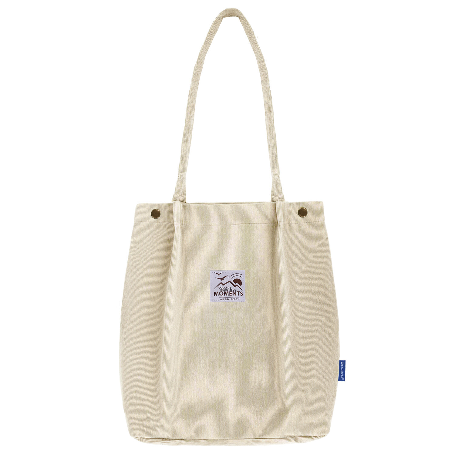 Сумка шоппер BRAUBERG MOMENTS, вельвет, 35х30 см, бежевый Код товара: 271906 468,27 ₽ Купить Производитель:BRAUBERG Сумка-шоппер BRAUBERG MOMENTS - это современная и экологичная альтернатива одноразовым пластиковым пакетам. Она станет незаменимым аксессуаром на все случаи жизни: идеально подходит для учебы, работы, поездок и пляжного отдыха. Сумка выполнена из плотного материала "вельвет", благодаря чему выдерживает нагрузку до 10 кг. Внутри износостойкая подкладка из полиэстера. Одно вместительное отделение (30х35 см) закрывается на магнитный клапан посередине, а также двумя застежками-кнопками по бокам. Внутри имеется двойной карман (26х14 см) для телефона и других ценных вещей. Оптимальная длина ручек (67 см) позволяет носить шоппер как в руке, так и на плече.Производство: КитайСерия: MOMENTSЦвет: бежевыйМатериал: вельветКоличество отделений: 1 шт. Количество карманов: 2 шт.Тип застежки: кнопкаВысота: 35 смШирина: 30 смВес: 181 грРазмер упаковки: 4.8 × 19.2 × 15.7 смОбъём: 0.0016 м3Промежуточная упаковка: 48 штТранспортная упаковка: 48 штШтрих-код: 4606224408163 Сертификат-1.jpg Сертификат-2.jpg Сертификат-3.jpg