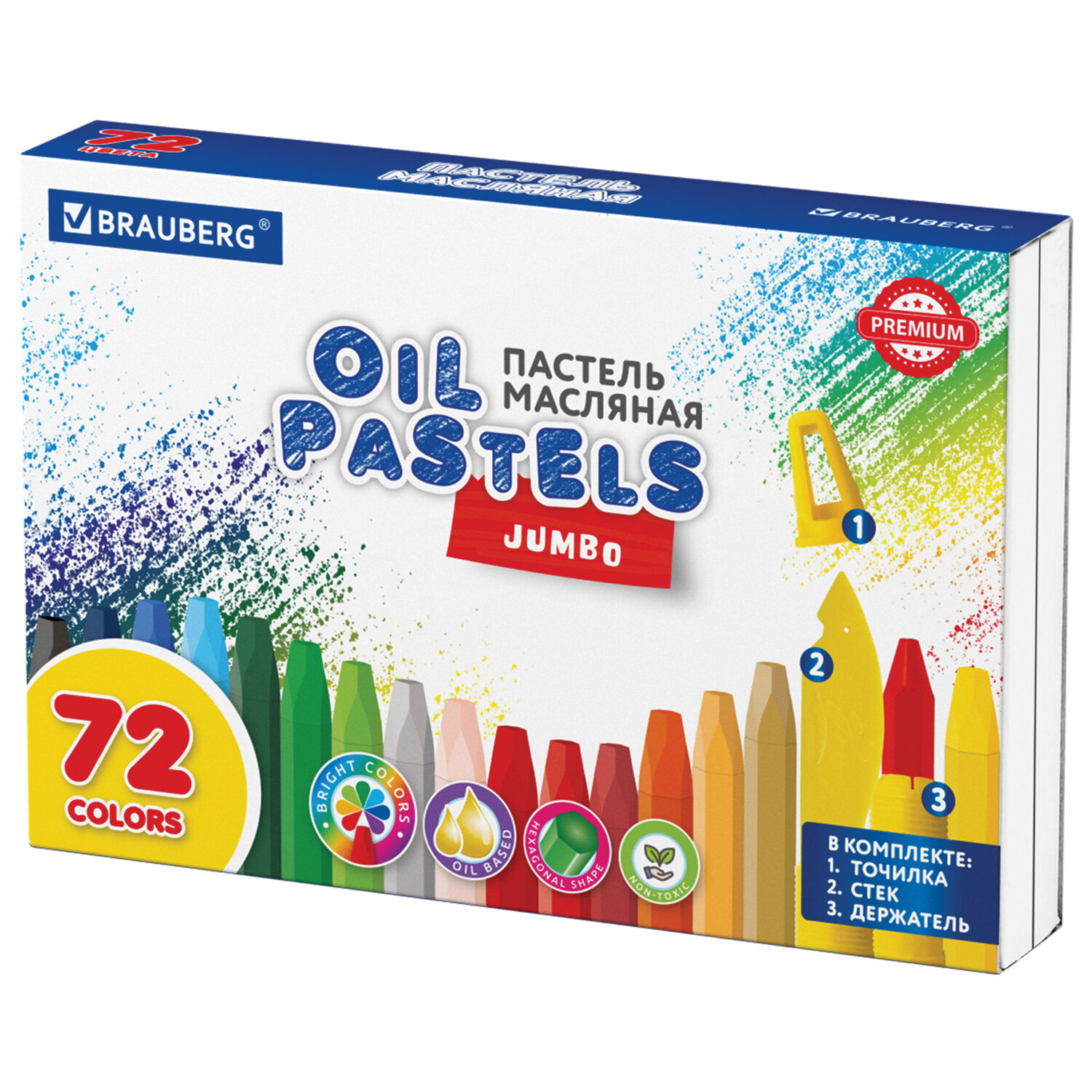Пастель масляная восковые мелки утолщенные 72 цвета с точилкой, держателем и стеком, BRAUBERG PREMIUM Код товара: 272715 635,46 ₽ Купить Производитель:BRAUBERG Масляная пастель BRAUBERG PREMIUM порадует как юных, так и опытных художников. Шестигранная форма удобно ложится в руку, а широкий выбор ярких цветов и мягкое письмо не оставят равнодушным ни одного опытного художника. Палитра состоит из 72 ярких и насыщенных цветов, в комплекте стек, держатель и точилка для мелка. Полностью безопасны в использовании, не токсичны и не имеют резкого запаха. Благодаря своему составу мелки пишут мягко и ярко. Утолщенная шестигранная форма корпуса и диаметр 11 мм делают их еще более удобными для тренировки руки. Каждый мелок завернут в бумажную этикетку, что предохраняет от загрязнений, снижает скольжение, увеличивает прочность. Восковые мелки находятся на пластиковой подложке, которую можно вытащить, что поможет при выборе цвета. Дополнительно упакованы в короб с термоусадкой. Надежная упаковка защитит мелки от повреждений.Производство: КитайКоличество цветов: 72Серия: PREMIUMТип пастели: маслянаяОсобенности: утолщенныеСечение: шестигранноеДиаметр: 11 ммБумажная манжетка: даОснова: масляннаяУпаковка: картонная коробкаВес: 944 грРазмер упаковки: 5.1 × 28 × 19.3 смОбъём: 0.0037 м3Промежуточная упаковка: 6 штТранспортная упаковка: 24 штШтрих-код: 4606224440460 Сертификат-1.jpg Сертификат-2.jpg Сертификат-3.jpg