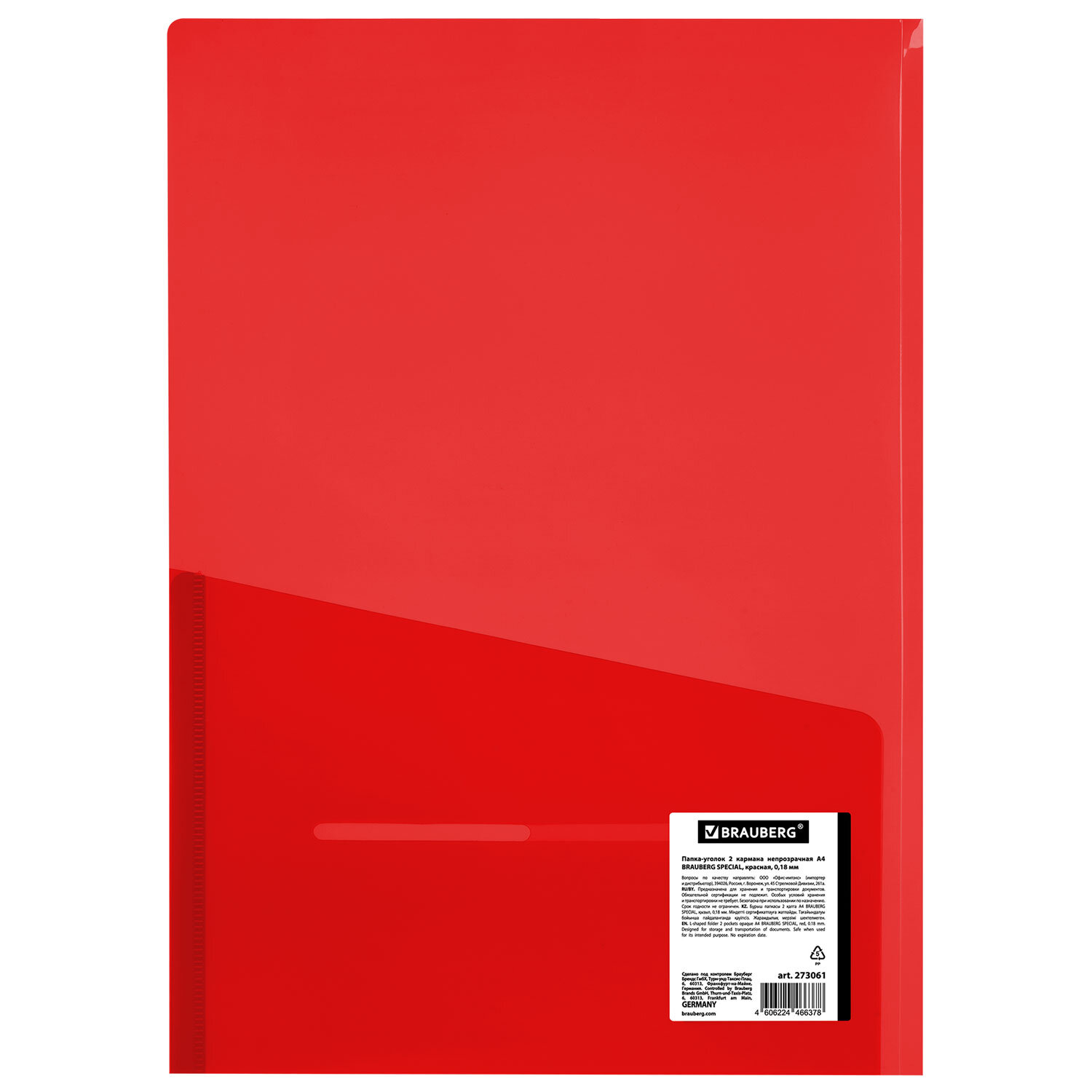 Папка-уголок 2 кармана, непрозрачная, А4, BRAUBERG "SPECIAL", красная, 0,18 мм Код товара: 273061 51,43 ₽ Купить Производитель:BRAUBERG Папка-уголок BRAUBERG предназначена для хранения и транспортировки документов и является незаменимым атрибутом для студента, школьника или офисного работника. Папка формата А4 выполнена из высококачественного полипропилена плотностью 180 мкм. Она предотвращает смятие, загрязнение или намокание бумаг, а благодаря внутреннему карману позволяет хранить в 2 раза больше бумаг. Непрозрачный материал способен скрыть содержимое от посторонних глаз. Данная папка заметно выделяется среди других благодаря насыщенному красному цвету.Производство: КитайВид папки: непрозрачнаяТолщина пластика: 180 мкмФормат: А4Наличие внутренних карманов: даКоличество отделений: 2Количество в комплекте: 1 шт.Серия: SpecialЦвет: красныйВысота: 310 ммШирина: 220 ммВес: 34 грРазмер упаковки: 0.2 × 31 × 22.8 смОбъём: 0.0001 м3Промежуточная упаковка: 15 штТранспортная упаковка: 120 штШтрих-код: 4606224466378 Файлы Сертификат-1.jpg Сертификат-2.jpg Сертификат-3.jpg Сертификат-4.jpg Сертификат-5.jpg Сертификат-6.jpg Сертификат-7.jpg Сертификат-8.jpg Сертификат-9.jpg Сертификат-10.jpg Сертификат-11.jpg Сертификат-12.jpg Сертификат-13.jpg Сертификат-14.jpg Сертификат-15.jpg Сертификат-16.jpg Сертификат-17.jpg Сертификат-18.jpg Сертификат-19.jpg Сертификат-20.jpg Сертификат-21.jpg Сертификат-22.jpg Сертификат-23.jpg Сертификат-24.jpg Сертификат-25.jpg Сертификат-26.jpg