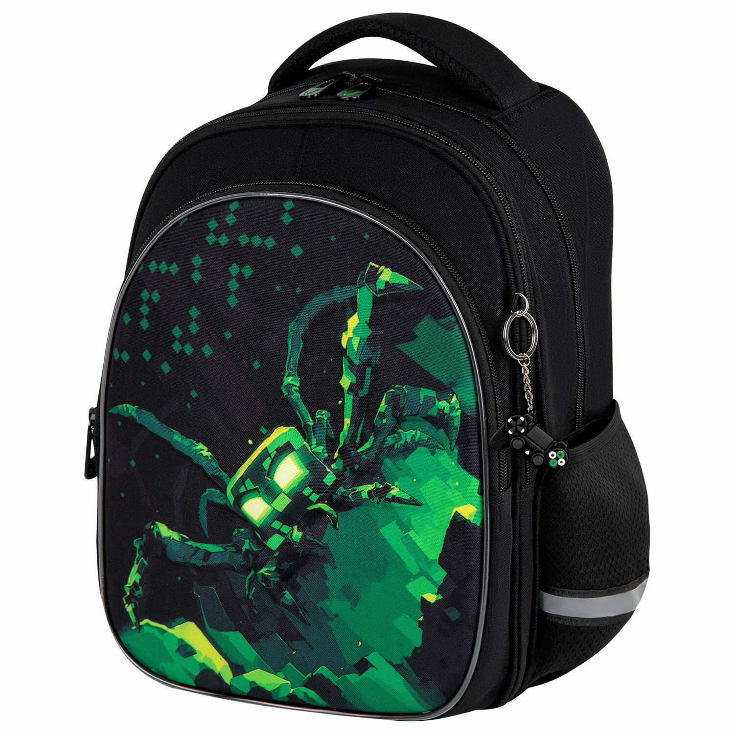 Рюкзак BRAUBERG OPTIMA, 2 отделения, с брелоком, "Ominous spider", 3D-панель, 36х27х18 см Код товара: 273160 2 446,55 ₽ Купить Производитель:BRAUBERG Серия рюкзаков OPTIMA предназначена для учеников начальной школы. Передний карман рюкзака изготовлен из легкого формоустойчивого материала EVА. Благодаря усиленному дну рюкзак отлично держит форму и защищает содержимое от деформации. Основными преимуществами рюкзака являются вместительность, компактный размер, эргономичность и меньший вес по сравнению с жесткокаркасным ранцем. Дизайн передней панели рюкзака дополнен уникальным 3D-эффектом – выпуклым рельефным изображением паука! Рюкзак изготовлен из высококачественной влагоотталкивающей нейлоновой ткани – кордура, в которой за счёт особой структуры нити достигнута четырёхкратная стойкость к истиранию по сравнению с обычным нейлоном. Ткань легко чистится. Декоративный брелок-подвеска в подарок! Широкие дышащие лямки имеют S-образную форму, что обеспечивает комфорт при ношении рюкзака. Удобная мягкая вентилируемая спинка с воздушными спонжевыми панелями разработана с учётом анатомических особенностей детей младшего и среднего школьного возраста. В процессе эксплуатации равномерное распределение нагрузки поможет сохранить правильную осанку. В основном отделении рюкзака можно легко разместить учебники и тетради формата А4+, воспользоваться дополнительным карманом. Также в основном отделении находится именная карточка школьника. Фронтальное отделение вмещает тетради и учебники формата А5; внутри расположены органайзер для канцтоваров, карман для телефона и отделение из сетки на молнии. Такая организация пространства поможет сохранить принадлежности в порядке и приучить ребёнка к аккуратности. Рюкзак легко открывать и закрывать одной рукой с любой стороны – каждое отделение оснащено долговечной реверсивной молнией с двумя металлическими бегунками. В боковых карманах на резинке можно разместить бутылочку, термос или зонт. Нести рюкзак будет удобно не только на плечах, но и в руке благодаря прочной уплотнённой ручке. Также имеется специальная петелька из плетёной нейлоновой нити для подвешивания рюкзака на крючок парты. Светоотражающие элементы расположены спереди, на торцах и на лямках. Они обеспечивают безопасность пользователя в тёмное время суток. В основном отделении рюкзака предусмотрено жёсткое откидное дно на липучке, которое усиливает каркас рюкзака. Яркая этикетка на передней стороне рюкзака делает его более заметным на полке магазина, а информация на ней отражает ключевые потребительские свойства, помогая покупателю принять решение о покупке. Рюкзак упакован в плотный ПЭТ-пакет с замком Zip Lock, который сохраняет качество и товарный вид изделия при хранении и транспортировке.Производство: КитайПол ребенка: для мальчиковСерия: OPTIMAДизайн: Ominous spiderВозрастная группа: 7-10 летОбъем: 15 лТип спинки: анатомическая, вентилируемая, формоустойчиваяКоличество отделений: 2Перегородка в основном отделении: даКоличество карманов: 3 шт.Фронтальный карман: даБоковые карманы: даСветоотражающие элементы: даНаличие ручки для переноса: даРегулируемые лямки: даВентилируемые лямки: даМатериал спинки: спонжевые панели анатомической формыМатериал дна: плотная тканьВнутренний органайзер: даПерсонализация: именная карточкаЦвет: черныйУзор: паукВ