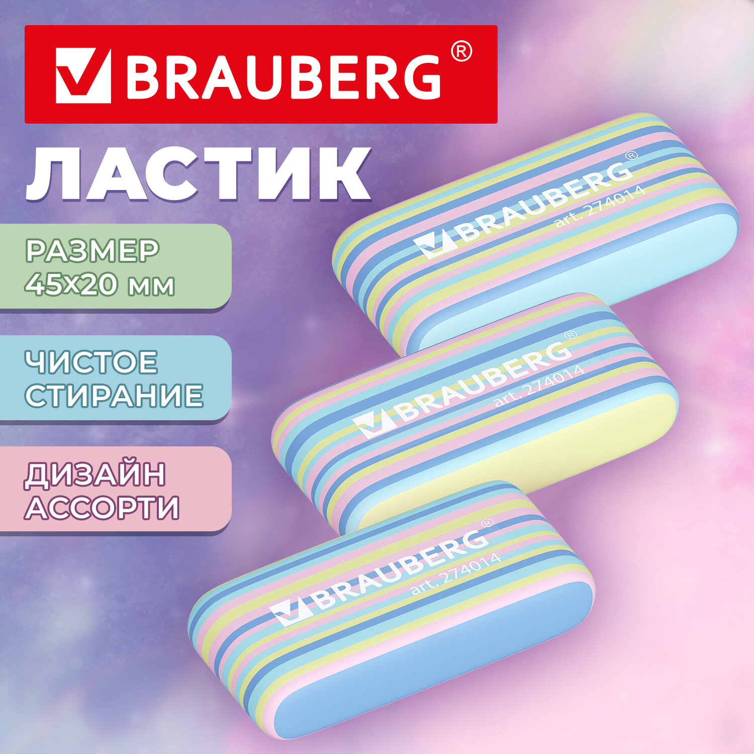 Ластик BRAUBERG "PASTEL STRIPES", 45х24х10 мм, пастельные цвета ассорти Код товара: 274014 40,33 ₽ Купить Производитель:BRAUBERG Ластик BRAUBERG "PASTEL STRIPES" предназначен для удаления надписей, сделанных чернографитными карандашами. Мягкий ластик прямоугольной формы со скругленными краями удобно лежит в руке. Представлен в трёх вариантах полосатого принта. Размер ластика – 45х24х10 мм. Упакован в прозрачный рукав. Универсальный дизайн и высокое качество делают его незаменимым помощником школьника и студента, художника, сотрудника офиса.Производство: КитайКоличество в упаковке: 1 шт.Материал: термопластичная резинаФорма: прямоугольнаяЦвет: пастельный ассортиСерия: PASTEL STRIPESНе оставляет бумажной пыли: даРазмер: 45х24х10 ммИндивидуальная упаковка: даУпаковка: дисплейВес: 16 грРазмер упаковки: 0.9 × 4.4 × 2.4 смПромежуточная упаковка: 24 штТранспортная упаковка: 288 штШтрих-код: 4606224512426 Файлы Сертификат-1.jpg Сертификат-2.jpg
