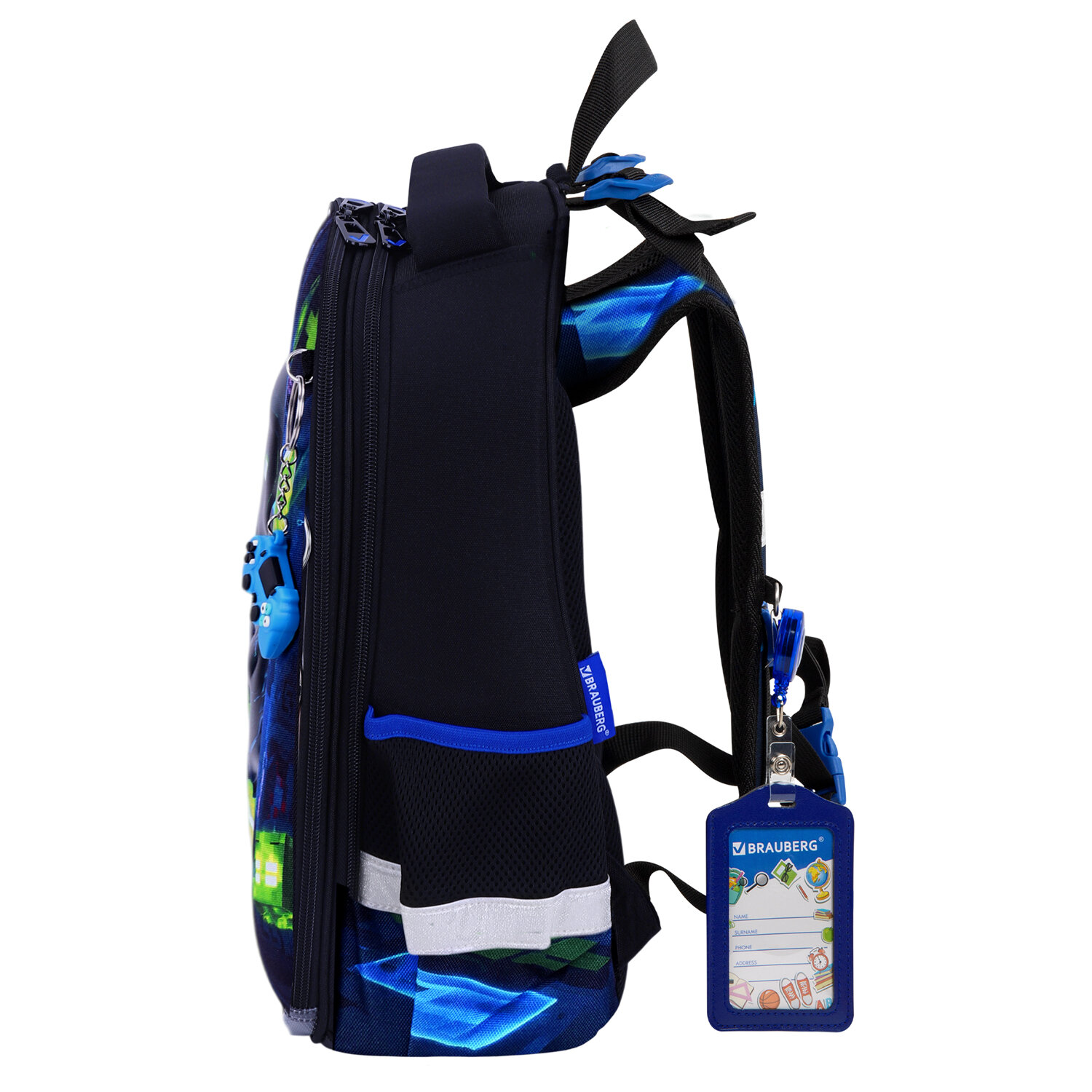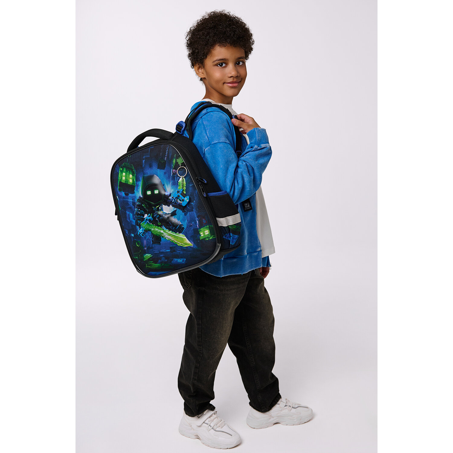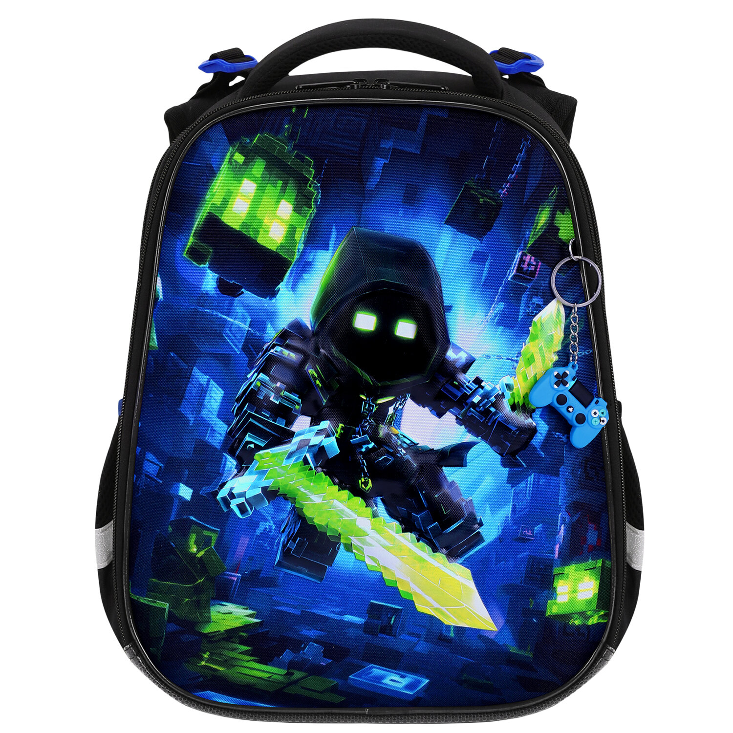 На передней панели ранца реализован уникальный 3D-эффект – выпуклое рельефное изображение воина из компьютерной игры! Сочетание ярких контрастных цветов привлекает внимание, а оригинальный брелок в форме геймпада дополняет дизайн ранца.