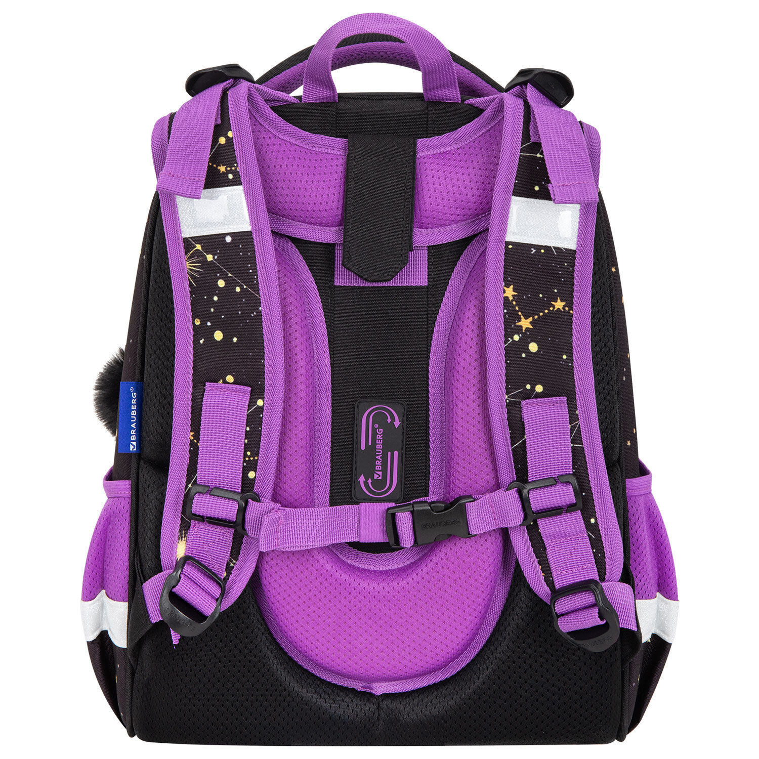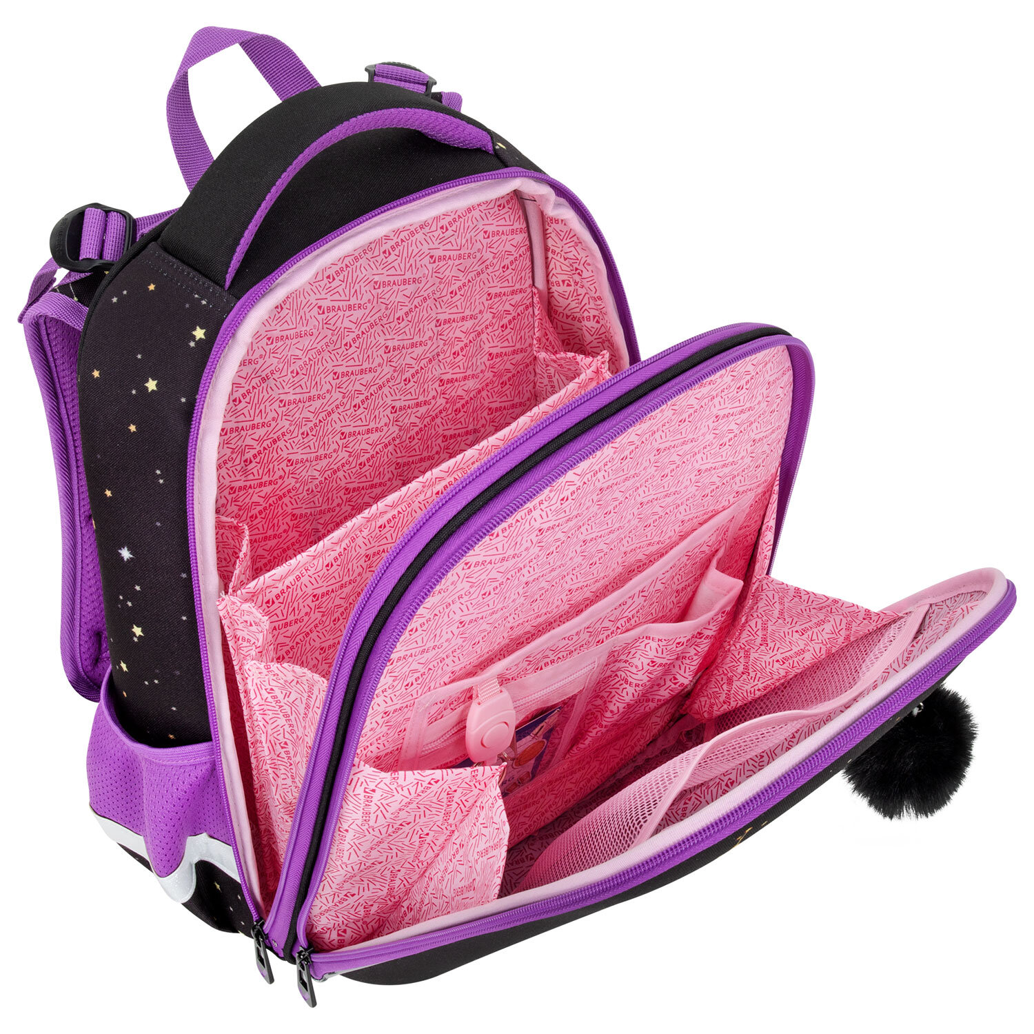 Ранец BRAUBERG ORIGINAL, 2 отделения, с брелком, "Galactic cat", 38х29х16 см Код товара: 274403 3 751,24 ₽ Купить Производитель:BRAUBERG Ранец BRAUBERG серии ORIGINAL – самой популярной капсульной формы среди ранцев. Изготовлен из легкого, формоустойчивого, экологичного материала EVA с качественной и яркой печатью. В комплекте с ранцем поставляется брелок-подвеска. Ранцы BRAUBERG ORIGINAL протестированы НИИ гигиены и охраны здоровья детей и подростков ФГАУ "Национальный медицинский исследовательский центр здоровья детей". В рамках проведенных исследований* было установлено, что конструкции и материалы ученических ранцев соответствуют современным эргономическим требованиям и способствуют формированию здоровой осанки у школьников. Рисунок на передней панели ранца выполнен с применением ярких контрастных цветов, а пушистый брелок-подвеска дополняет дизайн ранца. Ранец покрыт высококачественной влагоотталкивающей нейлоновой тканью – кордура, в которой за счёт особой структуры нити достигнута четырёхкратная стойкость к истиранию по сравнению с обычным нейлоном. Кроме того, эта ткань легко чистится. Регулируемые по длине и высоте лямки можно оптимально подогнать под комплекцию ребенка, чтобы ранец носился с комфортом, несмотря на зачастую избыточный вес содержимого: учебников, тетрадей, канцелярских принадлежностей. Регулировка позволит использовать ранец не один год. Съёмные нагрудные ремешки помогают равномерно распределять нагрузку на спину. Удобная мягкая вентилируемая спинка с воздушными спонжевыми панелями разработана с учетом анатомических особенностей детей младшего школьного возраста. При правильной регулировке ранец будет практически не ощущаться на плечах и не будет доставлять дискомфорт при носке. В процессе эксплуатации равномерное распределение нагрузки позволит сохранить правильную осанку. В основном отделении ранца можно легко и быстро разместить учебники. Внутри фронтального отделения находится органайзер для канцтоваров, именная карточка, карман для телефона и большое отделение из сетки. Такая организация пространства поможет держать принадлежности в сохранности и приучить ребенка к порядку. Ранец широко раскрывается, повышая удобство использования, а за счёт боковых перегородок содержимое не выскользнет из ранца. Ранец легко открывать и закрывать одной рукой с любой стороны – каждое отделение имеет долговечную реверсивную молнию с двумя металлическими бегунками. Нести ранец будет удобно не только на плечах, но и в руке за прочную уплотненную ручку. Также имеется специальная петелька из плетеной нейлоновой нити для подвешивания на крючок парты. Модель имеет боковые карманы на резинке, в которых можно разместить бутылочку, термос или зонт. Светоотражающие элементы ранца расположены спереди, на торцах и на лямках. Они необходимы для безопасности ребенка в темное время суток. Декоративный брелок-подвеска в подарок. Яркая этикетка расположена на передней стороне ранца, делая его более заметным на полке магазина. Информация на ней отражает основные потребительские свойства, помогая покупателю принять решение о покупке. Ранец упакован в плотный ПЭТ-пакет с замком Zip Lock, который сохранит качество и товарный вид изделия при хранении и транспортировке. Рюкзаки и ранцы BRAUBERG – это высокое качество и проработанные до мелочей моде