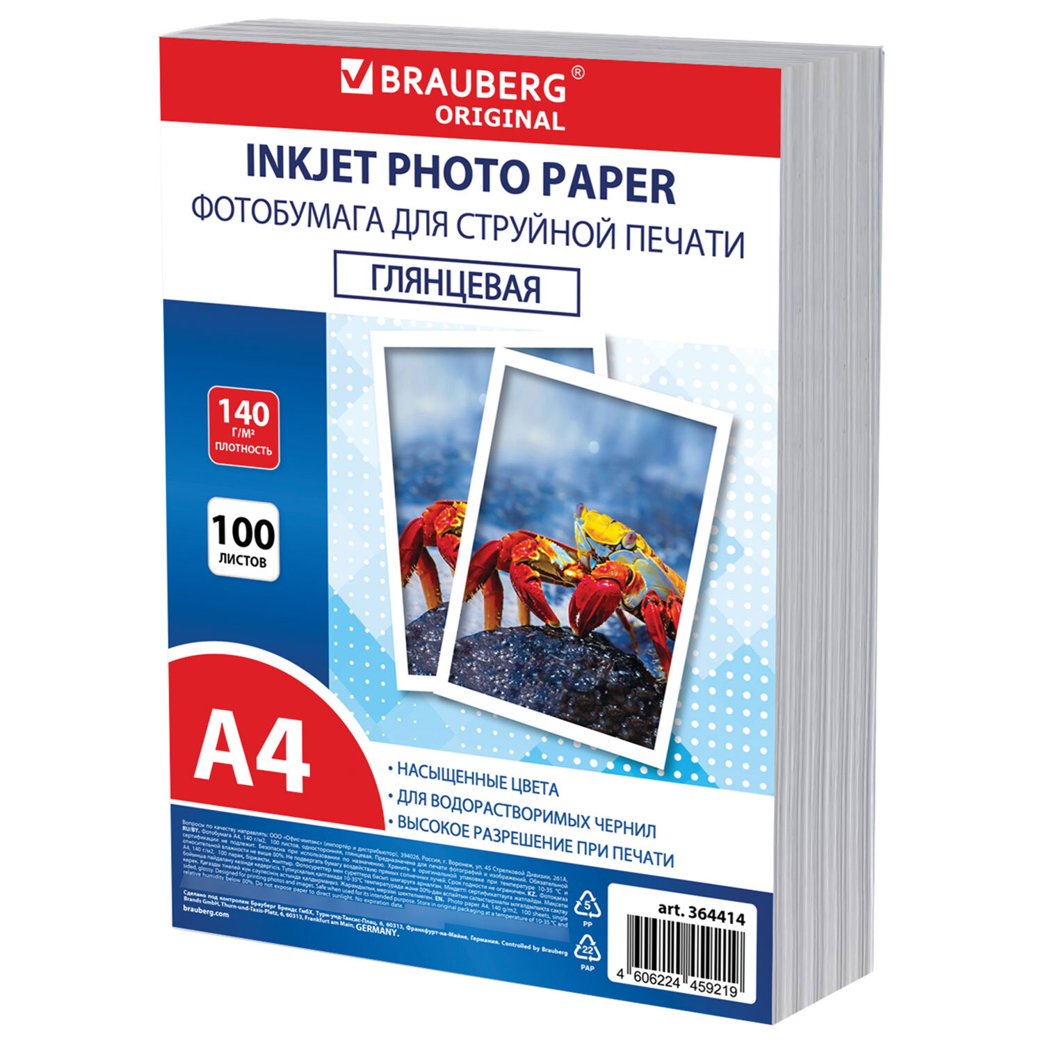 Фотобумага глянцевая, А4, 140 г/м2, односторонняя, 100 листов, ПАКЕТ, BRAUBERG ORIGINAL Код товара: 364414 599,65 ₽ Купить Производитель:BRAUBERG Глянцевая односторонняя фотобумага BRAUBERG подходит для всех типов струйных принтеров. Незаменима для печати ярких фотореалистичных изображений. Передает яркие, насыщенные цвета со множеством оттенков. Имеет формат А4 и плотность 140 г/м2, что исключает просвечивание изображения. Гладкая поверхность обеспечивает превосходное качество, а особый состав – идеальную цветопередачу. Печать возможна только водорастворимыми чернилами. Поставляется по 100 листов в плотном пузырчатом пакете, защищающем бумагу от механических повреждений при доставке.Производство: КитайФормат: A4Тип поверхности: глянцеваяПлотность: 140 г/м2Серия: ORIGINAL PLUSТехнология печати: для струйной печатиКоличество листов в упаковке: 100 шт.Вес: 973 грРазмер упаковки: 2.1 × 30.4 × 23.3 смОбъём: 0.0023 м3Промежуточная упаковка: 14 штТранспортная упаковка: 14 штШтрих-код: 4606224459219 Файлы Сертификат-1.jpg Сертификат-2.jpg Сертификат-3.jpg Сертификат-4.jpg Сертификат-5.jpg Сертификат-6.jpg Сертификат-7.jpg Сертификат-8.jpg Сертификат-9.jpg Сертификат-10.jpg Сертификат-11.jpg Сертификат-12.jpg Сертификат-13.jpg Сертификат-14.jpg Сертификат-15.jpg Сертификат-16.jpg Сертификат-17.jpg Сертификат-18.jpg Сертификат-19.jpg Сертификат-20.jpg Сертификат-21.jpg Сертификат-22.jpg Сертификат-23.jpg Сертификат-24.jpg Сертификат-25.jpg Сертификат-26.jpg