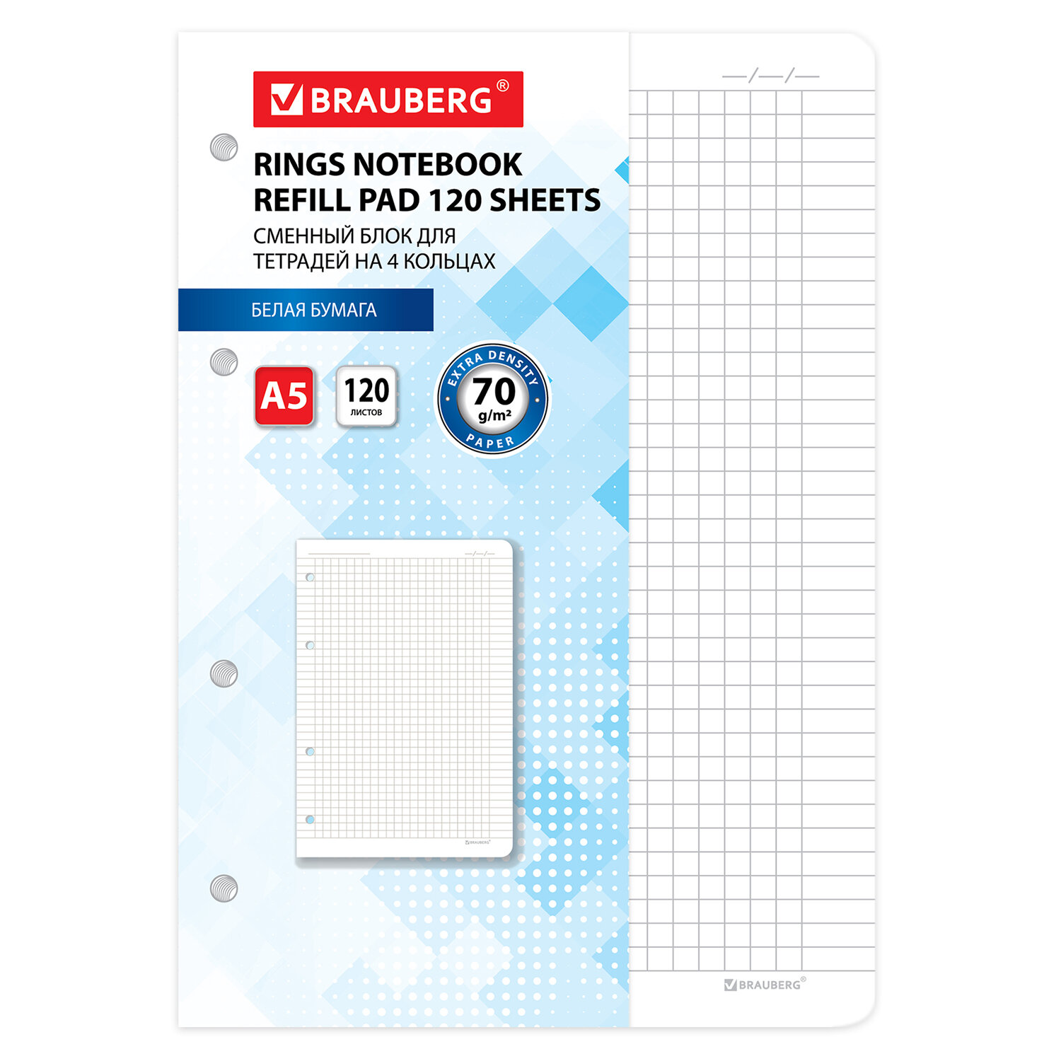 Сменный блок для тетради на кольцах А5 120 л., BRAUBERG, ПОВЫШЕННОЙ ПЛОТНОСТИ, белый Код товара: 403638 451,75 ₽ Купить Производитель:BRAUBERG Сменный блок BRAUBERG предназначен для письма гелевыми, шариковыми, капиллярными и перьевыми ручками. Универсальная перфорация на 4 отверстия. Сменный блок подходит для всех тетрадей на 4 кольцах формата А5. Блок состоит из 120 листов офсетной бумаги белого цвета повышенной плотности 70 г/м2. Линовка – клетка с полями.Производство: КитайФормат: А5Тип товара: сменный блокОбщее количество листов: 120Вид бумаги: офсетПлотность бумаги: 70 г/м2Вид линовки: клеткаБелизна: 100 %Наличие полей: даЦвет сменного блока: белый матовыйТермоупаковка: даВес: 278 грРазмер упаковки: 1.3 × 21 × 14.5 смОбъём: 0.0005 м3Промежуточная упаковка: 30 штТранспортная упаковка: 30 штШтрих-код: 4606224275482 Сертификат-1.jpg Сертификат-2.jpg Сертификат-3.jpg