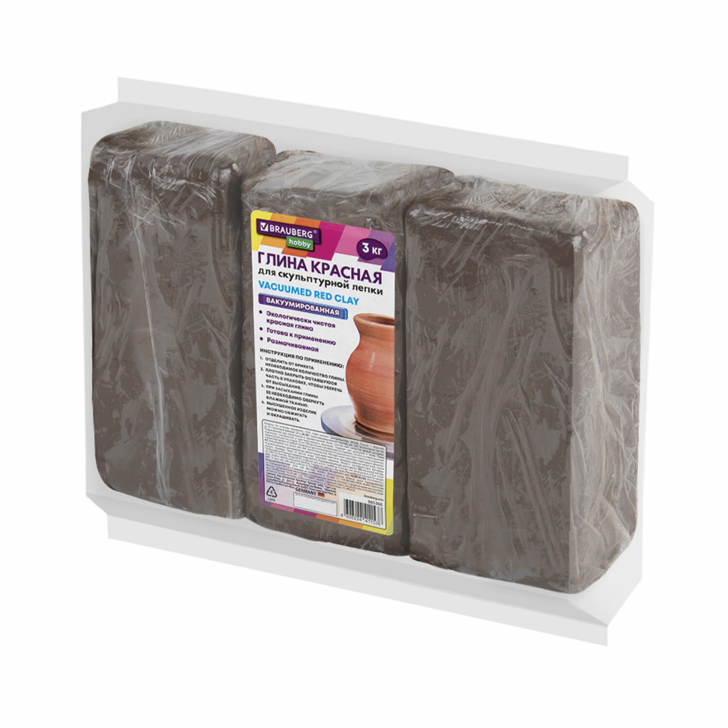 Глина для лепки красная, 3 кг, вакуумированная, готовая, размачиваемая, BRAUBERG HOBBY Код товара: 665360 257,55 ₽ Купить Производитель:BRAUBERG HOBBY Экологически чистая красная глина BRAUBERG HOBBY идеально подойдет для скульптурной лепки, гончарного дела, набивки, формовки. Способствует развитию мелкой моторики, творческих способностей и пространственного мышления. Безопасный и экологичный продукт, не вызывает аллергической реакции. Благодаря самозатвердевающему свойству глины изделия из нее сохнут самостоятельно без участия высоких температур. Для придания изделию стабильности рекомендуется обжиг. Обожженные изделия можно использовать в бытовых целях (например, в качестве посуды). Глина в красном цвете является наиболее востребованной. Вес - 3 кг. Хранить неиспользуемую часть глины в полиэтилене или обернуть мокрой тканью для предотвращения ее засыхания. В случае засыхания глину также необходимо обернуть мокрой тканью до момента ее размягчения.Производство: РоссияКоличество цветов в наборе: 1 шт.Серия: Глина классическаяТип: вакуумированнаяВид: мягкийОтвердевающий: даДля запекания: даЦвет: красныйУпаковка: полиэтиленВес: 3000 гРазмер упаковки: 5 × 22.6 × 14.4 смОбъём: 0.0021 м3Промежуточная упаковка: 6 штТранспортная упаковка: 6 штШтрих-код: 4606224411538 Файлы Сертификат-1.jpg Сертификат-2.jpg Сертификат-3.jpg Сертификат-4.jpg Сертификат-5.jpg Сертификат-6.jpg Сертификат-7.jpg Сертификат-8.jpg Сертификат-9.jpg Сертификат-10.jpg Сертификат-11.jpg Сертификат-12.jpg Сертификат-13.jpg Сертификат-14.jpg Сертификат-15.jpg Сертификат-16.jpg Сертификат-17.jpg Сертификат-18.jpg Сертификат-19.jpg Сертификат-20.jpg Сертификат-21.jpg Сертификат-22.jpg Сертификат-23.jpg Сертификат-24.jpg Сертификат-25.jpg Сертификат-26.jpg
