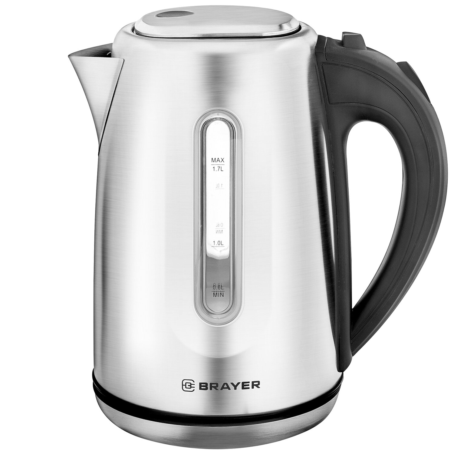 Чайник BRAYER BR1014, 1,7 л, 2200 Вт, закрытый нагревательный элемент, сталь Код товара: 456057 2 881,01 ₽ Купить Производитель:BRAYER Чайник BRAYER BR1014 – это стильный и мощный помощник на вашей кухне, который сочетает в себе современный дизайн и передовые технологии. Корпус выполнен из высококачественной нержавеющей стали, что придаёт ему элегантный вид и обеспечивает долговечность. Мощность 2200 Вт позволяет вскипятить воду всего за несколько минут, а объём 1,7 литра идеально подходит для семьи или компании гостей. Чайник оснащён внутренней синей подсветкой, которая создаёт уютную атмосферу и делает процесс кипячения воды ещё более приятным. Встроенный моющийся фильтр защищает от попадания накипи в напиток, обеспечивая чистоту и приятный вкус воды. Индикатор уровня воды помогает легко контролировать количество жидкости, а противоскользящее основание добавляет устойчивости. Безопасность использования гарантируется функцией автоматического отключения при закипании и защитой от включения без воды. Это делает чайник BRAYER BR1014 идеальным выбором для повседневного использования. Производитель оставляет за собой право без предварительного уведомления вносить изменения в технические характеристики, комплектацию и конструкцию, не ухудшающие эксплуатационные характеристики изделия.Производство: КитайОбъем: 1.7 лМощность: 2200 ВтМатериал корпуса: нержавеющая стальВид нагревательного элемента: закрытыйАвтоотключение при закипании: даСерия: BR1014Отключение при отсутствии воды: даИндикатор включения: даИндикация уровня воды: даВращение на 360°: даПодсветка: даФильтр от накипи: даДлина шнура: 0.66 мЦвет корпуса: стальнойШирина: 210 ммВысота: 232 ммГлубина: 172 ммВес: 1.2 кгРазмер упаковки: 17.1 × 23.3 × 21.5 смОбъём: 0.01 м3Промежуточная упаковка: 8 штТранспортная упаковка: 8 штШтрих-код: 9120099331524 Файлы Приложение-1.pdf Сертификат-1.jpg Сертификат-2.jpg Сертификат-3.jpg Сертификат-4.jpg Сертификат-5.jpg Сертификат-6.jpg Сертификат-7.jpg Сертификат-8.jpg Сертификат-9.jpg