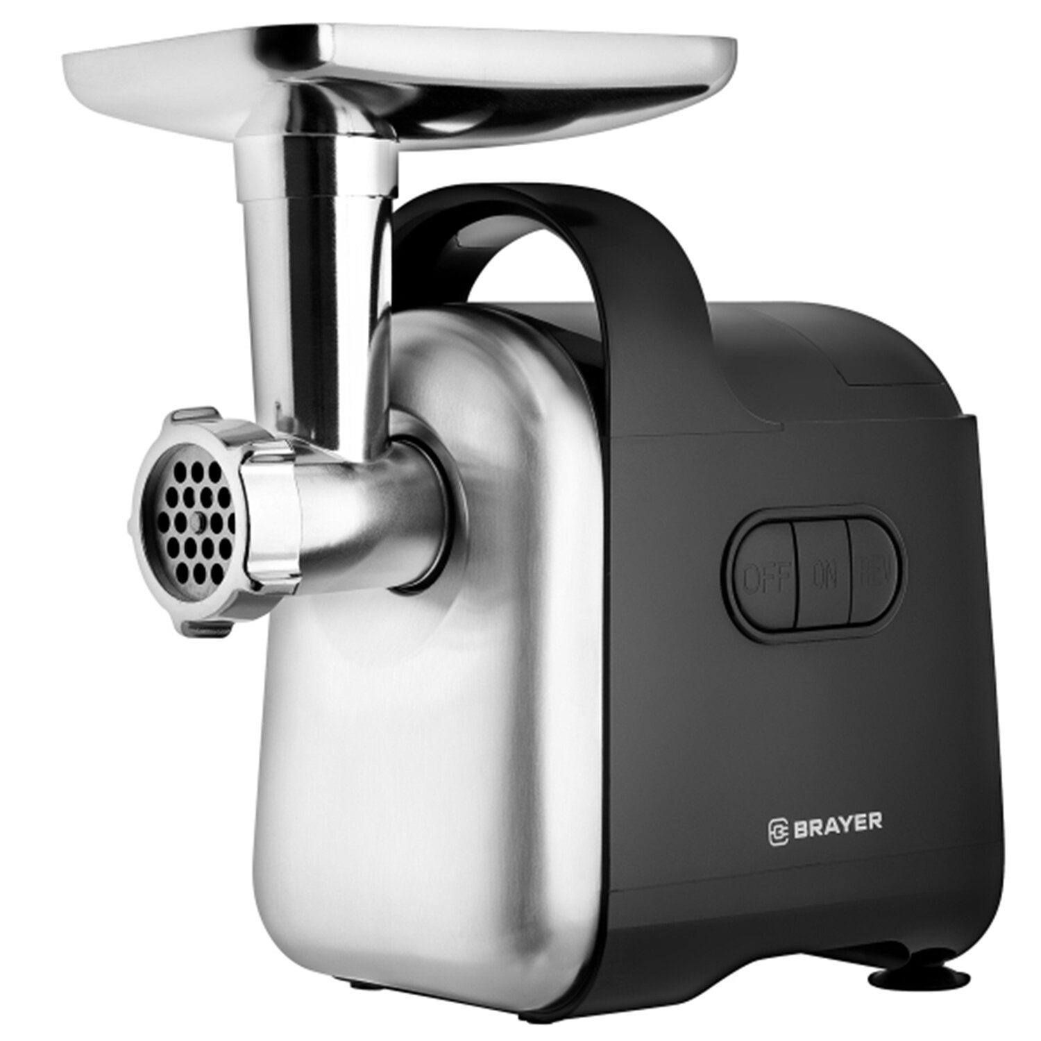 Мясорубка BRAYER BR1602, 2000 Вт, производительность 2 кг/мин, металлический шнек, реверс, пластик, черная/серебро Код товара: 456094 7 619,12 ₽ Купить Производитель:BRAYER Мясорубка BRAYER BR1602 мощностью 2000 Вт сможет за 1 минуту превратить в фарш до 2 кг мяса. Результат порадует качеством и быстротой. Мясорубка BRAYER BR1602 – это мощный и многофункциональный прибор, который станет настоящим помощником на вашей кухне. Её максимальная мощность 2000 Вт и производительность 2 кг/мин позволяют быстро и легко справляться с любыми видами продуктов, будь то мясо, овощи или рыба. В комплекте идут два диска из нержавеющей стали с разным диаметром отверстий (5 мм и 7 мм), что делает мясорубку универсальной для приготовления фарша для котлет, тефтелей, пельменей и других блюд. Мясорубка оснащена функцией "Реверс", которая помогает справиться с застрявшими кусочками продуктов, обеспечивая бесперебойную работу. В комплект также входят насадки для тёрки, резки, шинковки, приготовления колбас и "Кеббе", что значительно расширяет возможности прибора. Безопасность использования гарантируется защитой от перегрева и перегрузки двигателя. Прорезиненные противоскользящие ножки добавляют устойчивости, а отсек для хранения дисков и насадок делает прибор ещё более удобным в эксплуатации. Производитель оставляет за собой право без предварительного уведомления вносить изменения в технические характеристики, комплектацию и конструкцию, не ухудшающие эксплуатационные характеристики изделия.Производство: КитайМаксимальная мощность (при блокировке вала): 2000 ВтПроизводительность: 2 кг/минМощность: 300 ВтМаксимальное время непрерывной работы: 7 минЗащита двигателя от перегрузки: даСистема реверса: даТип управления: электро-механическийКоличество насадок: 7 шт.Отсек для насадок: даМатериал ножей: нержавеющая стальПрорезиненные ножки: даНасадки в комплекте: для кеббе, для приготовления колбас, для шинковки, насадка-тёркаСерия: BR160Материал корпуса: пластикЦвет: черныйВысота: 315 ммШирина: 405 ммГлубина: 210 ммВес: 4.8 кгРазмер упаковки: 20.9 × 41 × 31.5 смОбъём: 0.0311 м3Промежуточная упаковка: 2 штТранспортная упаковка: 2 штШтрих-код: 9120099331746 Файлы Приложение-1.pdf Сертификат-1.jpg Сертификат-2.jpg Сертификат-3.jpg Сертификат-4.jpg Сертификат-5.jpg Сертификат-6.jpg Сертификат-7.jpg Сертификат-8.jpg Сертификат-9.jpg Сертификат-10.jpg