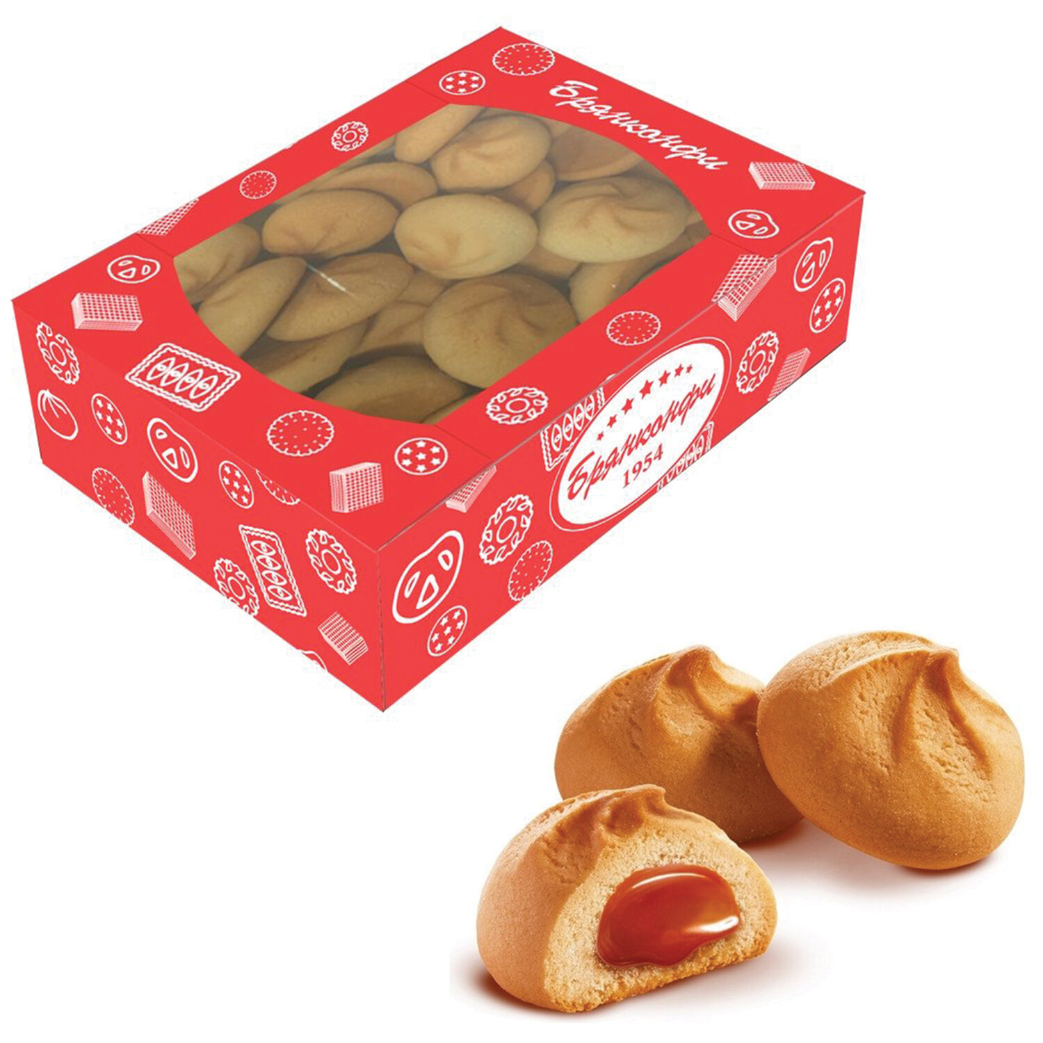Печенье БРЯНКОНФИ с вареной сгущенкой, 500 г, картонная коробка Код товара: 622625 301,8 ₽ Купить Производитель:БРЯНКОНФИ Печенье БРЯНКОНФИ с вареной сгущенкой - это сдобное печенье из ванильного теста с вкуснейшей начинкой из вареной сгущенки. Пищевая ценность на 100 г продукта: белки - 6,1 г, жиры - 18,1 г, углеводы - 65,1 г. Энергетическая ценность на 100 г продукта: 1880 кДж/448 ккал. Хранить в чистых, сухих, хорошо вентилируемых помещениях, не имеющих специфических запахов, не зараженных вредителями, при температуре от 13 до 23°С и относительной влажности воздуха не более 75%. Не подвергать воздействию прямого солнечного света.Производство: РоссияТип товара: печеньеВес нетто: 500 гВид: сдобноеТип вкуса: с вареной сгущенкойСерия: БРЯНКОНФИСоответствует требованиям ГОСТа: нетТип упаковки: картонная коробкаСрок годности: 9 мес.Фирма-производитель: Брянконфи АОСрок годности: 9 месВес: 557 грРазмер упаковки: 8.3 × 22.8 × 15.3 смОбъём: 0.0029 м3Промежуточная упаковка: 1 штТранспортная упаковка: 1 штШтрих-код: 4601063003890 Сертификат-1.jpg Сертификат-2.jpg Сертификат-3.jpg