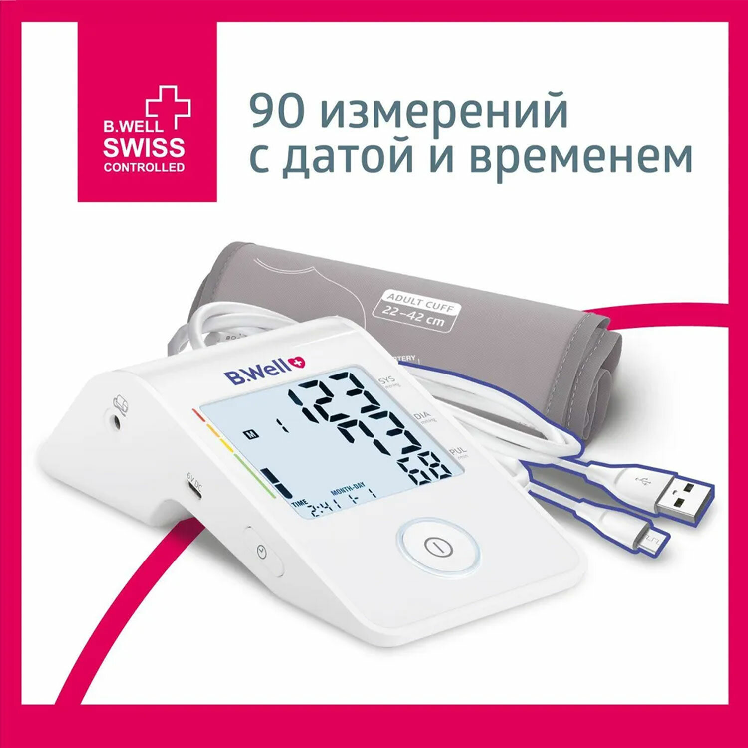 Тонометр B.WELL MED-53cord, манжета 22-42 см, автоматический, на плечо, USB-кабель, без адаптера Код товара: 631362 3 855,4 ₽ Купить Производитель:B.WELL Тонометр B.WELL MED-53 – простой и функциональный прибор для бытового и профессионального применения с удобным управлением, понятным даже пожилым людям. Автоматический тонометр B.WELLMED-53 – это прибор для современных людей, которым важна точность и комфорт в использовании. Современная технология Intellect Active обеспечивает быстрое, точное и совершенно безболезненное измерение артериального давления. Тонометр MED-53 проводит измерение на этапе нагнетания воздуха в манжету, подстраивается под каждого пользователя, определяя индивидуальный уровень накачки манжеты. Тонометр B.WELL MED-53 оснащен индикатором аритмии, который оповещает о нарушениях нормальной частоты или периодичности сердечных сокращений во время измерения, что поможет выявить нарушение сердечного ритма на ранней стадии. Точный результат зависит не только от надежного тонометра, но и от корректного расположения манжеты и техники измерения. Тонометр B.WELL подскажет, правильно ли зафиксирована манжета. При наличии отклонений от нормы тонометр выдаст сигнал об ошибке. Манжета B.WELL имеет анатомическую конусную форму для плотного прилегания и точного измерения. Манжету легко надеть самостоятельно. Универсальный размер манжеты M-L для обхвата руки 22-42 см подходит для людей разной комплекции. MED-53 не только точный, но и стильный тонометр для контроля давления. Прибор имеет современный продуманный дизайн, большой дисплей при компактных размерах корпуса. Благодаря подсветке дисплея можно удобно провести измерение при любом освещении. В комплекте прибора есть практичная сумочка: тонометр удобно хранить или взять с собой в поездку. Тонометр работает от 4 батареек ААА или через разъем питания micro-USB (USB -кабель поставляется в комплекте, адаптер в комплект не входит). Вы можете использовать ваш сертифицированный адаптер от телефона или планшета для работы тонометра. Производитель оставляет за собой право без предварительного уведомления вносить изменения в технические характеристики, комплектацию и конструкцию, не ухудшающие эксплуатационные характеристики изделия.Производство: КитайТип тонометра: АвтоматическийСерия: MED-53Фиксация манжеты: на плечоМанжета min: 22 смМанжета max: 42 смОбъем памяти: 90 измеренийСпособ сброса воздуха: АвтоматическийДиапазон измерения давления, мм рт. ст.: 0-300Погрешность измерения давления: ±3 мм рт. ст.Диапазон измерения пульса, уд/мин: 40-200Погрешность измерения пульса: ±5%Установка времени и даты: даПитание от батареек: даТип элемента питания: ААА х 4Питание от сети: даЧехол для хранения: даМатериал корпуса: пластикВысота: 4.8 смШирина: 8.5 смГлубина: 17Вес нетто: 0.275 кгВес: 704 грРазмер упаковки: 9.8 × 17.9 × 11.9 смОбъём: 0.0027 м3Промежуточная упаковка: 20 штТранспортная упаковка: 20 штШтрих-код: 7640156397062 Файлы Приложение-1.pdf Сертификат-1.jpg Сертификат-2.jpg Сертификат-3.jpg Сертификат-4.jpg Сертификат-5.jpg Сертификат-6.jpg Сертификат-7.jpg