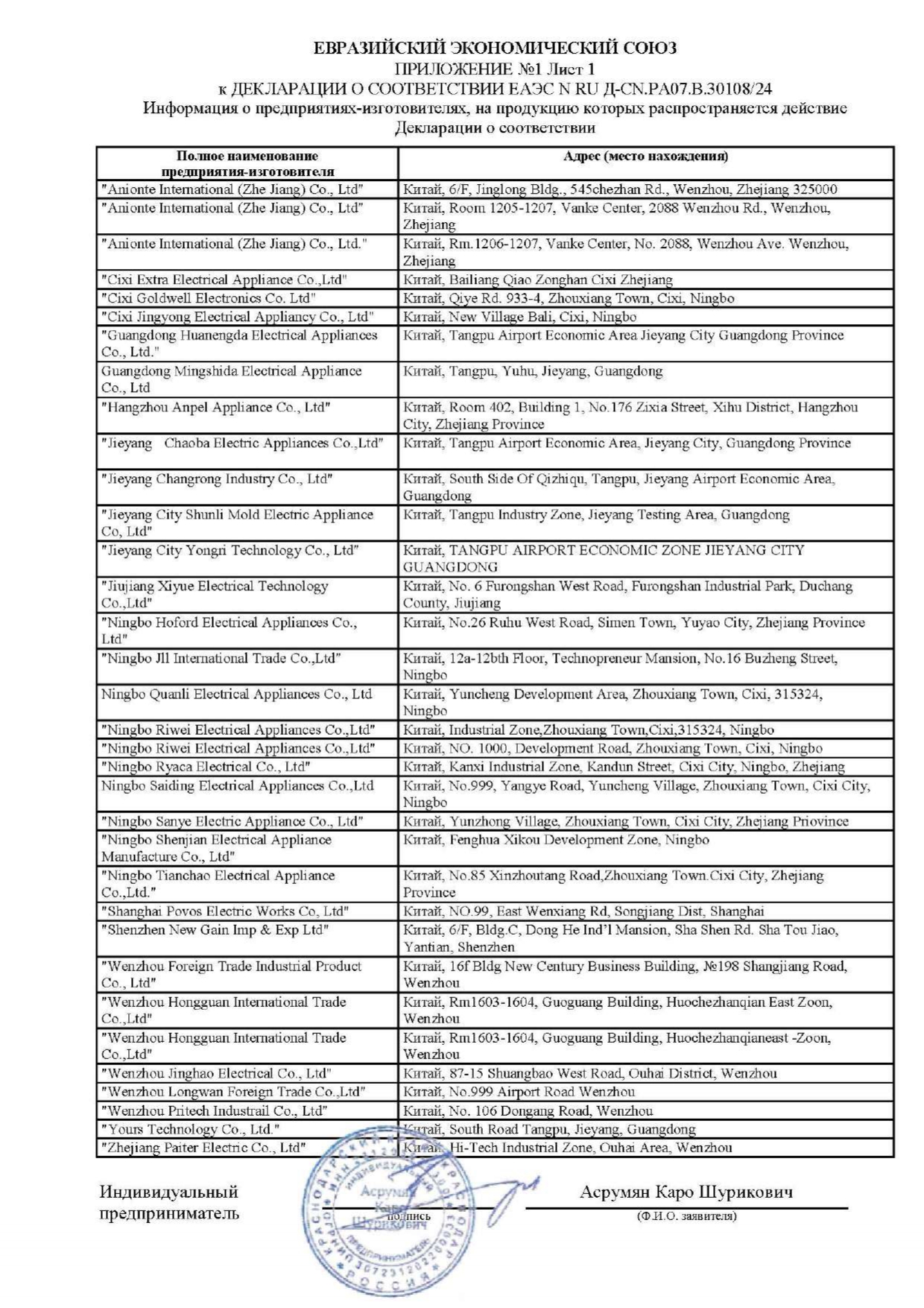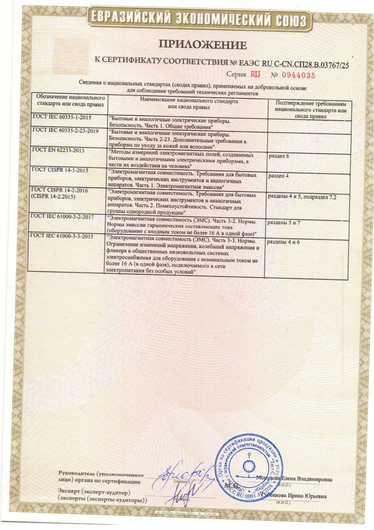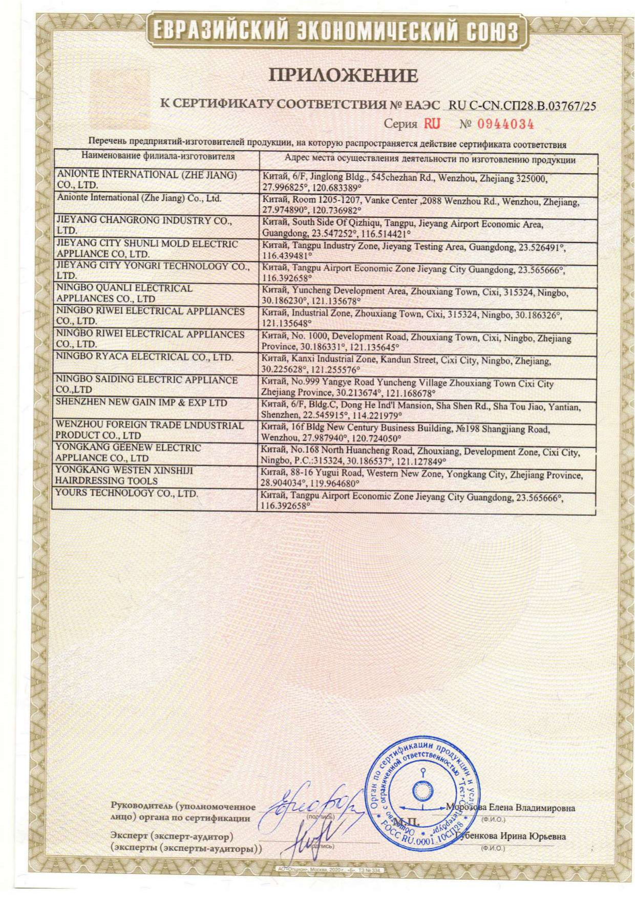 Фен CENTEK CT-2242, 2000 Вт, 2 скорости, 3 температурных режима, черный/розовый Код товара: 457620 1 916,78 ₽ Купить Производитель:CENTEK Фен CENTEK CT-2242 – это удобный и стильный прибор для ухода за вашими волосами. Обладая мощностью в 2000 Вт, фен обеспечивает быстрое и эффективное высушивание волос без повреждения их структуры. Фен CENTEK CT-2242 — это стильный и функциональный помощник для создания идеальной укладки. С мощностью 2000 Вт он быстро и бережно высушивает волосы любой длины, а два режима интенсивности подачи воздуха и три режима нагрева позволяют легко подобрать оптимальные настройки для любого типа волос. Режим фиксируемого холодного обдува закрепляет укладку, придавая ей долговечность и блеск. Корпус из термостойкого пластика с покрытием Soft Touch не только выглядит элегантно, но и приятен на ощупь, обеспечивая комфортное использование. Фен оснащен петлей для подвешивания, что делает его хранение удобным, а в комплекте идут две насадки: диффузор для создания прикорневого объема и концентратор для точной укладки отдельных прядей. Эти аксессуары помогут вам экспериментировать с образами и добиваться профессионального результата в домашних условиях. Производитель оставляет за собой право без предварительного уведомления вносить изменения в технические характеристики, комплектацию и конструкцию, не ухудшающие эксплуатационные характеристики изделия.Производство: КитайТип фена: бытовойМощность: 2000 ВтРегулировка возд. потока (кол-во скоростей): 2Регулировка температуры (кол-во режимов): 3Серия: CT-2242Количество насадок: 1 шт.Концентратор: даФункция ''холодный воздух'': даОтключение при перегреве: даПрорезиненное покрытие корпуса: даПрорезиненная ручка: даПетелька для хранения: даДлина сетевого шнура: 1.8 мМатериал корпуса: пластикЦвет корпуса: черный/розовыйВес: 650 гДизайн: CT-2242Размер упаковки: 9.8 × 28.7 × 24.3 смОбъём: 0.0078 м3Промежуточная упаковка: 10 штТранспортная упаковка: 10 штШтрих-код: 4680353006087 Файлы Приложение-1.pdf Сертификат-1.jpg Сертификат-2.jpg Сертификат-3.jpg Сертификат-4.jpg Сертификат-5.jpg Сертификат-6.jpg Сертификат-7.jpg Сертификат-8.jpg Сертификат-9.jpg