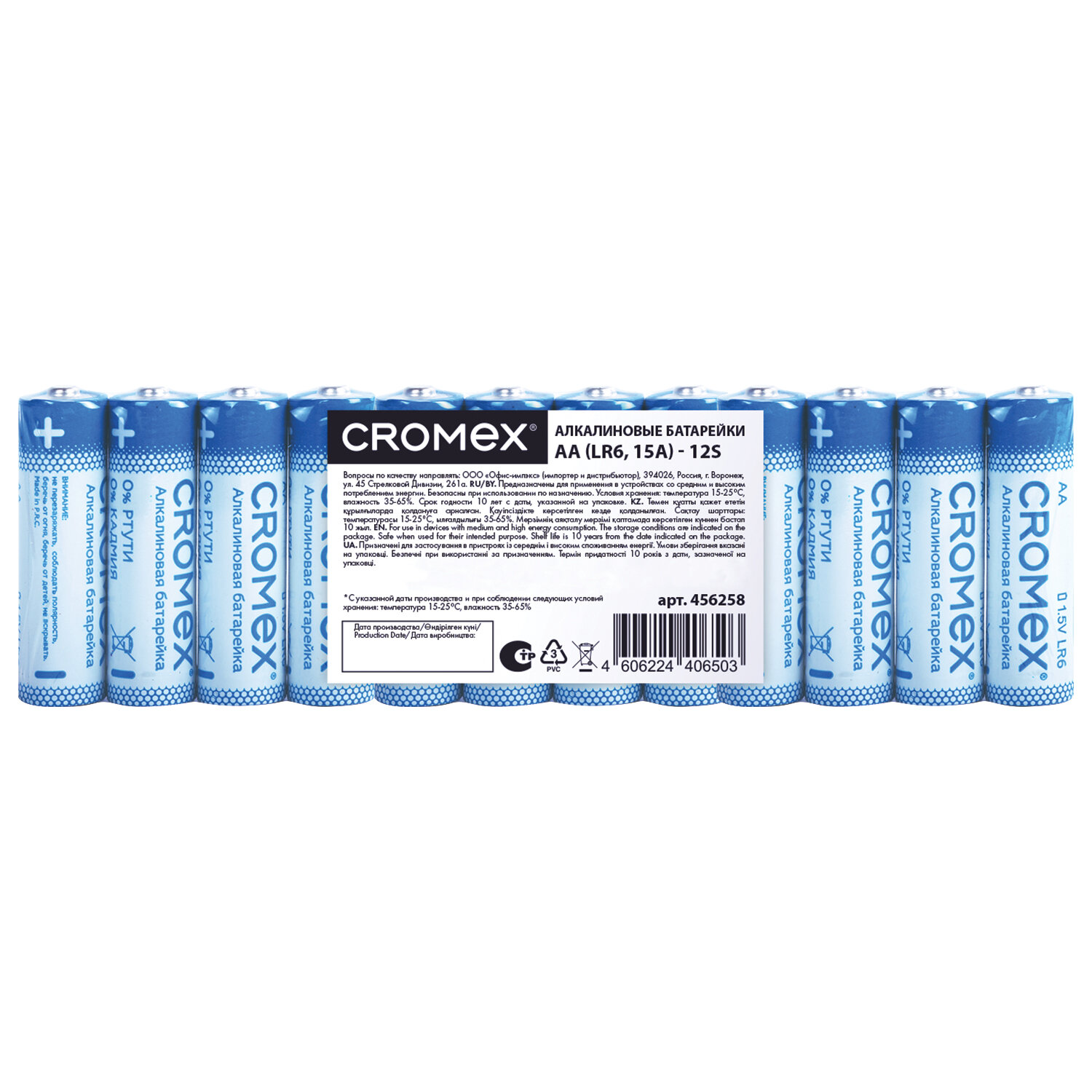 Батарейки алкалиновые "пальчиковые" КОМПЛЕКТ 12 шт., CROMEX (КРОМЕКС) Alkaline, AA (LR6,15A), спайка Код товара: 456258 208,89 ₽ Купить Производитель:CROMEX Щелочные (алкалиновые) батарейки CROMEX популярного типоразмера АA идеально подходят для приборов со средним потреблением энергии. Рекомендуется использовать в фотоаппаратах, компьютерных мышах, пультах ДУ, часах. Универсальный типоразмер AА (пальчиковые) - один из самых востребованных типов батареек. Батарейка имеет номинальное напряжение 1,5 В. Алкалиновые (щелочные) батарейки адаптируются к перепадам температуры, высоким нагрузкам и разряжаются равномерно, нет резкого падения мощности при потере заряда. В упаковке 12 штук, такого запаса хватит на продолжительное время. Производитель сохраняет за собой право на внесение изменений в технические характеристики, комплектацию и конструкцию данной модели для улучшения эксплуатационных свойств без предварительного уведомления.Производство: КитайФорма батарейки: AA (пальчиковые)Серия: CROMEX AlkalineТипоразмер: AA (пальчиковая, R6, LR6, 316, 15A, 15D)Технология: алкалиноваяНапряжение: 1.5 ВКоличество в упаковке: 12 шт.Упаковка: термоусадочная пленкаСрок годности: 120 месВес: 269 грРазмер упаковки: 1.4 × 17.1 × 5 смОбъём: 0.0002 м3Промежуточная упаковка: 5 штТранспортная упаковка: 60 штШтрих-код: 4606224406503 Сертификат-1.jpg Сертификат-2.jpg Сертификат-3.jpg