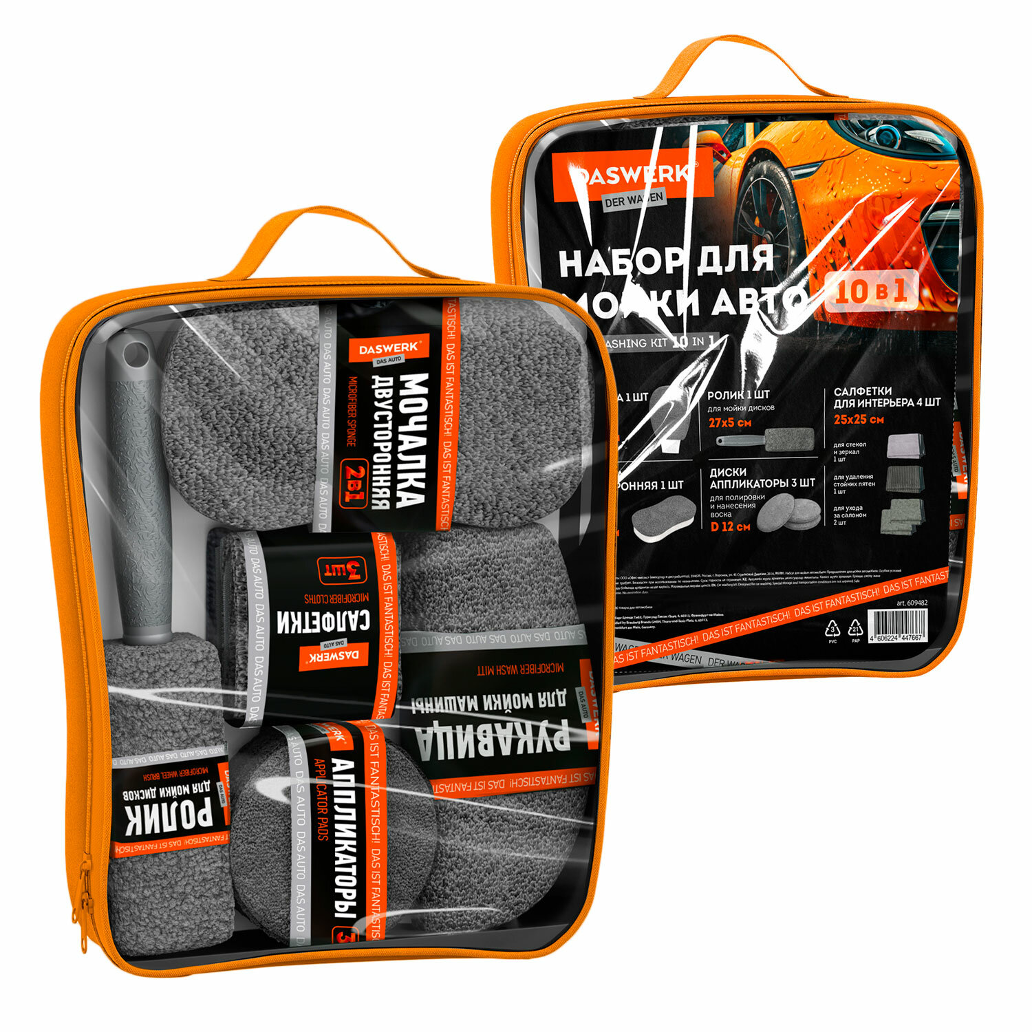 Набор для мойки авто 10 в 1, серый, СУМКА ДЛЯ ХРАНЕНИЯ В КОМПЛЕКТЕ, DASWERK (ДАСВЕРК), 609482 Код товара: 609482 866,48 ₽ Купить Производитель:DASWERK Набор для мойки авто DASWERK идеально подходит для бережной мойки автомобиля как снаружи, так и в салоне. В наборе есть все самое необходимое для ухода за автомобилем. В наборе 10 предметов: Салфетки – 4 шт., размер – 25х25 см. Салфетка для стекла плотностью 280 г/м2 – 1 шт.; салфетки из микрофибры плотностью 240 г/м2 – 2 шт.; салфетка для удаления разводов плотностью 300 г/м2 – 1 шт. Цвет – серый. Диски-аппликаторы – 3 шт. Диски-аппликаторы представляют собой губку круглой формы из микрофибры и полиуретана (плотность 230 г/м2). Предназначены для нанесения воска и полировки автомобиля. Края обработаны оверлоком для более бережного нанесения воска. Цвет – серый. Ролик для мойки дисков и колес поможет избавиться от загрязнений на дисках и в труднодоступных местах благодаря продолговатой чистящей части ролика плотностью 450 г/м2. Край обработан эластичным оверлоком. Цвет – серый. Рукавица для мойки изготовлена из микрофибры, предназначена для уборки поверхностей от пыли и загрязнений. Плотность материала – 310 г/м2. Благодаря волокнам микрофибры не оставляет разводов и обладает высокой влаговпитываемостью, которая обеспечивает превосходное качество уборки. Может применяться как для интерьера, так и для экстерьера автомобиля. Цвет – серый. Мочалка имеет двойной функционал. С одной стороны, она является губкой из микрофибры и подходит для бережного вспенивания и мойки автомобиля, также она способна впитывать большое количество жидкости, не оставляя разводов. С другой стороны, это сеточка из полиэстера для удаления стойких пятен с поверхности кузова автомобиля. Плотность микрофибры – 450 г/м2. Край обработан оверлоком. Цвет – серый. В комплект входит удобная сумка серого цвета – она идеально подходит для хранения и транспортировки всего набора.Производство: КитайВид: набор Материал обработки: универсальныйМатериал: тканыйЦвет: серыйКоличество в комплекте: 10 шт.Комплектация: диски-аппликаторы, мочалка, ролик, рукавица, салфетки, сумкаУпаковка: сумка с ручкойВес: 412 грРазмер упаковки: 6.2 × 30.8 × 27.4 смОбъём: 0.005 м3Промежуточная упаковка: 50 штТранспортная упаковка: 50 штШтрих-код: 4606224447667 Файлы Сертификат-1.jpg Сертификат-2.jpg Сертификат-3.jpg Сертификат-4.jpg Сертификат-5.jpg Сертификат-6.jpg Сертификат-7.jpg Сертификат-8.jpg Сертификат-9.jpg Сертификат-10.jpg Сертификат-11.jpg Сертификат-12.jpg Сертификат-13.jpg Сертификат-14.jpg Сертификат-15.jpg Сертификат-16.jpg Сертификат-17.jpg Сертификат-18.jpg Сертификат-19.jpg Сертификат-20.jpg Сертификат-21.jpg Сертификат-22.jpg Сертификат-23.jpg Сертификат-24.jpg Сертификат-25.jpg Сертификат-26.jpg